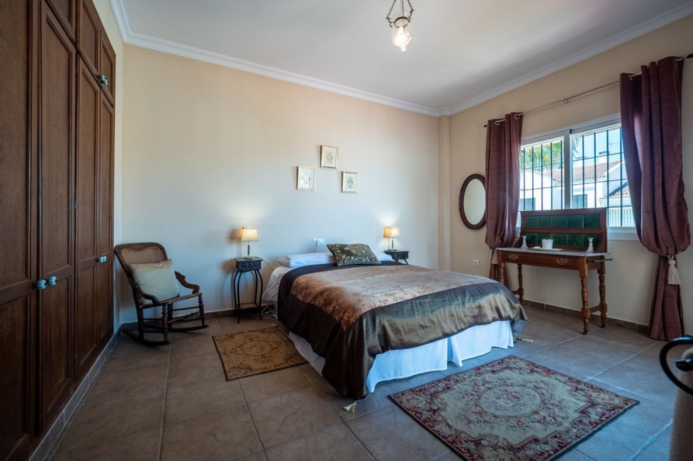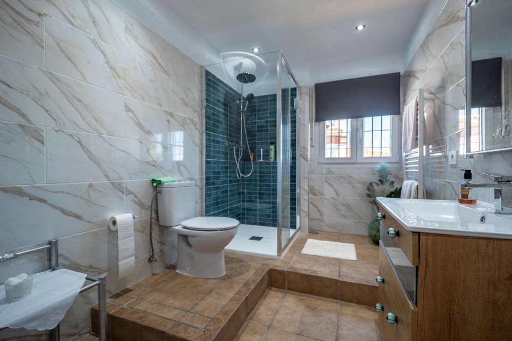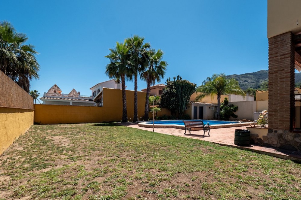 - A well-presented detached villa located on the outskirts of the vibrant town of Alhaurin El Grande, set in the sought-after urbanisation of La Paca. The property has been recently renovated to a high standard, including new bathrooms, central heating and a fully fitted kitchen. The ground floor comprises a covered porch, an entrance hall leading to a beautiful bathroom, a fifth bedroom currently used as a second lounge or office, a spacious lounge with beamed ceiling and patio doors leading onto a covered terrace, a fully fitted modern kitchen, and a separate dining room that also leads onto a private terrace. The upstairs consists of a landing, three double bedrooms with fitted wardrobes and access to an open terrace, a master bedroom with walk-in wardrobes and access to an open terrace, and two family bathrooms. Features include double glazing, central heating (fuelled by a pellet stove), fitted wardrobes, new electrics and plumbing, There is a large basement/garage (157 sqm) that is currently used for storage and servicing the central heating system, among other purposes. The outside features a driveway to the garage, a private swimming pool, a BBQ area, a storage and utility room, various terraces, and a grassed area. Unbeatable Location Enjoy the peace and privacy of a tranquil residential setting, just minutes from the local town and its amenities. Nature lovers will appreciate the nearby forest trails, while golfers are only a short drive from the prestigious Alhaurín de la Torre golf course. Malaga city, the coast, and the airport are all within easy reach—just 20 minutes by car. Don’t miss this rare opportunity to own a standout property in a prime location. Whether you’re looking for a full-time residence or an exceptional holiday home, this villa ticks all the boxes. Detached Villa, Alhaurín el Grande, Costa del Sol. 5 Bedrooms, 3 Bathrooms, Built 514 m², Terrace 35.77 m² Setting : Close To Golf, Close To Forest, Urbanisation. Orientation : South East. Condition : Excellent, Recently Renovated. Pool : Private. Climate Control : Air Conditioning, Hot A/C, Cold A/C, Central Heating. Views : Mountain, Garden, Pool. Features : Covered Terrace, Fitted Wardrobes, Private Terrace, Storage Room, Ensuite Bathroom, Barbeque, Double Glazing, Basement. Furniture : Part Furnished. Kitchen : Fully Fitted. Garden : Private, Easy Maintenance. Security : Entry Phone, Alarm System. Parking : Underground, Garage, More Than One, Private. Utilities : Electricity, Drinkable Water, Solar water heating. Category : Resale.