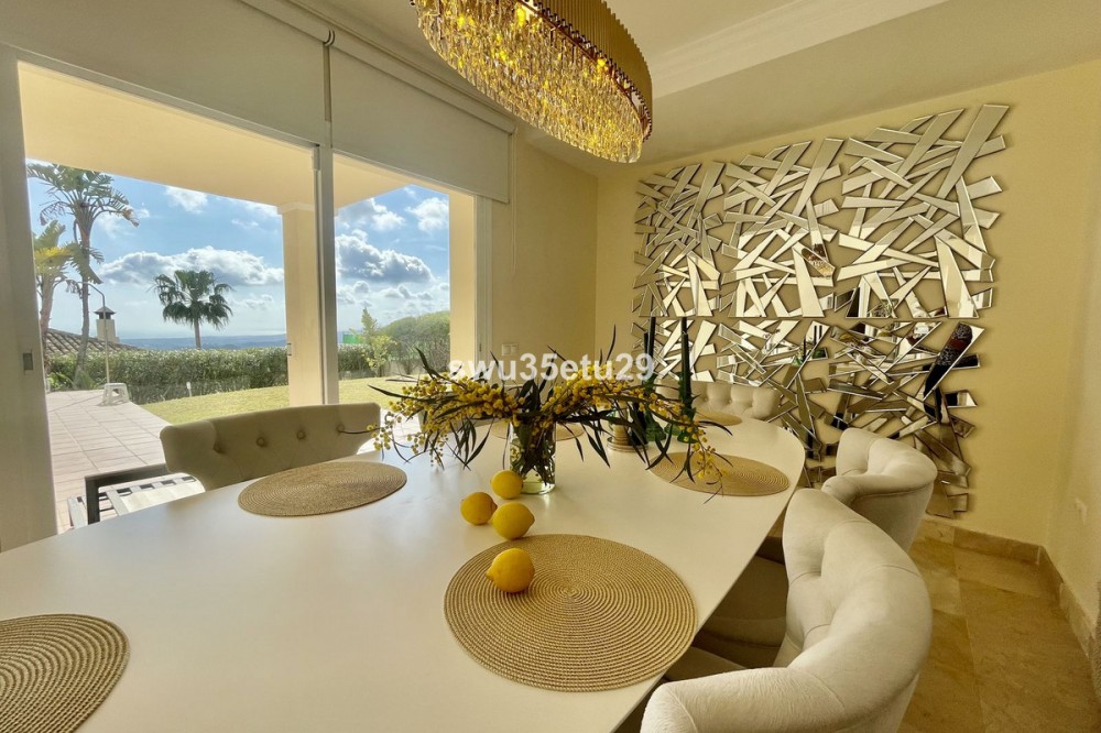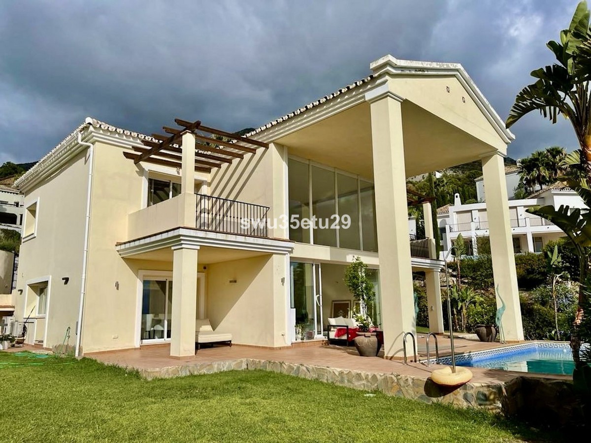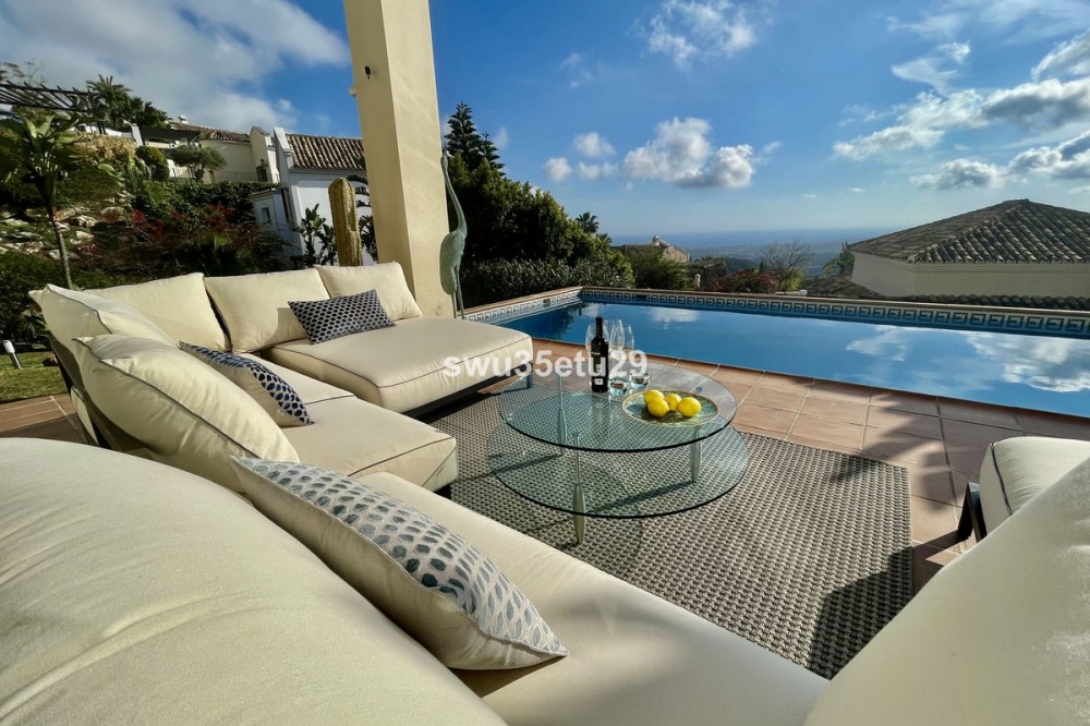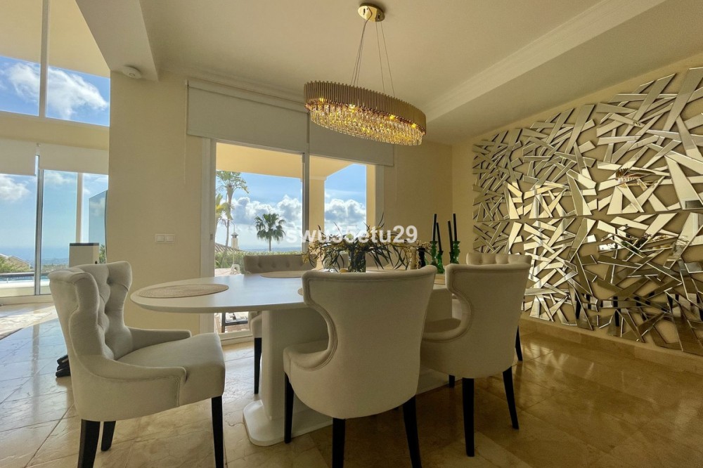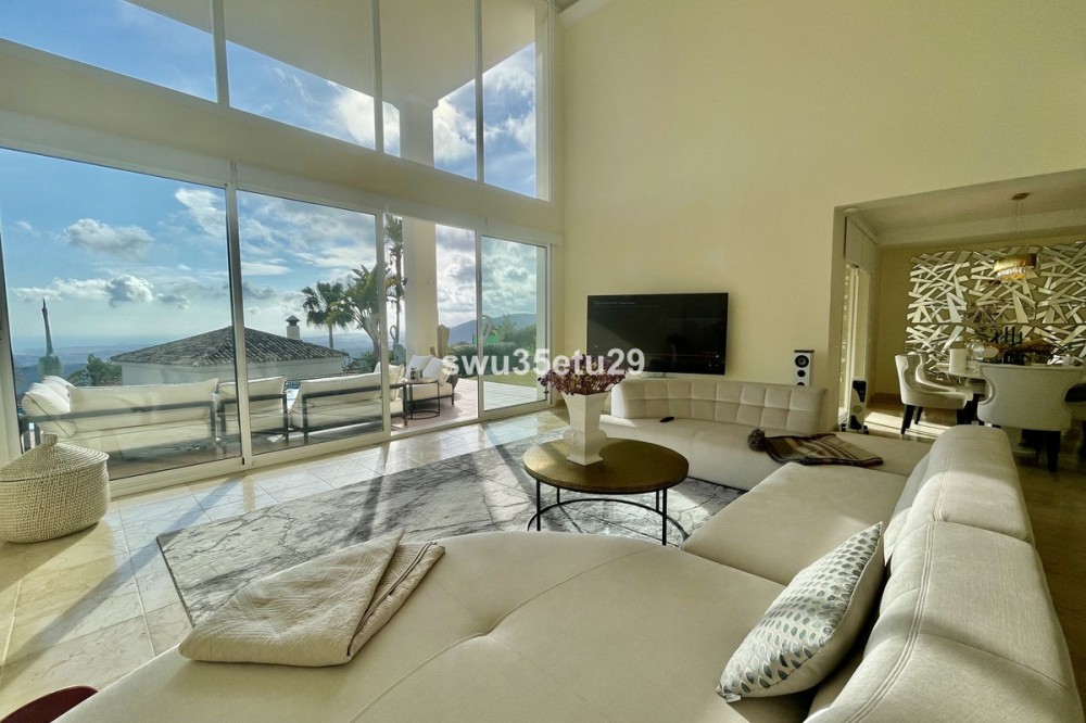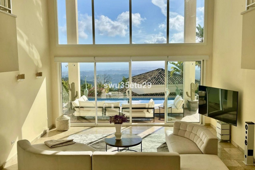 - Spectacular Detached Villa in an Exclusive Area of Sierra Blanca Country Club, with Stunning Open Views of Gibraltar and the Mediterranean Sea This property boasts 349 m² of built area and stands out for its ceilings reaching up to 6 meters high in the main living room, providing a sense of spaciousness, natural light, and luxury. Layout: • 3 spacious bedrooms with built-in wardrobes • 3 full en-suite bathrooms with modern finishes and natural stone • 1 guest toilet • Living-dining room with large windows and direct access to the garden • Fully equipped open-plan kitchen with central island and dining area The property is sold fully furnished, featuring a high-quality German ALMILMÖ kitchen and a new fireplace, perfect for creating a cozy atmosphere. Exterior: • Private swimming pool • Garden • Chill-out area and barbecue space • Large parking area with capacity for up to 6 vehicles The villa holds a valid tourist license, allowing for holiday rentals and offering an excellent investment opportunity. Located just a few minutes’ drive from beaches, golf courses, and all amenities, this villa is ideal as a permanent residence, holiday home, or high-return investment on the Costa del Sol.