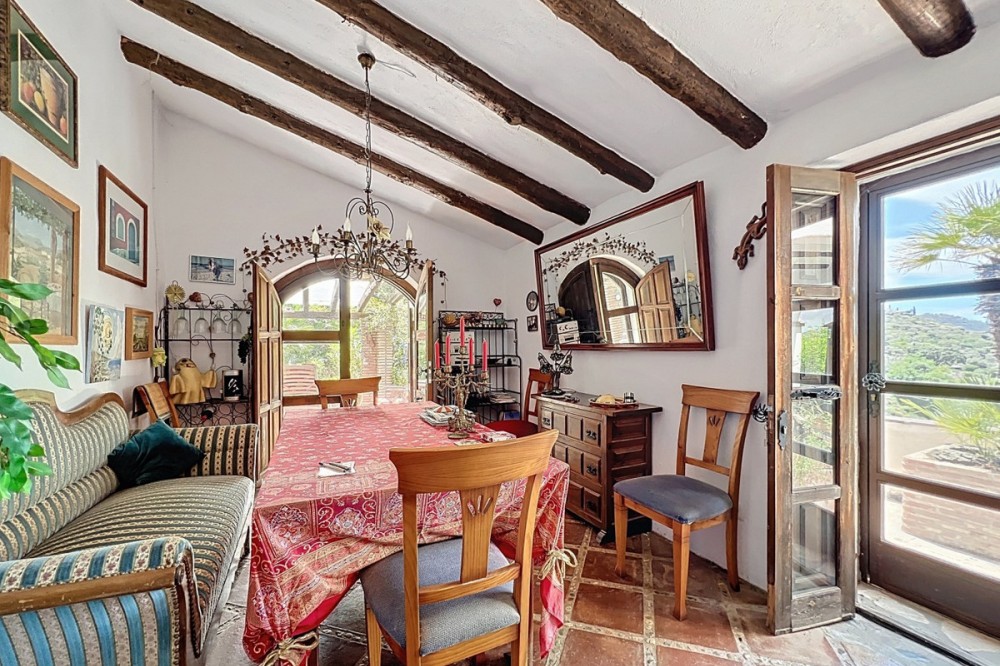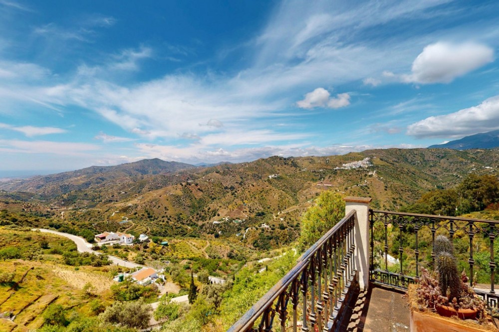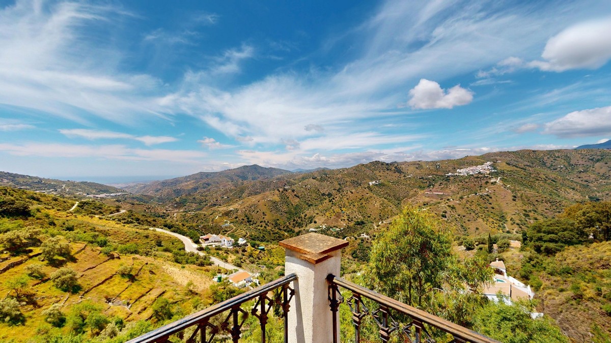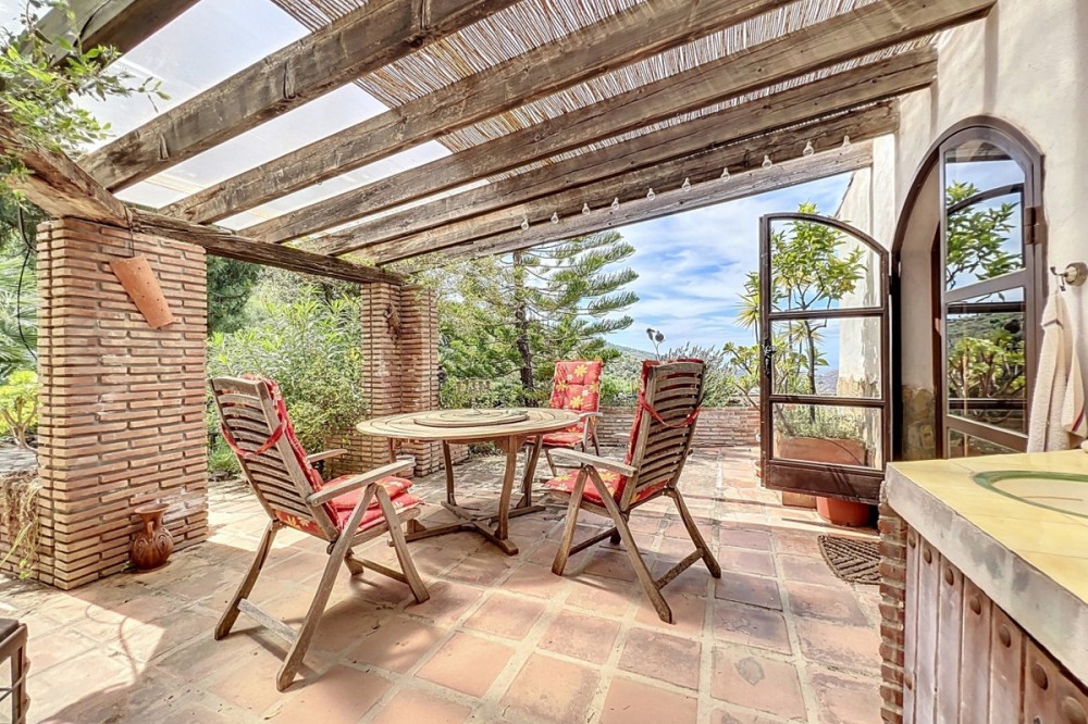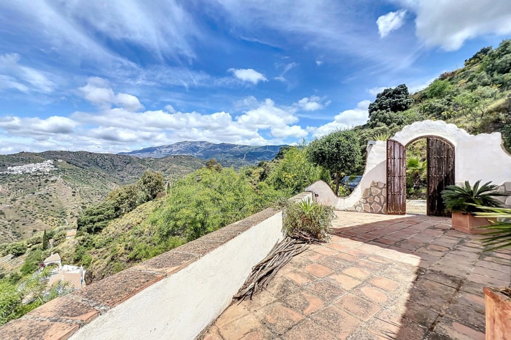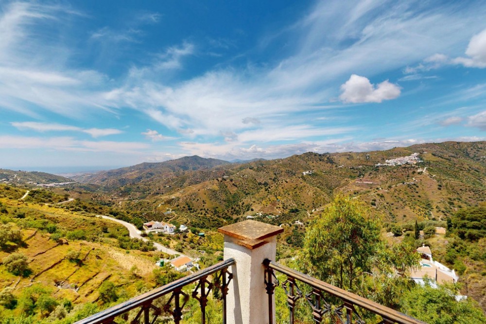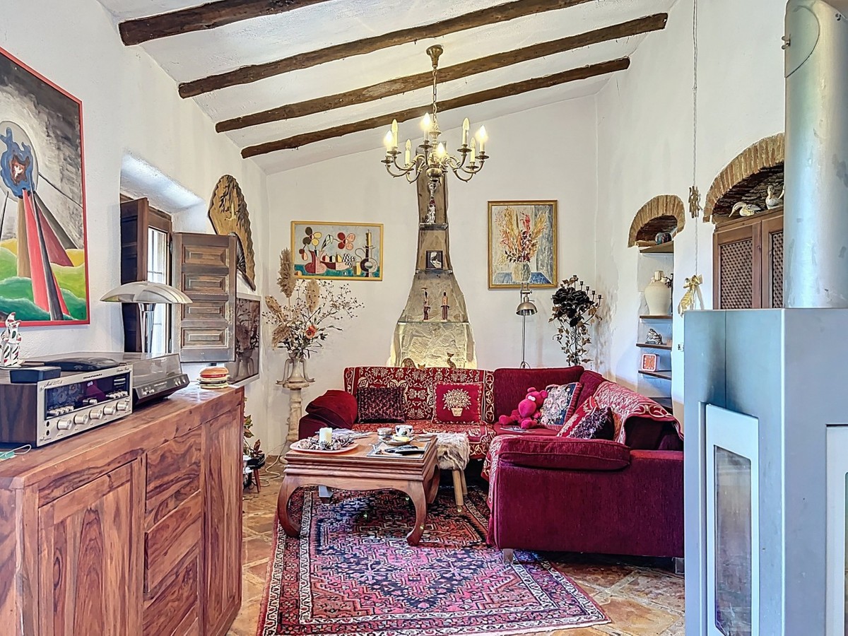 - This charming Spanish country house in Sayalonga/Árchez, Málaga, blends traditional character with modern comfort all set against a backdrop of breathtaking views. The property offers a constructed area of 199 m2 and 148 m2 of living space spread over two floors, with three bedrooms and two bathrooms ideal for families or guests. Inside, rustic features dominate: exposed wooden beams under whitewashed ceilings add warmth and authenticity to every room. Terracotta tiles emphasize the Mediterranean style and create a harmonious overall aesthetic. A major highlight is the well-thought-out heating solution: a modern pellet stove in the hallway efficiently warms the entire house. Additionally, there's a cosy wood-burning stove in the living room and an infrared panel heater for extra comfort on cooler evenings. The bathrooms also feature electric infrared heaters to ensure a pleasant, warm atmosphere. Both the living room and bedrooms include built-in wardrobes that offer practical storage while blending seamlessly with the style. Plush furniture in warm red tones, decorative mirrors, colourful artworks, and personal collections give the space a relaxed, bohemian vibe. A striking archway connects the interior to one of the terraces and opens up to stunning views of the countryside. The kitchen is both charming and functional, with cream cabinets, granite countertops, modern appliances, and a patterned tile backsplash. A decorative extractor hood completes the picture. The two bathrooms are individually designed: one features a bathtub and artistic rustic tiles, while the other has a modern look with clean lines and contemporary fittings. Both complement the character of the house. The bedrooms reflect the Andalusian style, with wrought iron beds, wooden furniture, warm lighting, and the aforementioned built-in wardrobes that add comfort and order. Outside, several terraces offer spectacular views of the sea, rolling hills, and white villages. One of the terraces is covered and offers expansion potential ideal for one or two additional rooms. The outdoor area also includes a private pool, various seating areas, an outdoor kitchen, and a well-kept garden perfect for sociable evenings or quiet moments in nature. This villa combines timeless architecture with personal touches, thoughtful amenities, and spectacular views a true taste of Andalusian living. We are pleased to be able to present this dream property to you soon, either personally or via virtual viewing. Because this world is unique - just like our Axarquía. In Andalusia. On the Costa del Sol. Here, on the sunny side of life...