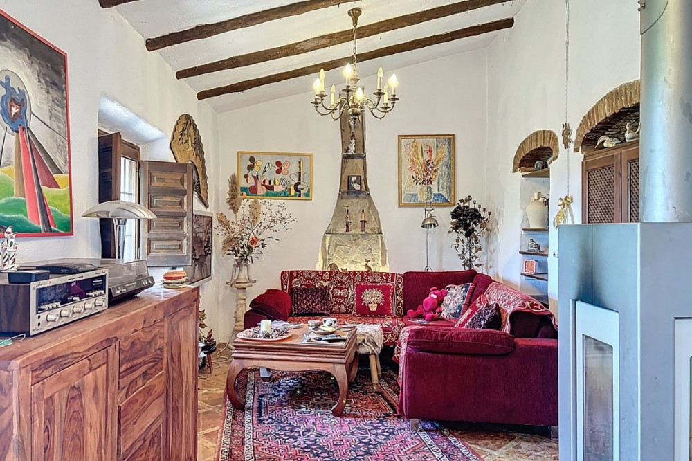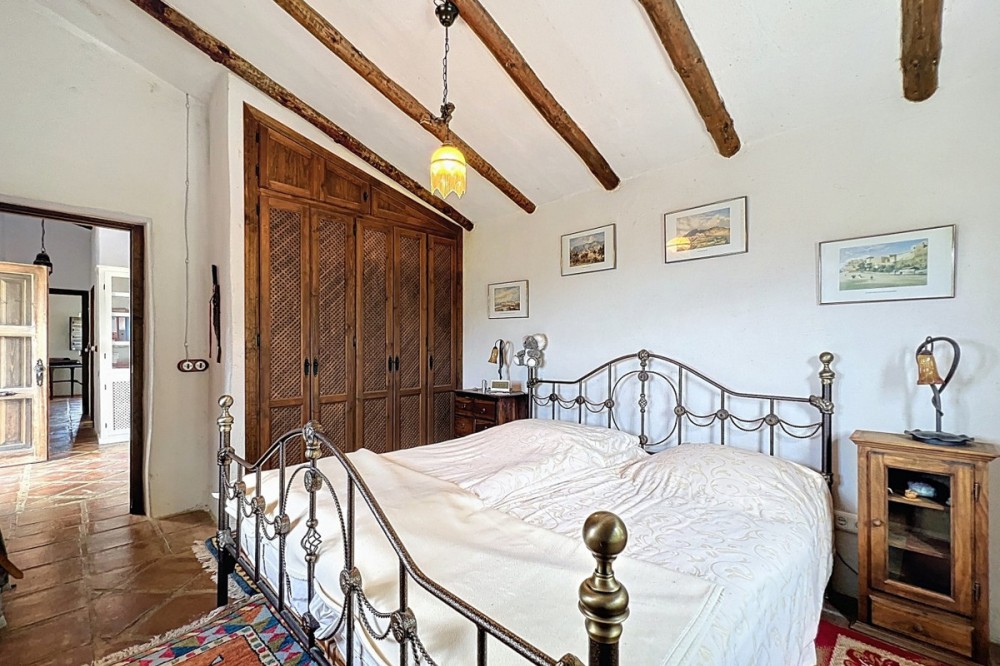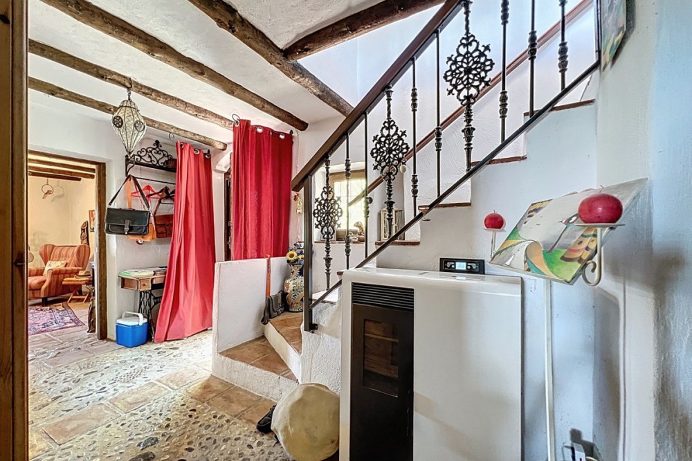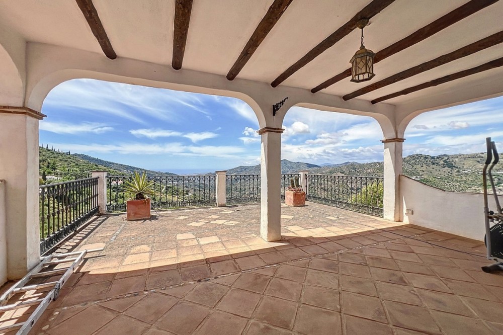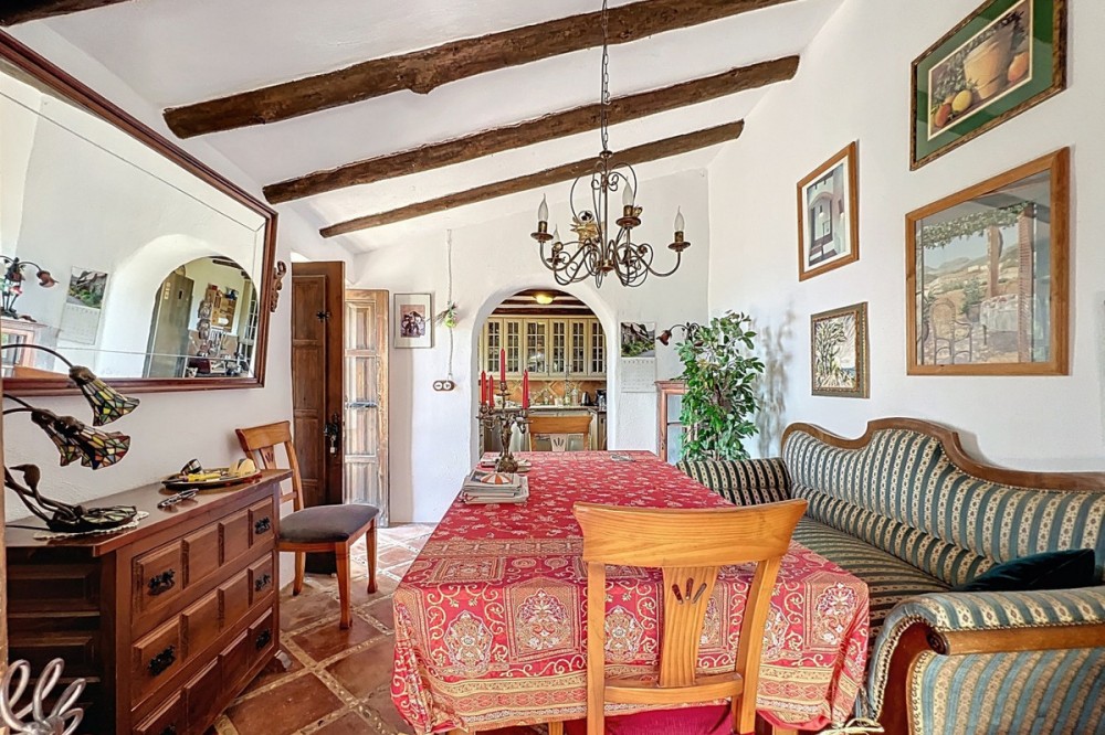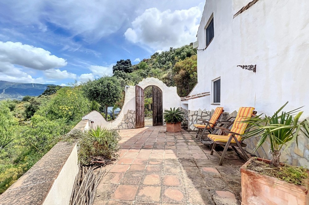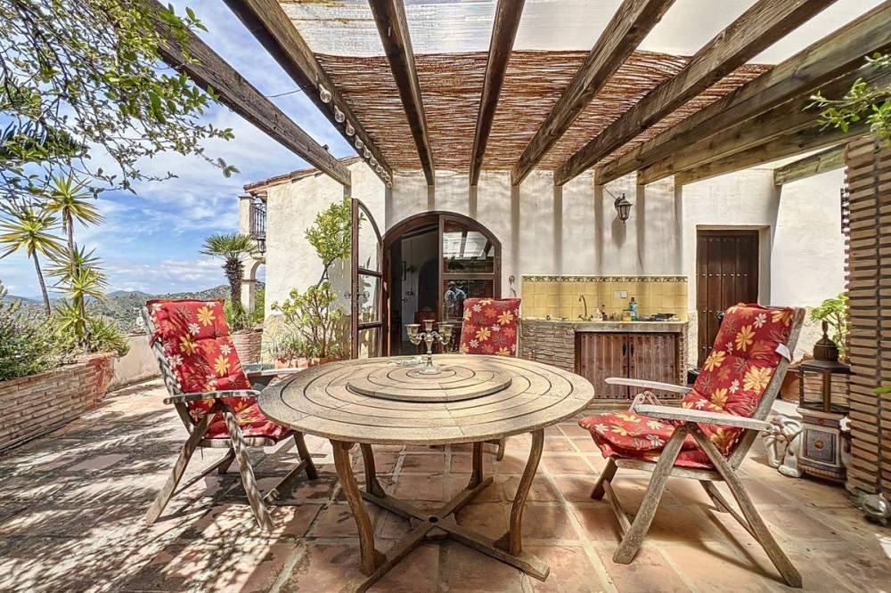 - This charming Spanish country house in Sayalonga/Árchez, Málaga, blends traditional character with modern comfort all set against a backdrop of breathtaking views. The property offers a constructed area of 199 m2 and 148 m2 of living space spread over two floors, with three bedrooms and two bathrooms ideal for families or guests. Inside, rustic features dominate: exposed wooden beams under whitewashed ceilings add warmth and authenticity to every room. Terracotta tiles emphasize the Mediterranean style and create a harmonious overall aesthetic. A major highlight is the well-thought-out heating solution: a modern pellet stove in the hallway efficiently warms the entire house. Additionally, there's a cosy wood-burning stove in the living room and an infrared panel heater for extra comfort on cooler evenings. The bathrooms also feature electric infrared heaters to ensure a pleasant, warm atmosphere. Both the living room and bedrooms include built-in wardrobes that offer practical storage while blending seamlessly with the style. Plush furniture in warm red tones, decorative mirrors, colourful artworks, and personal collections give the space a relaxed, bohemian vibe. A striking archway connects the interior to one of the terraces and opens up to stunning views of the countryside. The kitchen is both charming and functional, with cream cabinets, granite countertops, modern appliances, and a patterned tile backsplash. A decorative extractor hood completes the picture. The two bathrooms are individually designed: one features a bathtub and artistic rustic tiles, while the other has a modern look with clean lines and contemporary fittings. Both complement the character of the house. The bedrooms reflect the Andalusian style, with wrought iron beds, wooden furniture, warm lighting, and the aforementioned built-in wardrobes that add comfort and order. Outside, several terraces offer spectacular views of the sea, rolling hills, and white villages. One of the terraces is covered and offers expansion potential ideal for one or two additional rooms. The outdoor area also includes a private pool, various seating areas, an outdoor kitchen, and a well-kept garden perfect for sociable evenings or quiet moments in nature. This villa combines timeless architecture with personal touches, thoughtful amenities, and spectacular views a true taste of Andalusian living. We are pleased to be able to present this dream property to you soon, either personally or via virtual viewing. Because this world is unique - just like our Axarquía. In Andalusia. On the Costa del Sol. Here, on the sunny side of life...