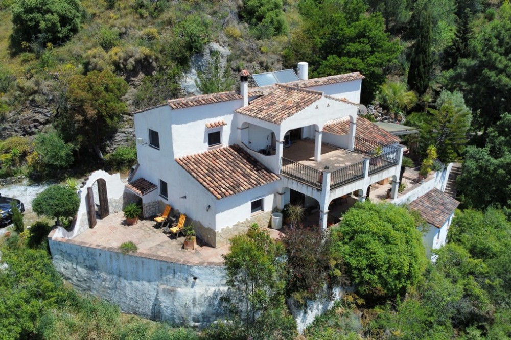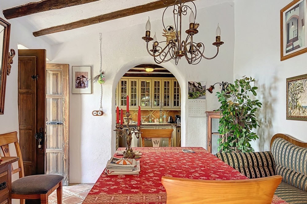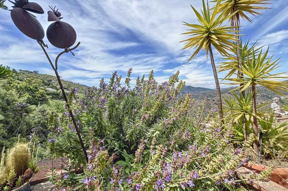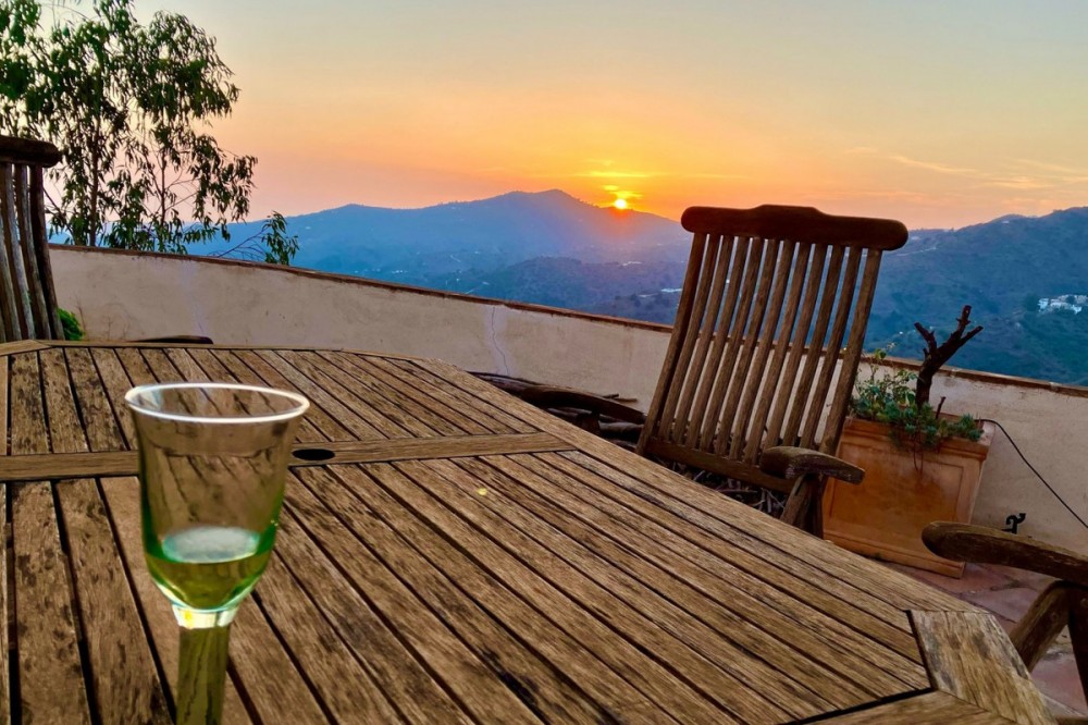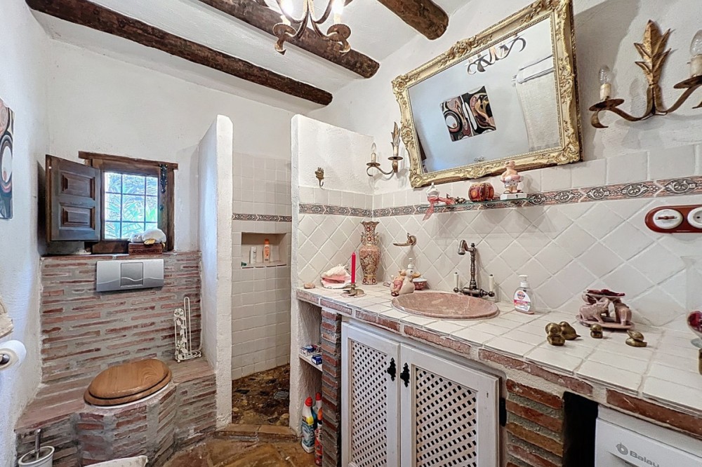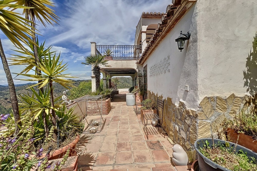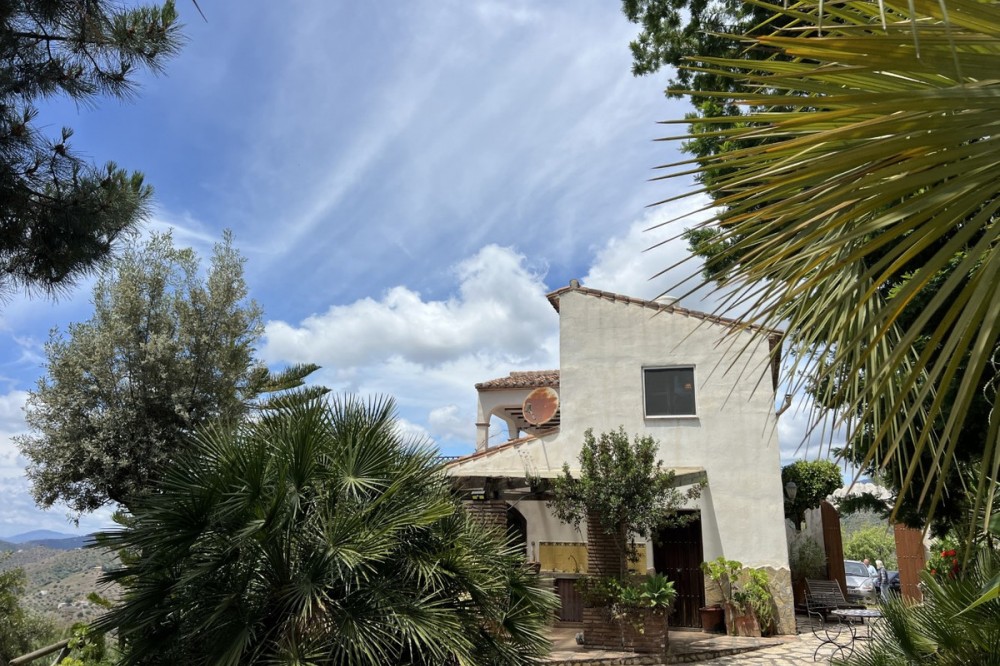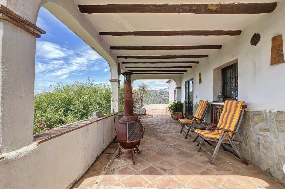 - This charming Spanish country house in Sayalonga/Árchez, Málaga, blends traditional character with modern comfort all set against a backdrop of breathtaking views. The property offers a constructed area of 199 m2 and 148 m2 of living space spread over two floors, with three bedrooms and two bathrooms ideal for families or guests. Inside, rustic features dominate: exposed wooden beams under whitewashed ceilings add warmth and authenticity to every room. Terracotta tiles emphasize the Mediterranean style and create a harmonious overall aesthetic. A major highlight is the well-thought-out heating solution: a modern pellet stove in the hallway efficiently warms the entire house. Additionally, there's a cosy wood-burning stove in the living room and an infrared panel heater for extra comfort on cooler evenings. The bathrooms also feature electric infrared heaters to ensure a pleasant, warm atmosphere. Both the living room and bedrooms include built-in wardrobes that offer practical storage while blending seamlessly with the style. Plush furniture in warm red tones, decorative mirrors, colourful artworks, and personal collections give the space a relaxed, bohemian vibe. A striking archway connects the interior to one of the terraces and opens up to stunning views of the countryside. The kitchen is both charming and functional, with cream cabinets, granite countertops, modern appliances, and a patterned tile backsplash. A decorative extractor hood completes the picture. The two bathrooms are individually designed: one features a bathtub and artistic rustic tiles, while the other has a modern look with clean lines and contemporary fittings. Both complement the character of the house. The bedrooms reflect the Andalusian style, with wrought iron beds, wooden furniture, warm lighting, and the aforementioned built-in wardrobes that add comfort and order. Outside, several terraces offer spectacular views of the sea, rolling hills, and white villages. One of the terraces is covered and offers expansion potential ideal for one or two additional rooms. The outdoor area also includes a private pool, various seating areas, an outdoor kitchen, and a well-kept garden perfect for sociable evenings or quiet moments in nature. This villa combines timeless architecture with personal touches, thoughtful amenities, and spectacular views a true taste of Andalusian living. We are pleased to be able to present this dream property to you soon, either personally or via virtual viewing. Because this world is unique - just like our Axarquía. In Andalusia. On the Costa del Sol. Here, on the sunny side of life...