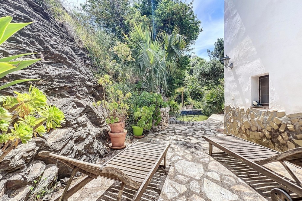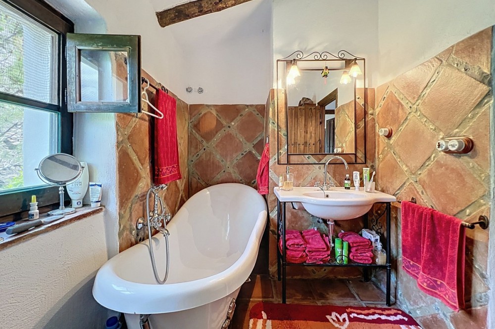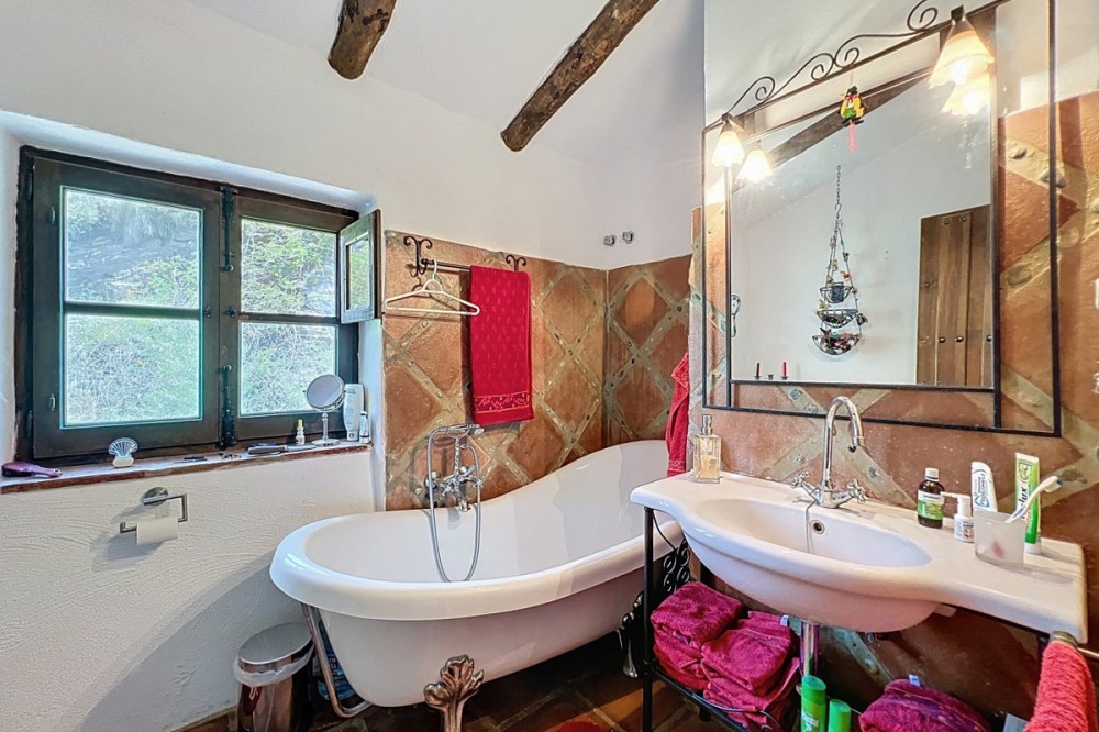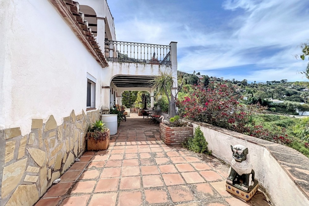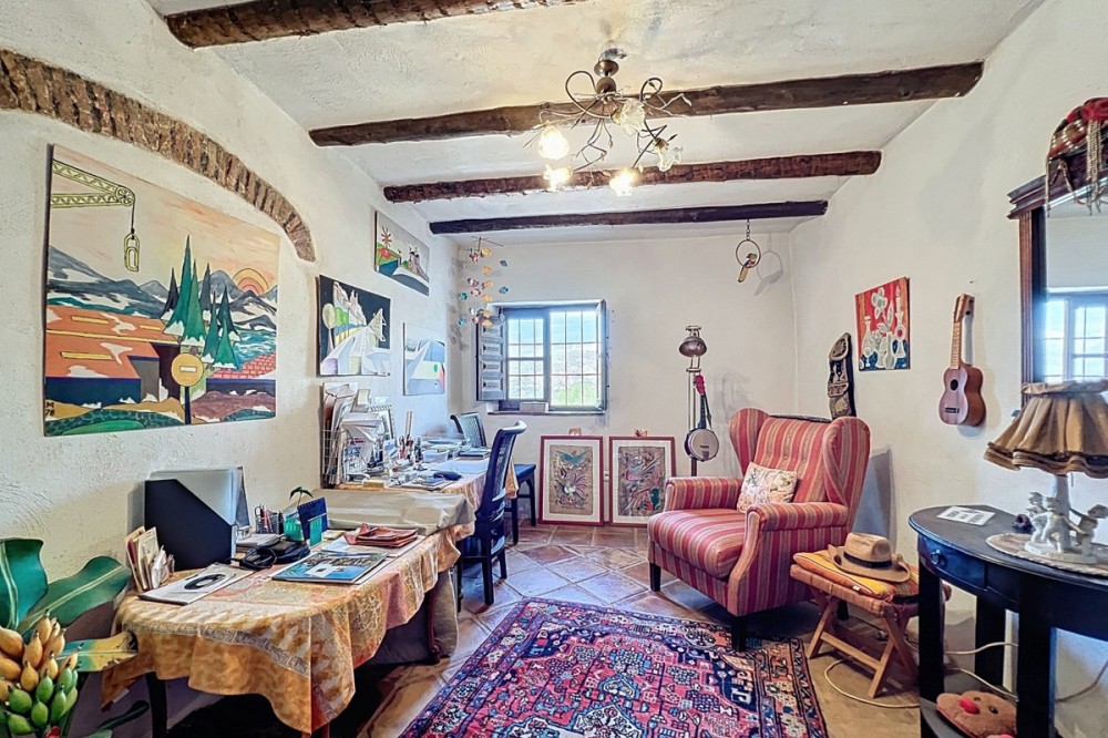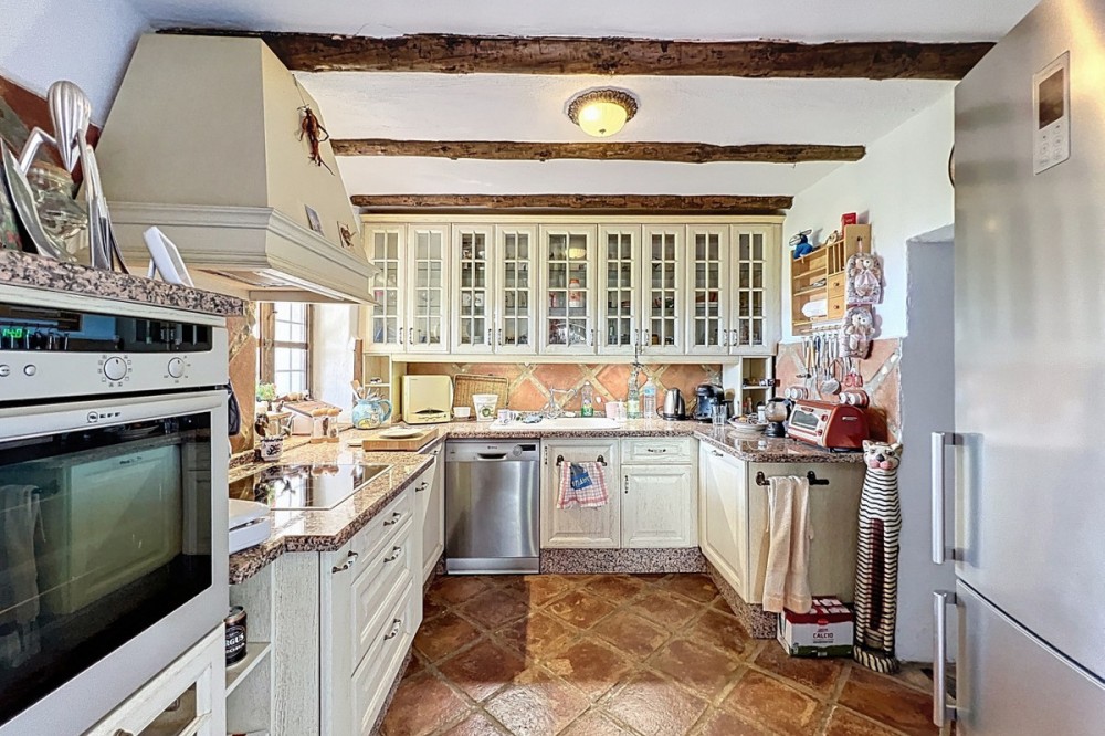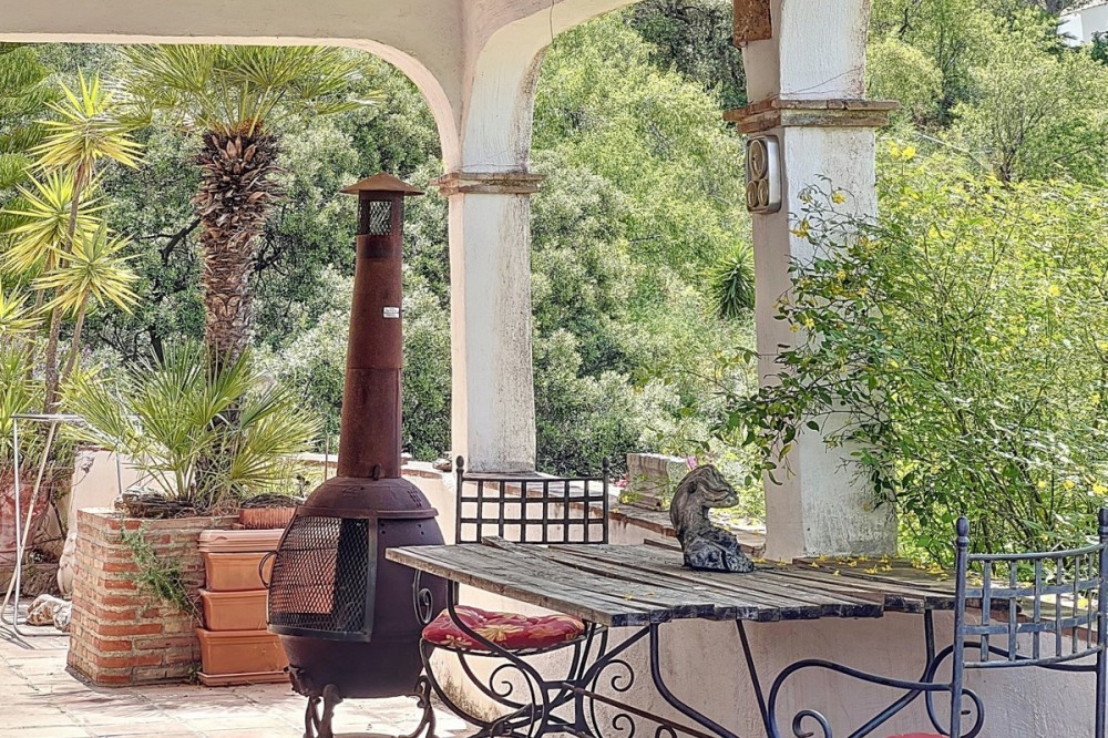 - This charming Spanish country house in Sayalonga/Árchez, Málaga, blends traditional character with modern comfort all set against a backdrop of breathtaking views. The property offers a constructed area of 199 m2 and 148 m2 of living space spread over two floors, with three bedrooms and two bathrooms ideal for families or guests. Inside, rustic features dominate: exposed wooden beams under whitewashed ceilings add warmth and authenticity to every room. Terracotta tiles emphasize the Mediterranean style and create a harmonious overall aesthetic. A major highlight is the well-thought-out heating solution: a modern pellet stove in the hallway efficiently warms the entire house. Additionally, there's a cosy wood-burning stove in the living room and an infrared panel heater for extra comfort on cooler evenings. The bathrooms also feature electric infrared heaters to ensure a pleasant, warm atmosphere. Both the living room and bedrooms include built-in wardrobes that offer practical storage while blending seamlessly with the style. Plush furniture in warm red tones, decorative mirrors, colourful artworks, and personal collections give the space a relaxed, bohemian vibe. A striking archway connects the interior to one of the terraces and opens up to stunning views of the countryside. The kitchen is both charming and functional, with cream cabinets, granite countertops, modern appliances, and a patterned tile backsplash. A decorative extractor hood completes the picture. The two bathrooms are individually designed: one features a bathtub and artistic rustic tiles, while the other has a modern look with clean lines and contemporary fittings. Both complement the character of the house. The bedrooms reflect the Andalusian style, with wrought iron beds, wooden furniture, warm lighting, and the aforementioned built-in wardrobes that add comfort and order. Outside, several terraces offer spectacular views of the sea, rolling hills, and white villages. One of the terraces is covered and offers expansion potential ideal for one or two additional rooms. The outdoor area also includes a private pool, various seating areas, an outdoor kitchen, and a well-kept garden perfect for sociable evenings or quiet moments in nature. This villa combines timeless architecture with personal touches, thoughtful amenities, and spectacular views a true taste of Andalusian living. We are pleased to be able to present this dream property to you soon, either personally or via virtual viewing. Because this world is unique - just like our Axarquía. In Andalusia. On the Costa del Sol. Here, on the sunny side of life...