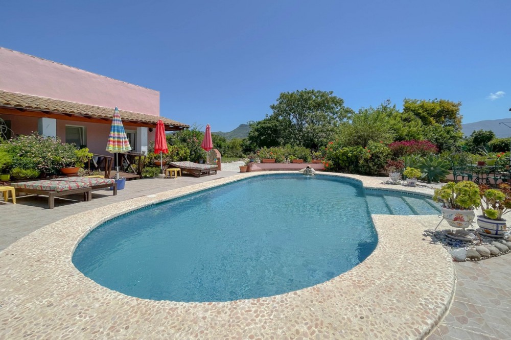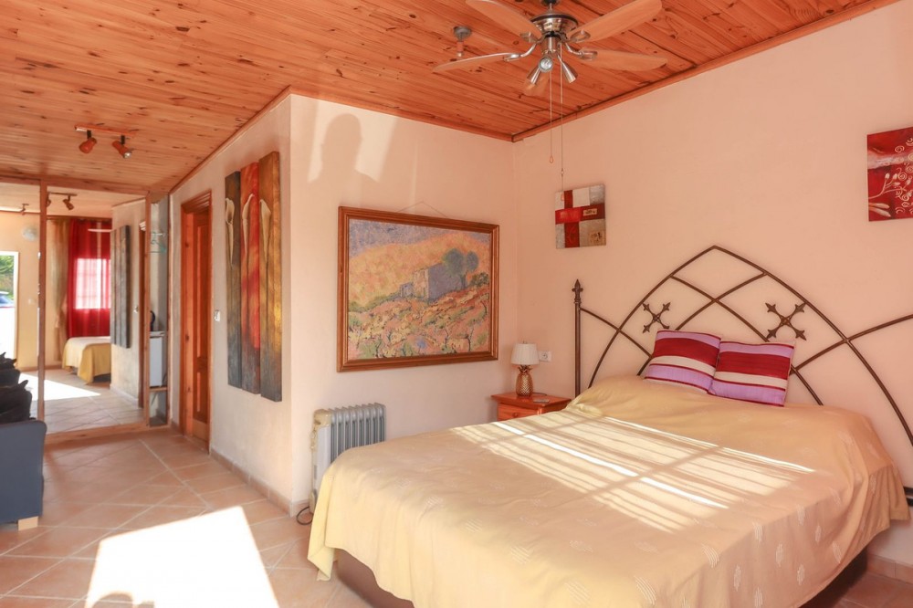 - Spacious Villa with Separate Guest Accommodations in a Private Setting . Private, secluded location . Generously sized main villa . Flat, usable plot . Four self-contained guest accommodations . Ideal for equestrian use . Land includes numerous mature fruit trees . High-quality construction . Convenient central location Currently operating as a successful naturist resort with a loyal client base, this detached villa offers a unique opportunity to continue a rural tourism business or enjoy as a spacious and versatile family home, perfect for entertaining guests or hosting extended family. Main Villa: The main residence is impressively spacious, featuring a large living room with patio doors that open onto a shaded terrace—perfect for outdoor dining and relaxation. This area flows directly to the pool and sun terraces. The fully equipped kitchen offers ample storage and is ideally suited for catering to guests. The master bedroom also opens onto the terrace and includes a well-sized en-suite bathroom with a corner bathtub. Guest Accommodations: There are four independent guest rooms, each with its own en-suite bathroom, private terrace, air conditioning, and a strong sense of privacy. The layout is thoughtfully designed to promote relaxation, with tranquil garden spaces and poolside lounging areas that blend seamlessly with the serene Andalusian countryside. Entertainment & Outdoor Features: Dedicated chill-out zone. Bar and outdoor kitchen. Jacuzzi and outdoor shower room. Landscaped garden with various seating areas Land & Surroundings: The property sits on a flat plot, ideal for gardening, recreation, or keeping horses. It offers panoramic views of the surrounding countryside and distant mountains, providing a true sense of escape and tranquility. Access: Easily accessible via mostly concrete roads, with a short stretch of track leading to the property.