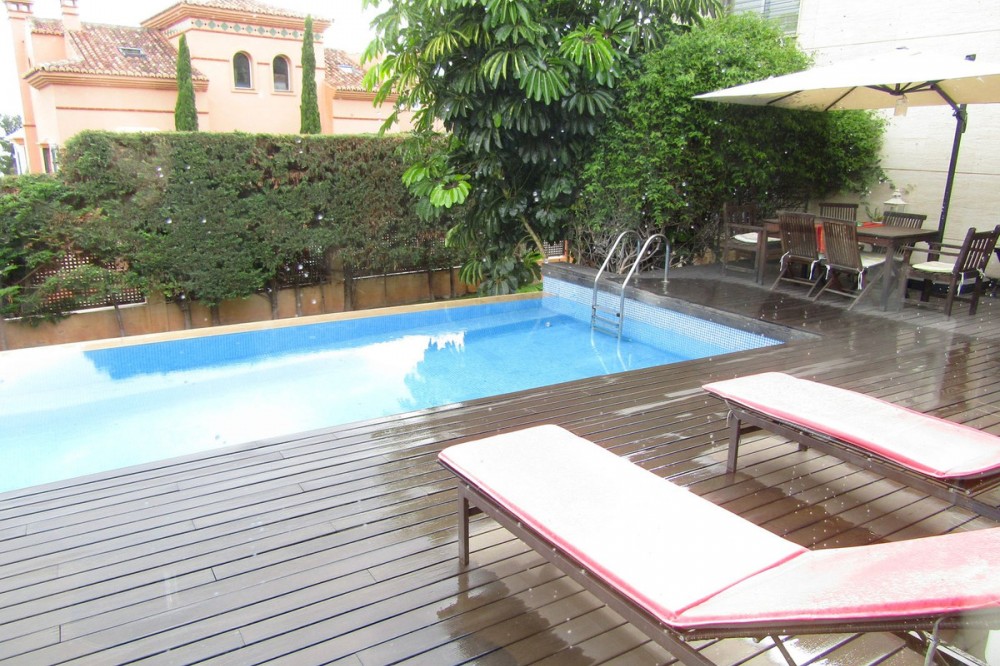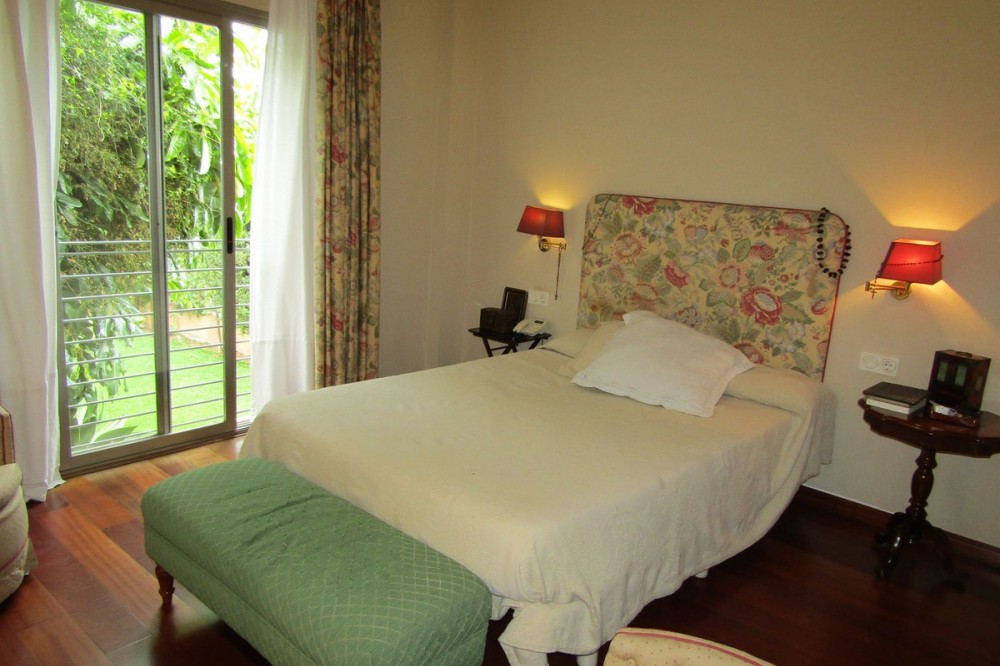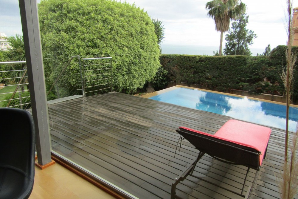 - Detached Villa, Málaga Este, Costa del Sol. 6 Bedrooms, 5 Bathrooms, Built 514 m², Garden/Plot 842 m². Setting : Close To Schools, Urbanisation. Orientation : North, East, South, West. Condition : Excellent. Pool : Private. Climate Control : Air Conditioning, Hot A/C, Fireplace. Views : Sea, Garden. Features : Fitted Wardrobes, Near Transport, Games Room, Storage Room, Utility Room, Ensuite Bathroom, Double Glazing, Courtesy Bus, Basement. Kitchen : Fully Fitted. Garden : Private. Security : Alarm System. Parking : Garage.