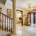 - A spacious and very elegant classic-style villa in impeccable condition and built with high-quality materials, located in the well-known "La Paca" residential area. It is distributed as follows: The basement is accessed through the vehicle entrance with two automatic gates and consists of a large garage area with capacity for four cars, plus ample storage space, as well as a spacious laundry room and a storage room. The ground floor is accessed via the interior staircase through the basement or through the main entrance, which consists of an elegant entrance porch, an entrance hall, and a hallway leading to: 1st, the living-dining room with a fireplace, and from this living room to the porch with a dining table and views of the garden and pool; 2nd, the TV room; 3rd, a full bathroom; 4th, the beautiful, spacious, fully equipped independent kitchen with a dining table in the centre, and from here also access to the porch. 5th, the first floor is reached via a marble staircase. The first floor consists of 5 bedrooms and 2 bathrooms. The master bedroom is very spacious and has a large dressing room, a marble bathroom with a beautiful bathtub, and a balcony. The other 4 bedrooms are also very spacious, 3 of which have built-in wardrobes. The fourth is currently used as an office. The upper floor consists of a large bedroom with 2 balconies offering panoramic views of the mountains and the Guadalhorce Valley. Exterior: Beautiful, easy-maintenance garden with an automatic irrigation system, fruit trees, a saltwater pool surrounded by sunny terraces offering plenty of privacy and tranquility. A barbecue house of approximately 30 m2 with a fully equipped kitchen, a toilet, and a storage room for gardening tools. Property in perfect condition, ready to move into, with gas underfloor heating throughout, marble floors, double-glazed windows with electric shutters, a background music system, an alarm system, and air conditioning. Property tax (IBI) 1.176€ per year. Plot size: 751m². Total constructed area: 391 m². Year of construction: 2004. Distances: Bus stop: 170 meters. Alhaurín el Grande: 1.9 km. Lauro Golf Club house: 3 km. Málaga Airport: 19 km. Torremolinos Beach: 23 km.
