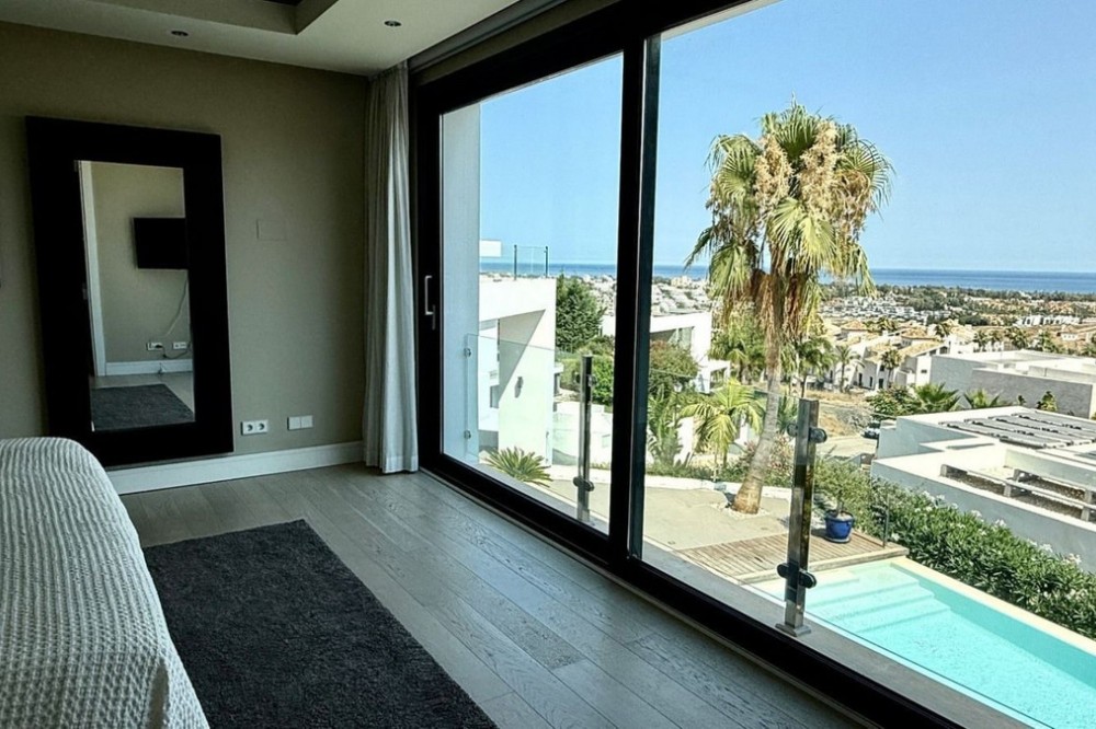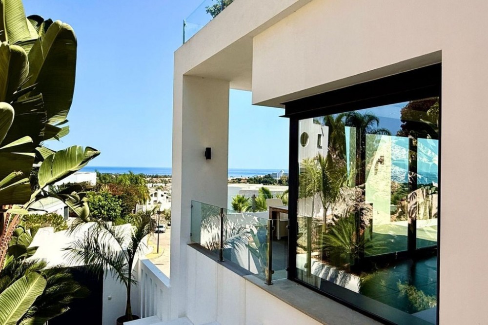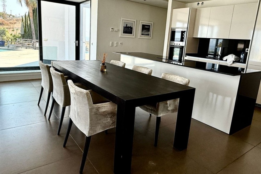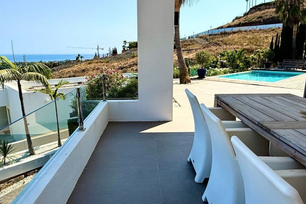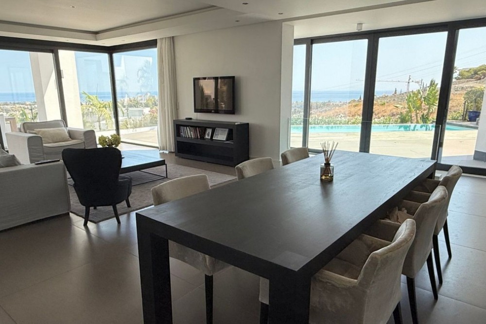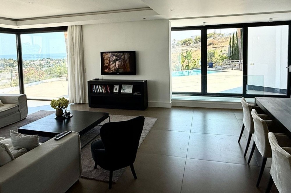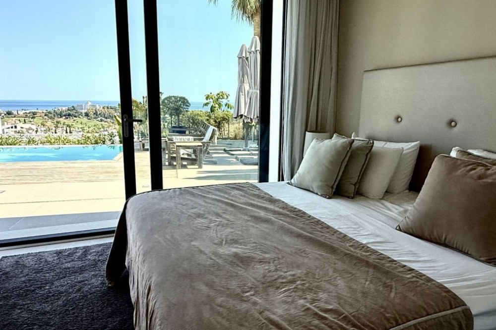 - This exquisitely crafted contemporary villa situated within a gated community presents breathtaking sea views and an open-concept living space filled with natural light. The floor-to-ceiling glass windows lead out to the terrace. The living area is ideal for both relaxation and entertainment, showcasing magnificent views of the sea and the surrounding landscape. The dining space also opens onto the outdoor terrace, making it perfect for outdoor dining. The cutting-edge kitchen is equipped with high-end appliances, generous storage, and a chic island that serves as the centerpiece of the home. Each of the four bedrooms serves as a private sanctuary, complete with en-suite bathrooms and large windows that provide stunning views and illuminate the rooms with natural light. Outside, the villa features a private pool, perfect for sunbathing and taking in the spectacular vistas. The meticulously maintained garden offers a tranquil atmosphere, while the mini tennis court introduces a playful and active aspect to the property. Situated in Mirador del Paraiso, an exceptional gated community within Paraiso Alto, you are within walking distance to a small mini-market for daily necessities and less than 10 minutes from the beach, 15 minutes from Puerto Banus, and 45 minutes from Malaga Airport.