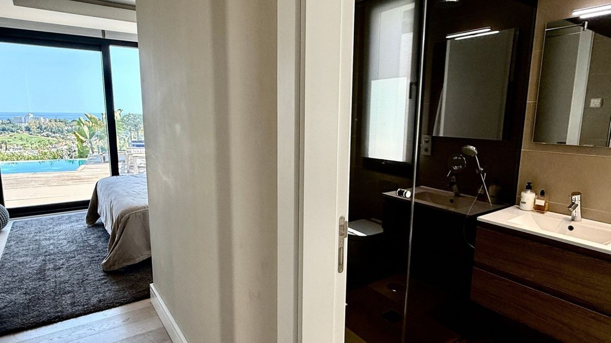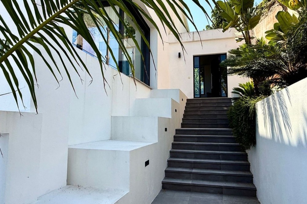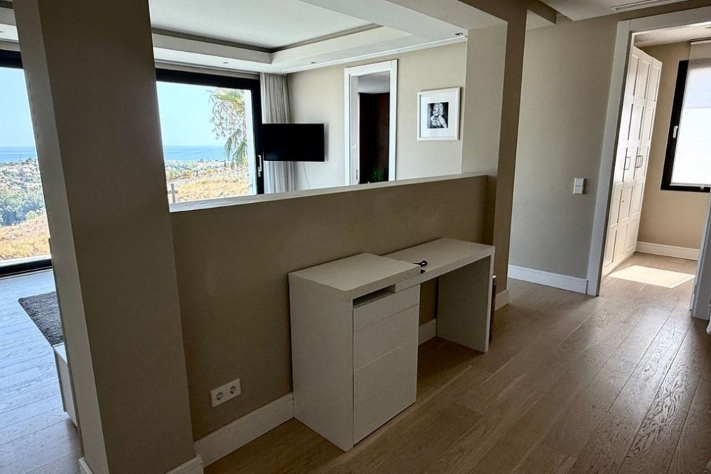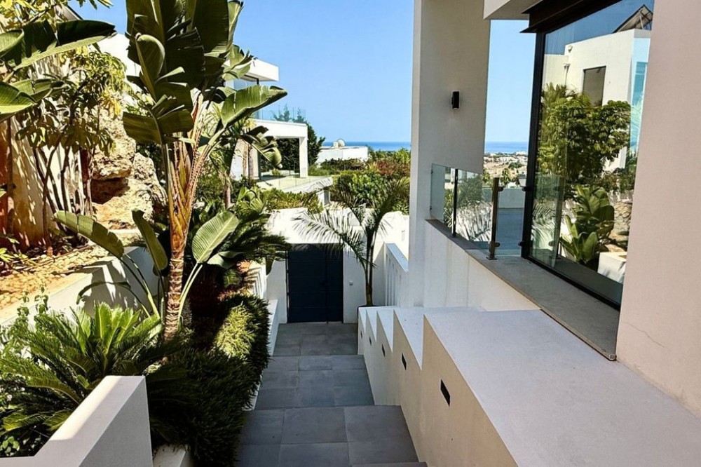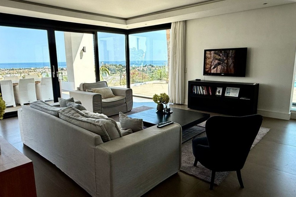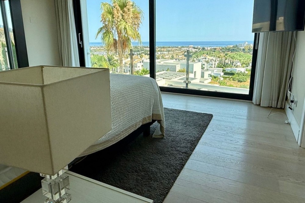 - This exquisitely crafted contemporary villa situated within a gated community presents breathtaking sea views and an open-concept living space filled with natural light. The floor-to-ceiling glass windows lead out to the terrace. The living area is ideal for both relaxation and entertainment, showcasing magnificent views of the sea and the surrounding landscape. The dining space also opens onto the outdoor terrace, making it perfect for outdoor dining. The cutting-edge kitchen is equipped with high-end appliances, generous storage, and a chic island that serves as the centerpiece of the home. Each of the four bedrooms serves as a private sanctuary, complete with en-suite bathrooms and large windows that provide stunning views and illuminate the rooms with natural light. Outside, the villa features a private pool, perfect for sunbathing and taking in the spectacular vistas. The meticulously maintained garden offers a tranquil atmosphere, while the mini tennis court introduces a playful and active aspect to the property. Situated in Mirador del Paraiso, an exceptional gated community within Paraiso Alto, you are within walking distance to a small mini-market for daily necessities and less than 10 minutes from the beach, 15 minutes from Puerto Banus, and 45 minutes from Malaga Airport.