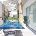 - Contemporary detached villa of 360 m² built in Benalmádena Pueblo, in the prestigious residential area of Torremuelle. It is a house built in 2017, it is in an unbeatable condition and consists of 2 kitchens + 1 bar area, 2 living rooms, a private lift, 3 terraces with spectacular sea views, direct access to the social club and pool area, underfloor heating, air conditioning and solar panels. We present this beautiful and exclusive house of 309 m2, distributed over 3 floors connected by lift, enjoys a modern and functional design and lots of natural light. The property has a fully equipped modern kitchen with a large island and an outdoor kitchen with barbecue, 2 living rooms, 3 bedrooms, all with en-suite bathrooms, 1 guest toilet, 3 terraces, 1 private patio, a closed garage for 2 cars, storage room and photovoltaic panels that significantly reduce electricity consumption. All within the prestigious Big Blue urbanisation, in Torremuelle, Benalmádena Pueblo, with a fantastic communal swimming pool, residents gym, social club and security system. The sea views with the peaceful and green surroundings are truly spectacular, present from several rooms of the house and its terraces, which makes this property a unique place to enjoy the sun and tranquillity all year round. Layout: ???? Access floor (street level): Upon entering we are greeted by a bright and spacious living room with an elegant modern-style bar area and access to a private terrace. This floor houses the spacious and comfortable master bedroom with a dressing room and en-suite bathroom, as well as a second bedroom also with en-suite bathroom. Here you will find the access to the garage for 2 cars and the entrance to the lift that connects the whole house. ???? First floor (main floor): This floor houses the heart of the house: a very spacious open concept living room, with direct access to a spectacular terrace that surrounds the entire house. The interior is divided into several well-defined areas: dining area, relaxation area, reading corner and large open-plan living room with plenty of natural light. The spacious and modern interior kitchen is fully equipped and includes a pantry and separate laundry area. From the living room there is access to the south-west facing terrace with beautiful sea views. On one of its sides there is an outdoor kitchen next to the barbecue area, ideal for celebrations or outdoor meals. Also from this floor there is access to a cosy private patio. ???? Upper floor (third floor): On this level there is a third bedroom suite with dressing room, private bathroom and access to a large terrace with panoramic sea views. From this terrace there is direct access to the communal areas of the urbanization, such as the swimming pool and the social club, which makes this level a perfect space for relaxing, teleworking or receiving guests with total independence. Located in one of the most sought after areas of the Costa del Sol, the property is within a 15 minute walk to the local train station and the beach. With easy access to the picturesque centre of Benalmádena Pueblo with its exquisite restaurants and charming cobbled streets, this property represents a unique opportunity for those seeking a luxury, efficient home with views to fall in love with, where design, location and quality come together in perfection. The house has been tastefully renovated and decorated, incorporating high quality materials such as porcelain stoneware floors, underfloor heating, modern energy efficient systems and architectural solutions that elevate comfort and style.