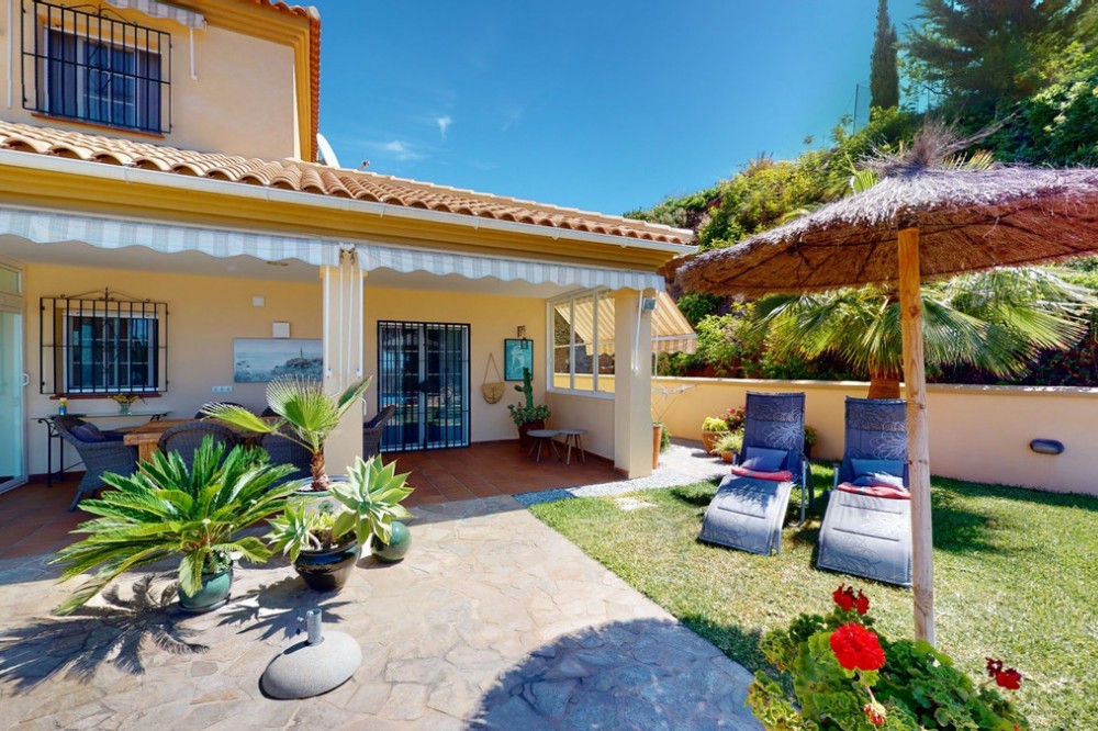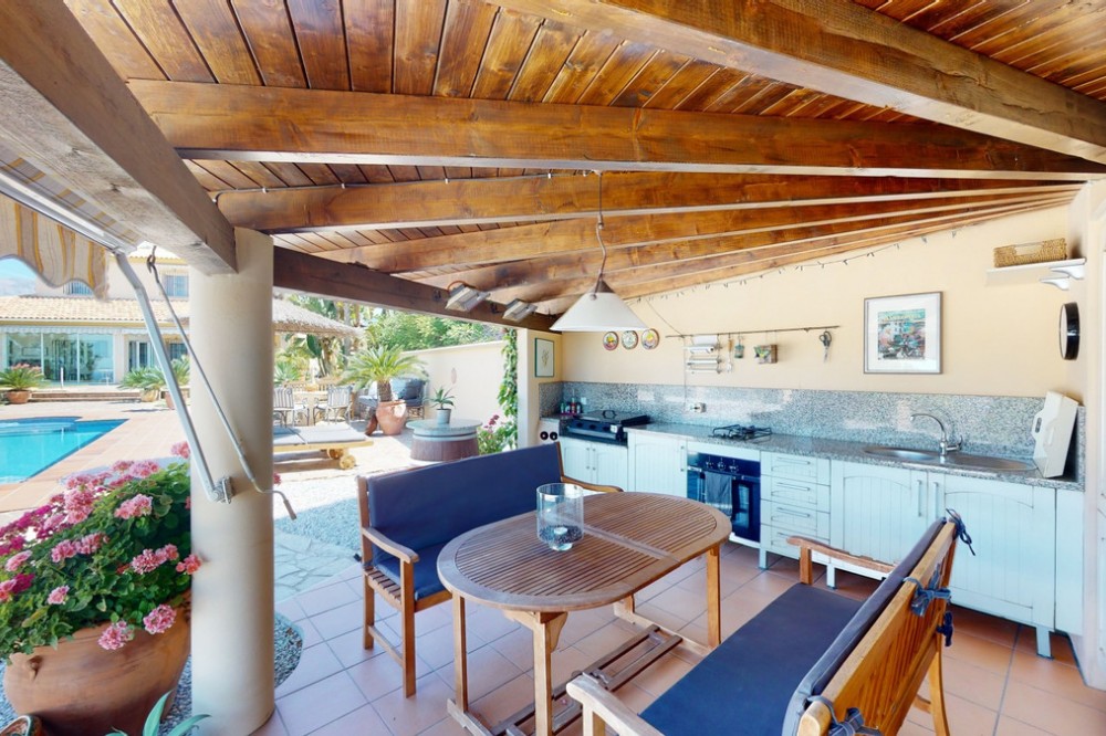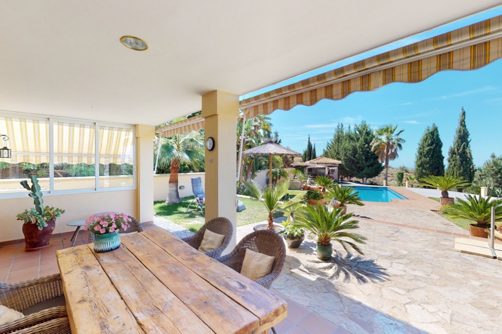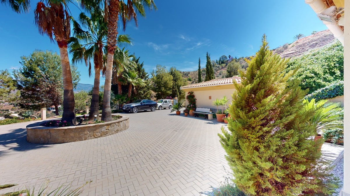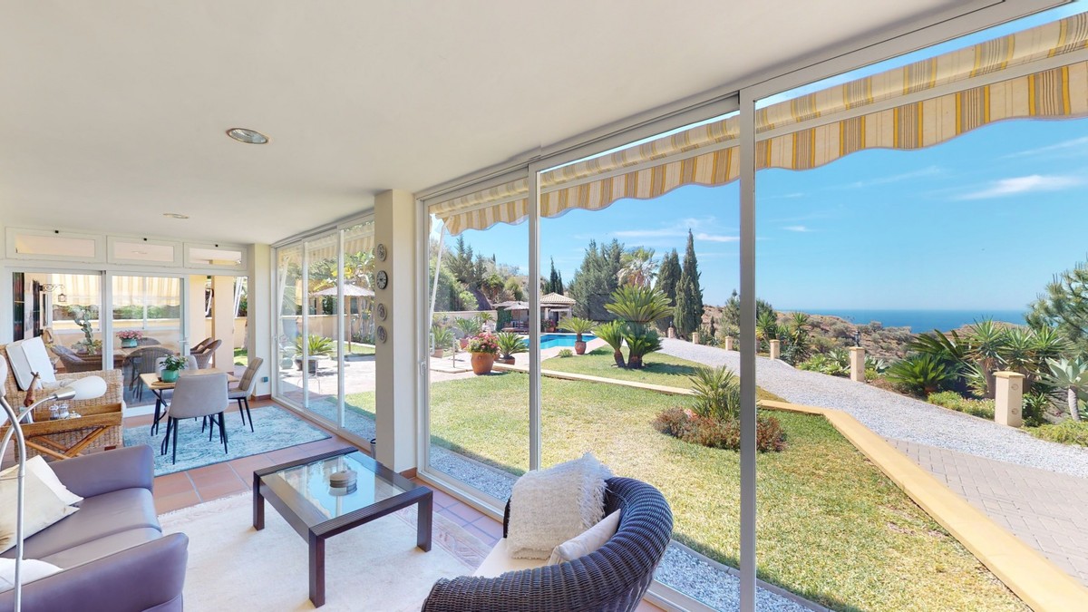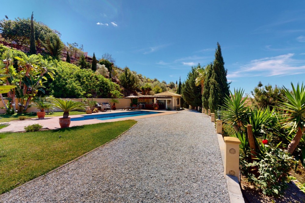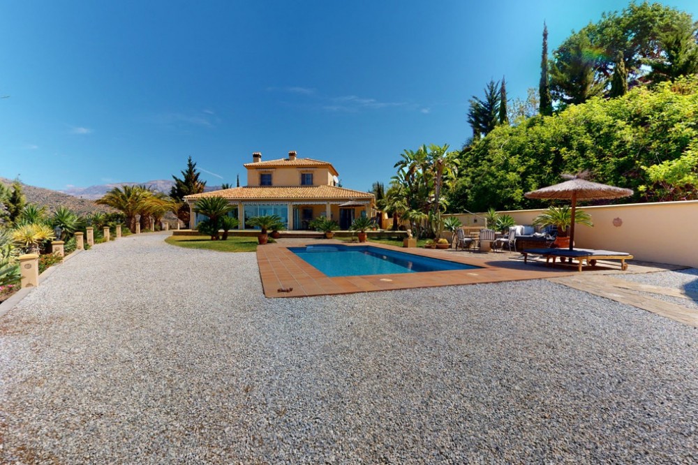 - The perfect view paired with the right southwest orientation, which together gives the superlative to absolute happiness. A villa which leaves nothing to be desired, built to a very high standard with an incomparable beautiful garden with spa, sauna and pool, a luxurious outdoor kitchen with integrated dining area. All this and more is offered by this unique villa, located between Algarrobo and Sayalonga. Due to its exposed location, in addition to absolute privacy, you have the romantic view of the setting sun - partly over the Mediterranean Sea and sometimes - depending on the season - over the fabulous mountain landscape of Málaga. Over an asphalted, with pines lined private access road one reaches the imposing entrance area of the property , where a palm island is in the midst of rondel. There are several parking spaces and a garage plus a large carport. On the first floor of the villa is the living room with separate fireplace room, a guest toilet and laundry room, a modern kitchen with access to the very spacious conservatory, which lacks nothing. Further, on the first floor there is a really nice bedroom with a bathroom on suite. On the upper floor of the villa is the master bedroom with a spacious bathroom on-suite , as well as an attached dressing room. The property is equipped with central heating, air conditioning and a fireplace. On the plot are planted a variety of fruit trees, palm trees , tropical plants and pine trees. 15 minutes to the beach and the sea, as well as the golf course and marina of Caleta - and only 40 minutes drive to the airport of Málaga. We are pleased to be able to present this dream property to you soon, either personally or via virtual viewing. Because this world, it is unique - just like our Axarquía. In Andalusia. On the Costa del Sol. Here, on the sunny side of life...