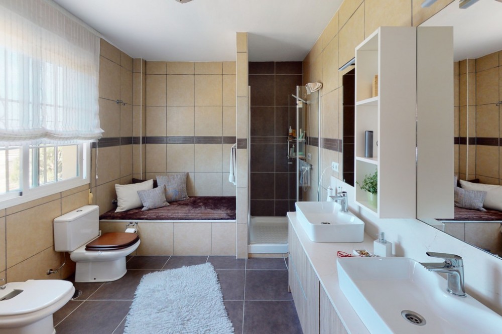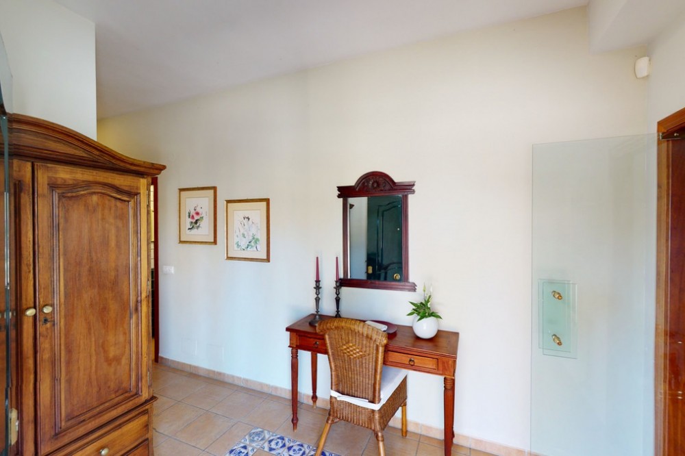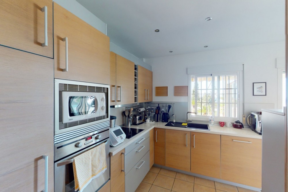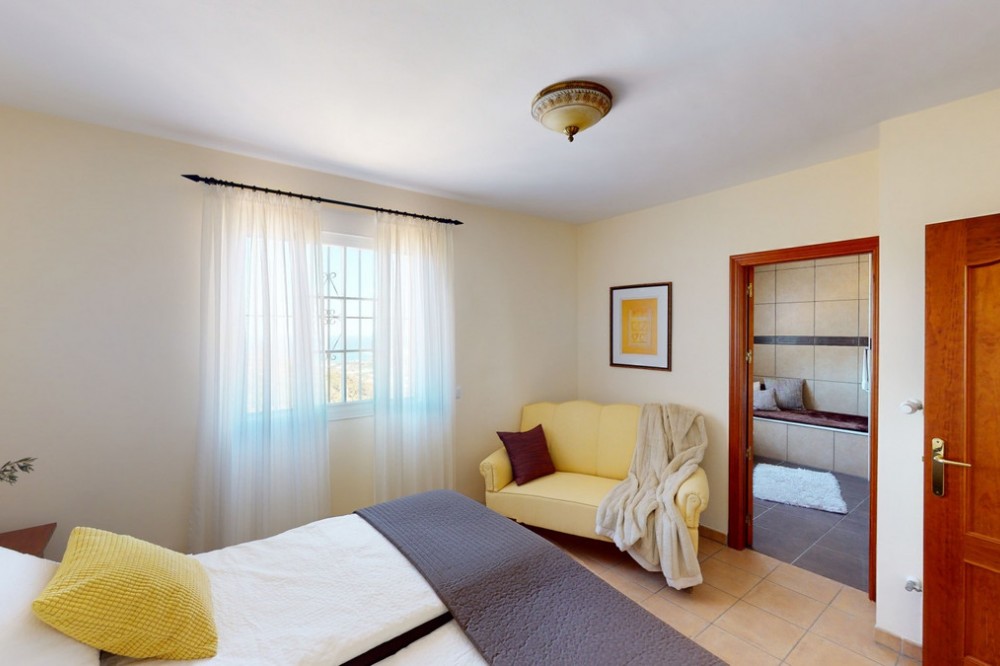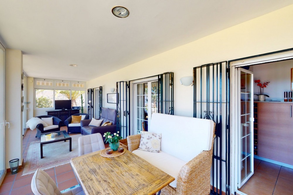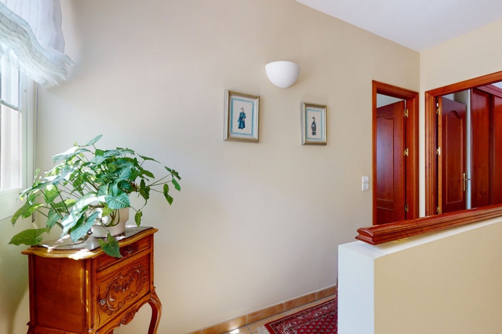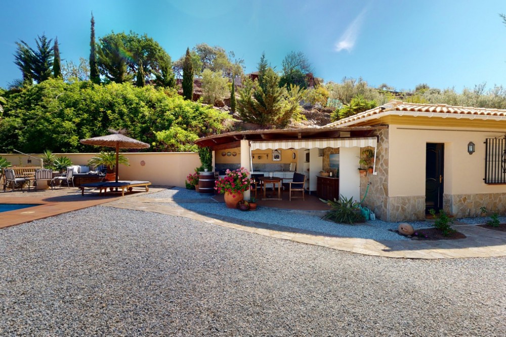 - The perfect view paired with the right southwest orientation, which together gives the superlative to absolute happiness. A villa which leaves nothing to be desired, built to a very high standard with an incomparable beautiful garden with spa, sauna and pool, a luxurious outdoor kitchen with integrated dining area. All this and more is offered by this unique villa, located between Algarrobo and Sayalonga. Due to its exposed location, in addition to absolute privacy, you have the romantic view of the setting sun - partly over the Mediterranean Sea and sometimes - depending on the season - over the fabulous mountain landscape of Málaga. Over an asphalted, with pines lined private access road one reaches the imposing entrance area of the property , where a palm island is in the midst of rondel. There are several parking spaces and a garage plus a large carport. On the first floor of the villa is the living room with separate fireplace room, a guest toilet and laundry room, a modern kitchen with access to the very spacious conservatory, which lacks nothing. Further, on the first floor there is a really nice bedroom with a bathroom on suite. On the upper floor of the villa is the master bedroom with a spacious bathroom on-suite , as well as an attached dressing room. The property is equipped with central heating, air conditioning and a fireplace. On the plot are planted a variety of fruit trees, palm trees , tropical plants and pine trees. 15 minutes to the beach and the sea, as well as the golf course and marina of Caleta - and only 40 minutes drive to the airport of Málaga. We are pleased to be able to present this dream property to you soon, either personally or via virtual viewing. Because this world, it is unique - just like our Axarquía. In Andalusia. On the Costa del Sol. Here, on the sunny side of life...