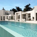 - Tucked away on a quiet cul-de-sac in Sotogrande’s tranquil F Zone, this striking new villa is currently under construction and set for completion in May 2025. Designed with modern living in mind, the home embraces its south-facing position, flooding the interior with natural light and opening up to lush garden views and the calming backdrop of native woodlands. Occupying a generous 1,786 m² plot, the villa is accessed via a long private driveway that ensures complete privacy. Inside, the 550 m² layout is spacious and thoughtfully planned, offering five large bedrooms, multiple living and entertaining areas, and seamless transitions to outdoor spaces. There are 265 m² of open terraces, 64 m² of covered terraces, and a stunning rooftop terrace—perfect for sunset views and alfresco evenings. The home will be equipped with high-spec features, including underfloor heating, full air conditioning, and an advanced domotic system for effortless control of lighting, climate, and security. Outside, the 14.5 m x 5 m saltwater infinity pool—solar-heated for energy efficiency—sits in harmony with the landscaped gardens, creating an ideal space for relaxing and entertaining. Combining sleek architecture, sustainable tech, and a peaceful setting, this property is a rare find for buyers looking for a refined lifestyle in one of Sotogrande’s most desirable neighborhoods.