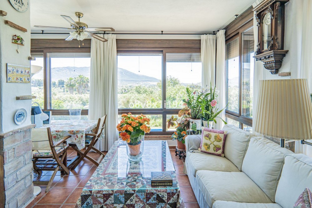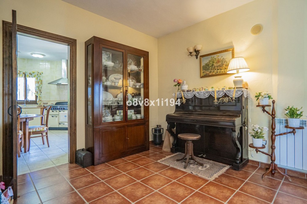 - A Sanctuary of Serenity in the Heart of Nature Upon arrival at this estate, time seems to stand still. The house, surrounded by vibrant gardens and fruit trees, instantly conveys a sense of peace, with the air infused with the scents of the surrounding nature. This home, full of light and warmth, has been designed to enjoy every moment. From the living room and dining area, large windows flood the space with sunlight and invite the landscape to become part of the home. The spacious kitchen invites quiet mornings with a cup of coffee while the village awakens in the distance. In winter, the glass-enclosed dining room — fitted with GUARDIAN SUN glass, offering high-efficiency thermal and light insulation — becomes a cozy corner to enjoy sunny days. Next to it, a charming reading room offers the perfect nook to get lost in the pages of a book. The master bedroom, a true sanctuary of calm, opens onto two private terraces, where summer nights are enjoyed under a starlit sky. On the ground floor, the garden becomes an extension of the home, with direct access from the bedrooms. The covered terrace with its bar and barbecue area promises unforgettable evenings with friends and family, while the pool sparkles in the sunlight, inviting a refreshing swim. Everything here has been designed for comfort, efficiency, and a carefree lifestyle. Located in a natural setting, yet only ten minutes from the village and with easy access to Málaga, this is not just a property, but a way of life. A home where every day is lived to the fullest, surrounded by beauty and tranquility. Basic Features • Rustic estate • 2 floors • 374 m² built • 4 bedrooms • 4 bathrooms • 9,214 m² plot • Several terraces • Fireplace • Double garage with storage room • Built-in wardrobes • South-facing • Central heating (diesel) • Air conditioning • Private pool • Garden Exclusive Features of This Property • Prime location combining privacy with proximity to Alhaurín el Grande and Cártama • Flat plot of over 9,000 m², fully usable with open views • Natural light in every room thanks to its south orientation and large windows • Master bedroom with private terraces, an intimate and exclusive space • Renovated pool, terrace with bar and barbecue area, ideal for leisure and relaxation • Photovoltaic panels, solar panels for hot water, and central heating for maximum efficiency and comfort • First Occupancy License, ensuring full legal compliance and ease in paperwork A property that offers not only an exceptional home but a unique lifestyle in the heart of nature.