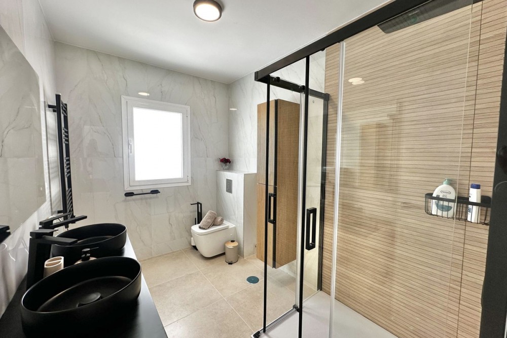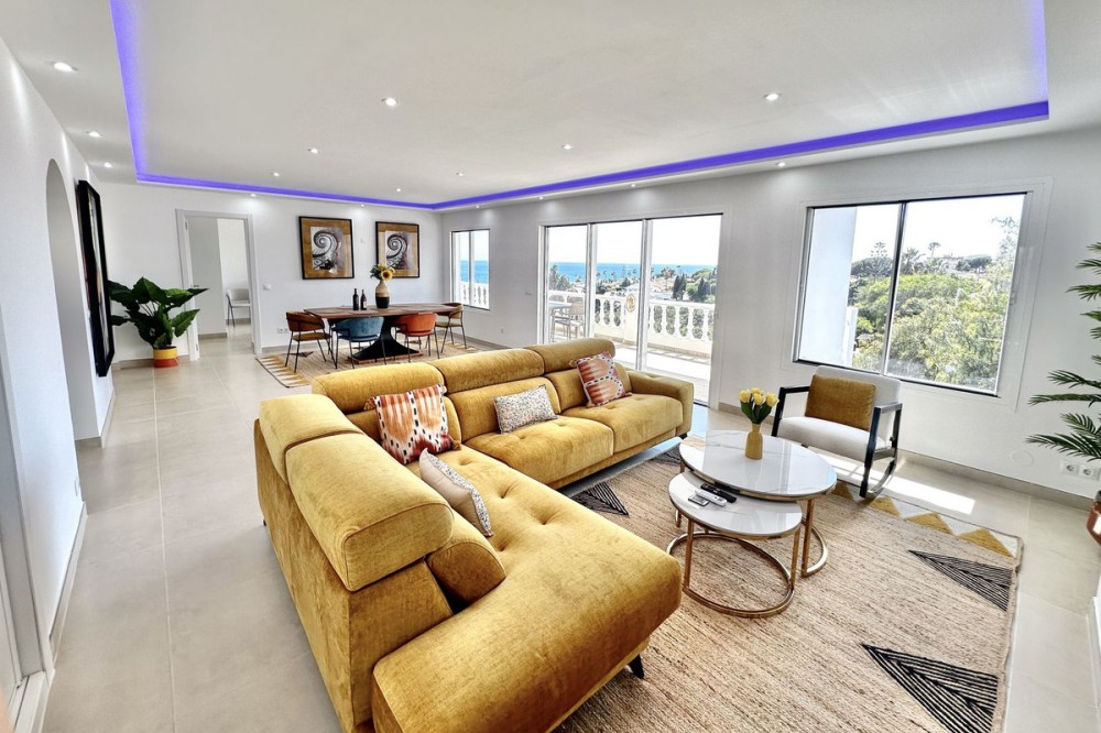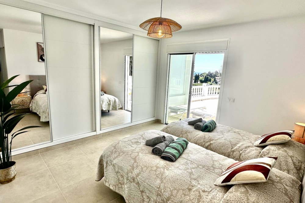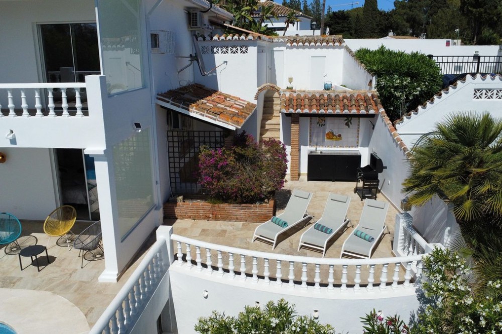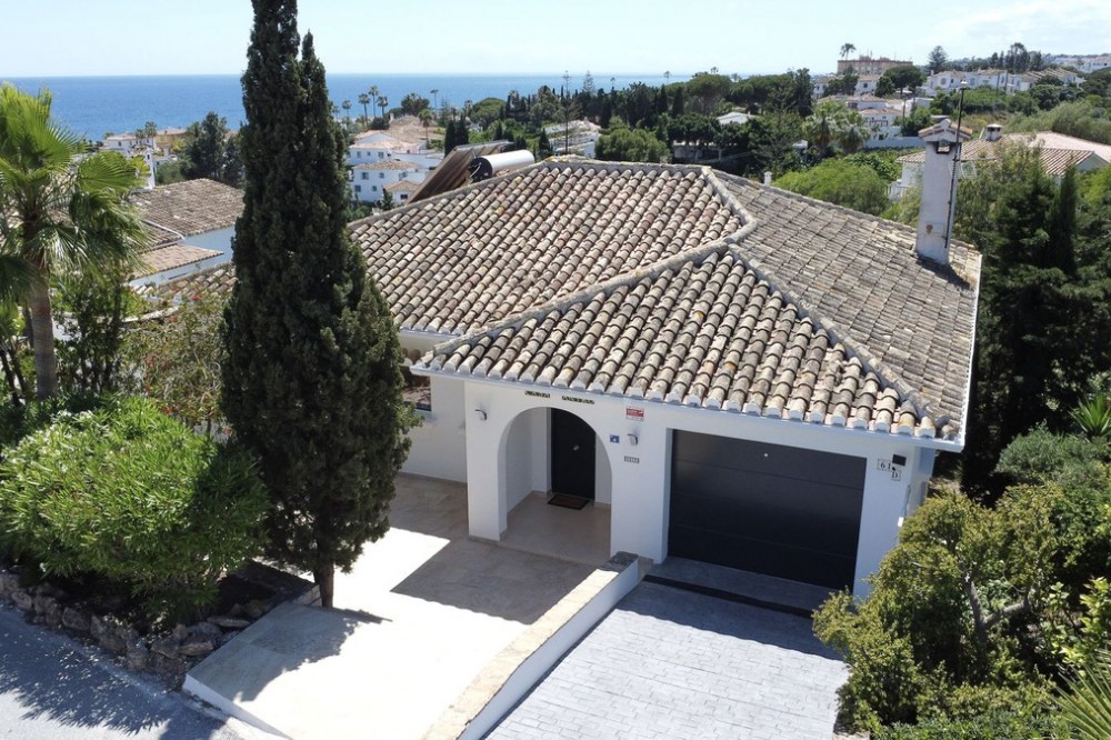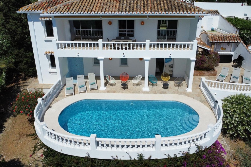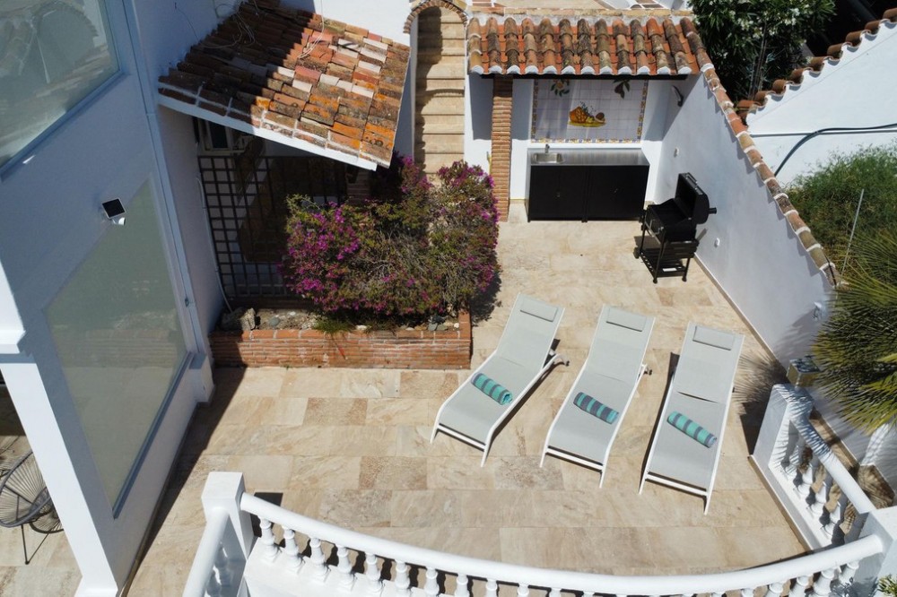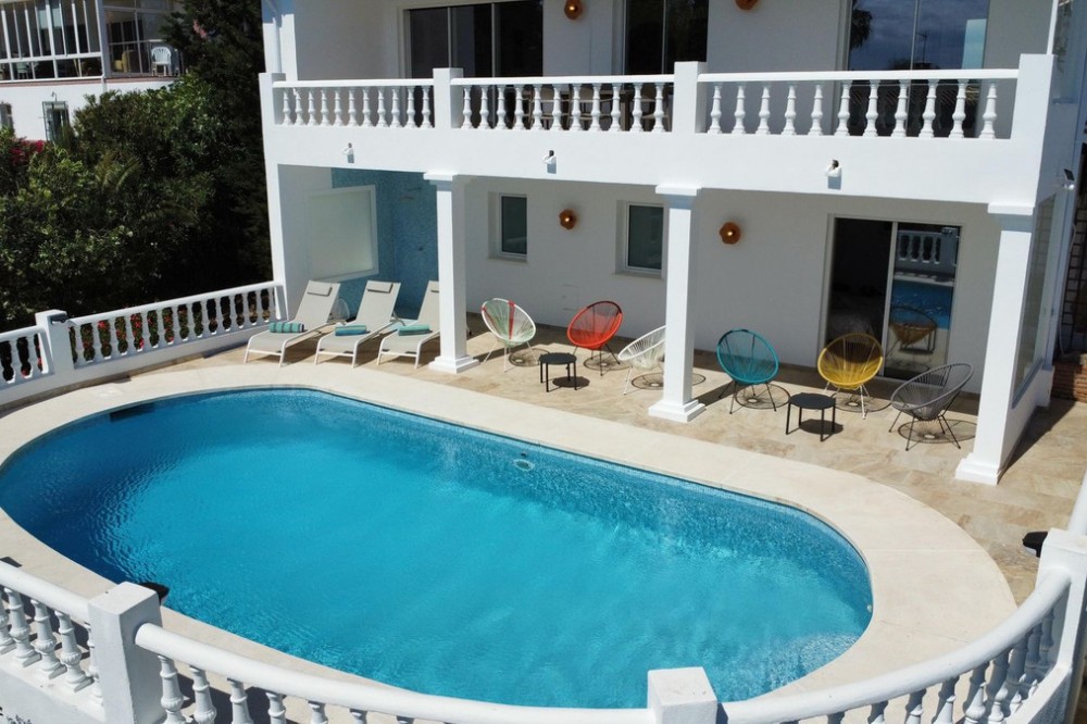- DETACHED LUXURY VILLA WITH PANORAMIC SEA VIEWS AND PRIVATE POOL – EL CHAPARRAL - WALKING DISTANCE TO THE BEACH 3 Bedrooms | 3.5 Bathrooms | Private Pool | Sea Views | Renovated 2025 This stylish and newly renovated detached villa is located in the desirable residential area of El Chaparral, just minutes from the popular town of La Cala de Mijas and its beautiful beaches. With panoramic sea views, a private swimming pool, and a bright, modern interior, this home is ready to move in — whether for full-time living, holiday use, or as a high-return rental investment. It has rental license. PROPERTY HIGHLIGHTS Spacious layout with 3 bedrooms and 3.5 bathrooms Open-plan living and dining room with sea views and direct access to the main terrace Fully equipped kitchen with quality appliances Private swimming pool with sun deck, loungers, BBQ and dining area Multiple terraces ideal for relaxing, entertaining, or enjoying the views Master suite with en-suite bathroom and sea view balcony Renovated with modern finishes, full of natural light Private parking, garage, air conditioning, fireplace and more. Big garden plot, spacious swimming pool LOCATION Just 4 minutes to the beach by car or 10 minutes walking 5 minutes to La Cala de Mijas, with its restaurants, shops, and lively atmosphere Close to golf courses, forest trails, and hidden coves 25 minutes to Málaga Airport Peaceful setting with quick access to both Marbella and Fuengirola WHY INVEST IN THIS VILLA? This property combines privacy, sea views, and modern comfort in one of the most desirable areas of Mijas Costa. The home is already established as a high-demand holiday rental, offering excellent income potential if desired. Whether you’re looking for a second home, full-time residence, or investment, this property is a rare opportunity in a sought-after location. Detached Villa, El Chaparral, Costa del Sol. 3 Bedrooms, 4 Bathrooms, Built 263 m², Terrace 40 m², Garden/Plot 950 m². Setting : Close To Golf, Close To Shops, Close To Sea, Close To Town, Close To Schools, Urbanisation. Orientation : South East, South, South West, West. Condition : Excellent, Recently Renovated, Recently Refurbished. Pool : Private. Climate Control : Air Conditioning, Hot A/C, Cold A/C, Fireplace. Views : Sea, Mountain, Panoramic, Garden, Pool. Features : Covered Terrace, Fitted Wardrobes, Near Transport, Private Terrace, Solarium, WiFi, Storage Room, Utility Room, Ensuite Bathroom, Barbeque, Double Glazing. Furniture : Fully Furnished. Kitchen : Fully Fitted. Garden : Private. Security : Electric Blinds, Alarm System. Parking : Garage, Covered, Street, Private. Utilities : Electricity, Drinkable Water. Category : Holiday Homes, Luxury, Resale, Contemporary.