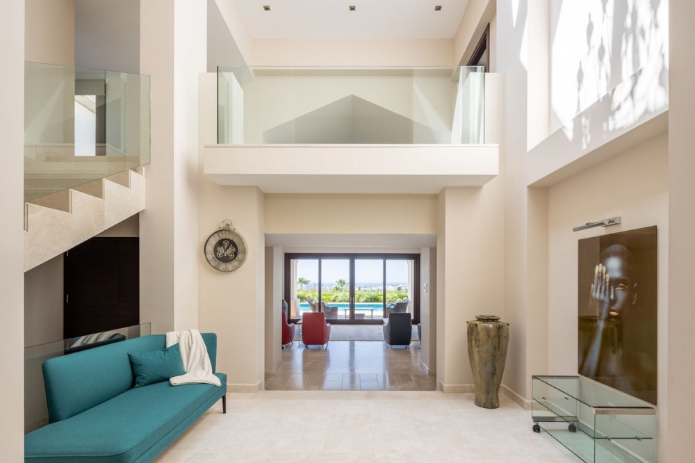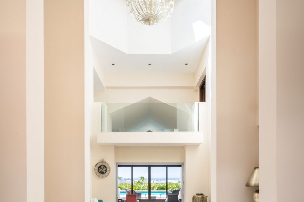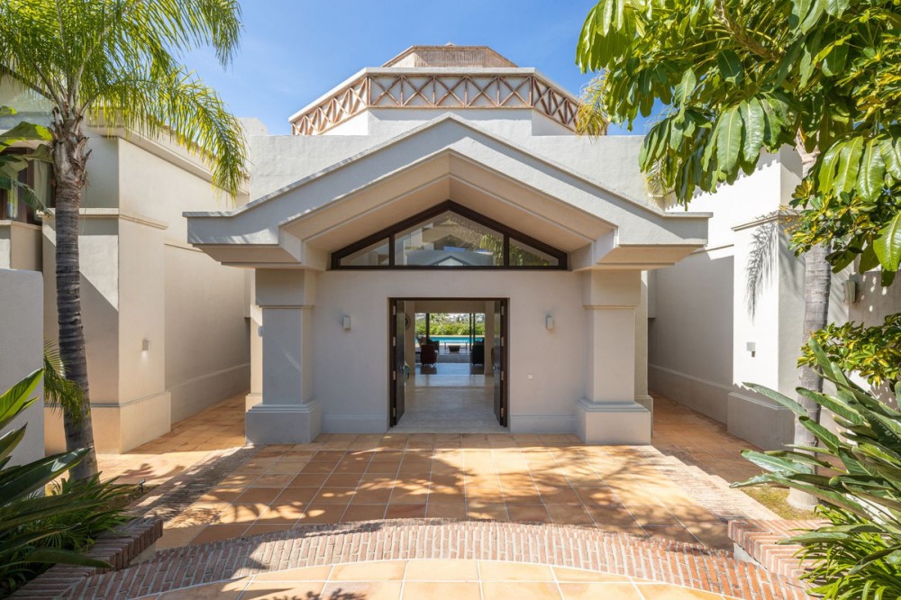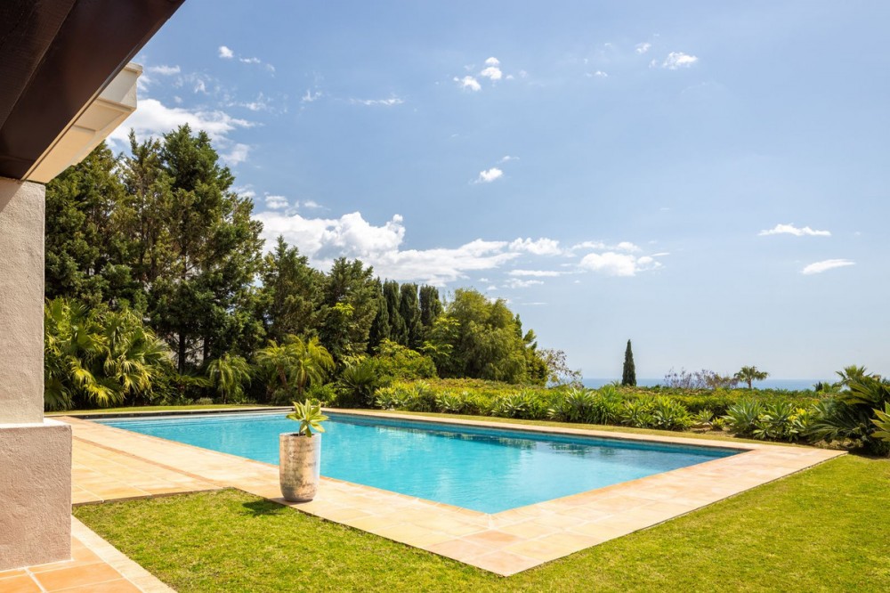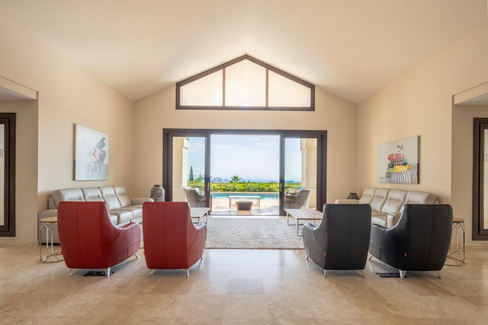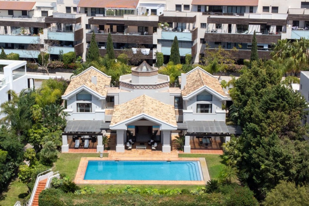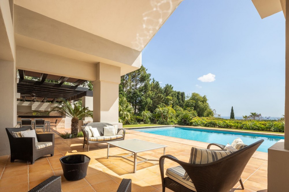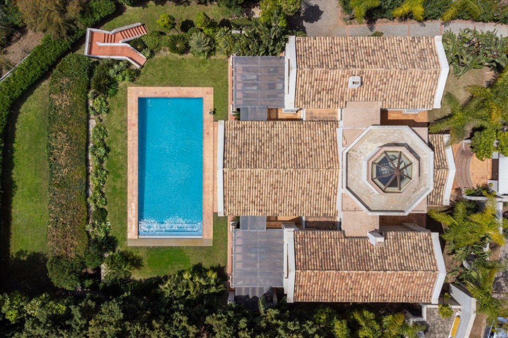 • VILLA FLAMINGOS – PROPERTY FOR SALE IN LOS FLAMINGOS, BENAHAVÍS Located in one of the most prestigious areas of Los Flamingos, this stunning south-facing villa offers spectacular panoramic sea views and is just minutes away from all amenities, the beach, and only 10 minutes from Puerto Banús. Set on a generous plot of 2,239 m² with a total built area of 727 m², the property is distributed over three floors, combining elegance, functionality, and comfort. A perfect home for those seeking exclusivity, privacy, and unparalleled views of the Mediterranean. Main Features: Detached 3-level villa 6 spacious bedrooms and 6 bathrooms Plot size: 2,240 m² Terraces and balconies with open views Private garage included Excellent condition (built in 2005) Fitted wardrobes and storage room South-facing, with maximum natural light Central gas heating and underfloor heating Air conditioning Additional Amenities: Private swimming pool (83.26 m²) Well-maintained gardens Additional outdoor parking Home cinema room Fully equipped barbecue area Layout: Basement Floor: 257.5 m² allocated to two guest or staff bedrooms, home cinema, storage room, utility room, technical room, garage for at least two vehicles, and exterior parking area. Includes internal stairs connecting to the main level. Ground Floor: 288.73 m² plus 52.80 m² of porches and pergolas. Features an elegant entrance hall, guest toilet, spacious main living room, hallway, en-suite bedroom, family lounge, independent kitchen, dining room, and direct access to covered terraces and barbecue area. Upper Floor: 180.74 m² comprising a majestic master suite with private bathroom and two additional en-suite bedrooms. Internally connected to the lower floors.