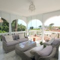 • This is a lovely family villa in a very desirable area, La Capellania, Benalmadena, located on a short Cul De Sac in a very quiet and secure residential area with stunning sea and mountain views. The orientation is fabulous and there is off road parking plus a large front walled yard with above ground pool and multiple sitting areas. The property has manicured and easy maintained gardens on three sides and there is also a private solarium accessed via an easy climb straight staircase which offers panoramic sea and mountain views. The main property is all on one level which comprises of 3 large double bedrooms, 2 bathrooms, a south west facing semi open plan kitchen/living with real fire and off this area a very large covered terrace area with glass curtains around allowing use and comfort all year round. Below the main property is an independent apartment with a living room, open plan kitchen, bathroom and a double bedroom en-suite. The community is presently refurbishing the communal pool and the cost has already been accounted for. There are numerous amenities; including supermarket, cafes, restaurants, bars all within a short walk and you are also a 20 mins walk to the beach and only 10 mins drive to Malaga Airport. This villa really needs to be viewed to appreciate its full potential.