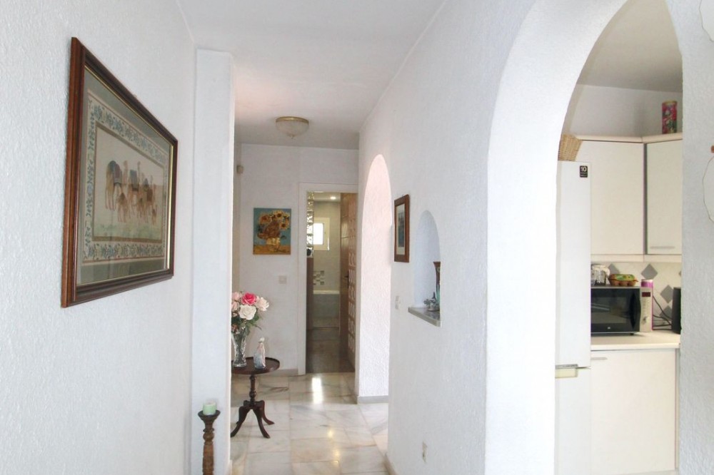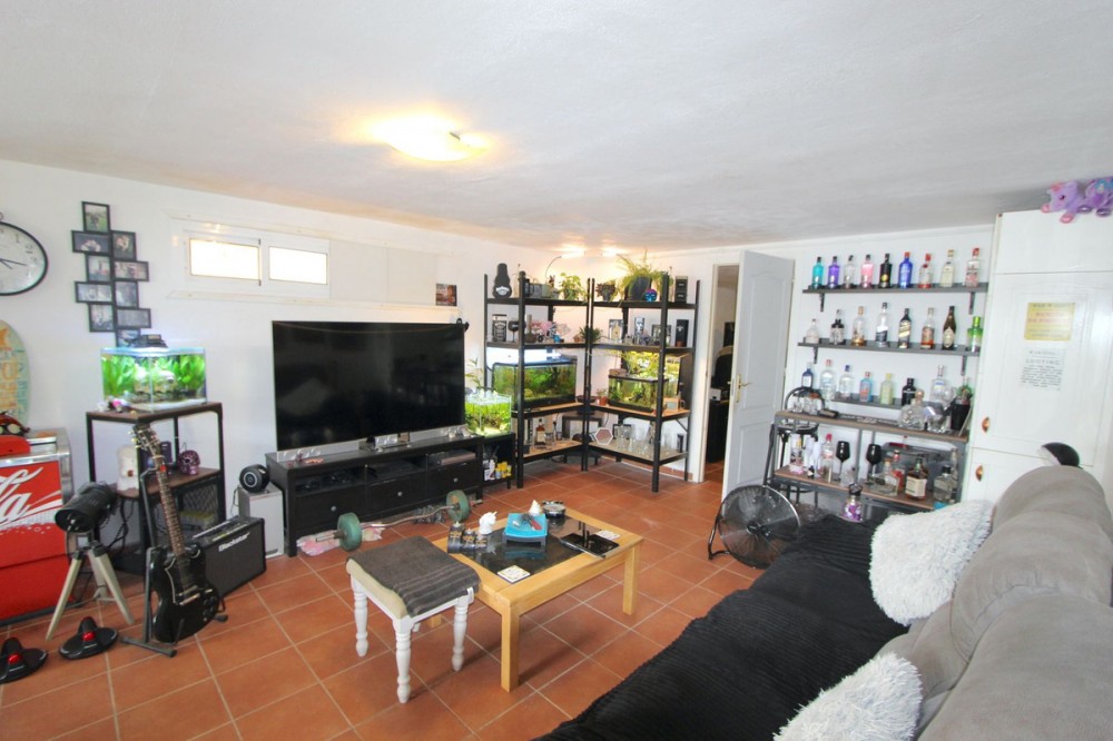 • This is a lovely family villa in a very desirable area, La Capellania, Benalmadena, located on a short Cul De Sac in a very quiet and secure residential area with stunning sea and mountain views. The orientation is fabulous and there is off road parking plus a large front walled yard with above ground pool and multiple sitting areas. The property has manicured and easy maintained gardens on three sides and there is also a private solarium accessed via an easy climb straight staircase which offers panoramic sea and mountain views. The main property is all on one level which comprises of 3 large double bedrooms, 2 bathrooms, a south west facing semi open plan kitchen/living with real fire and off this area a very large covered terrace area with glass curtains around allowing use and comfort all year round. Below the main property is an independent apartment with a living room, open plan kitchen, bathroom and a double bedroom en-suite. The community is presently refurbishing the communal pool and the cost has already been accounted for. There are numerous amenities; including supermarket, cafes, restaurants, bars all within a short walk and you are also a 20 mins walk to the beach and only 10 mins drive to Malaga Airport. This villa really needs to be viewed to appreciate its full potential.