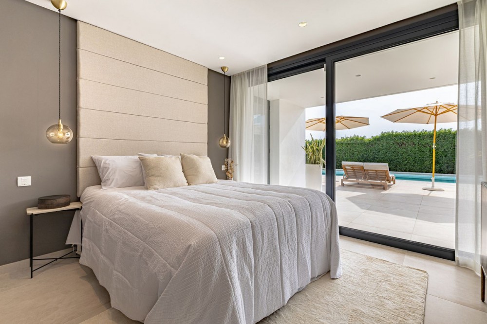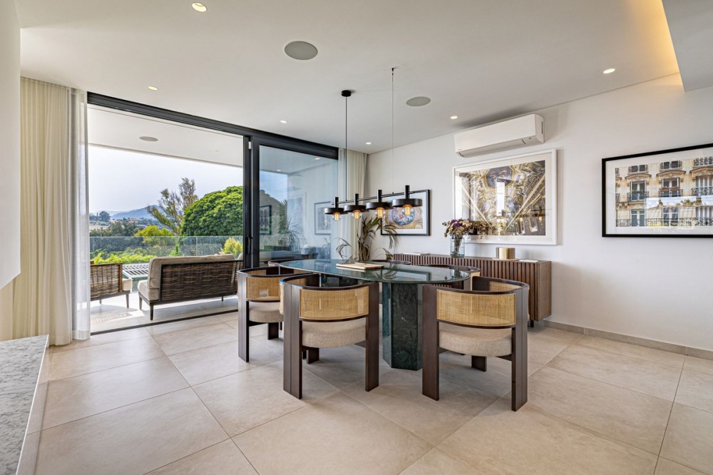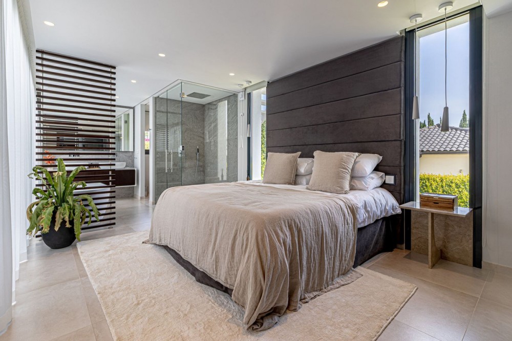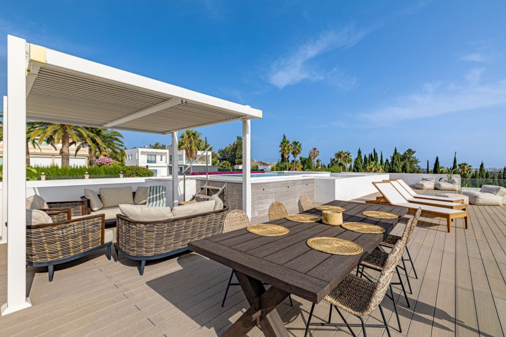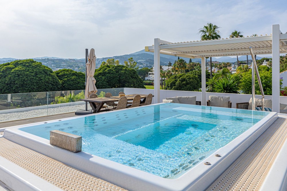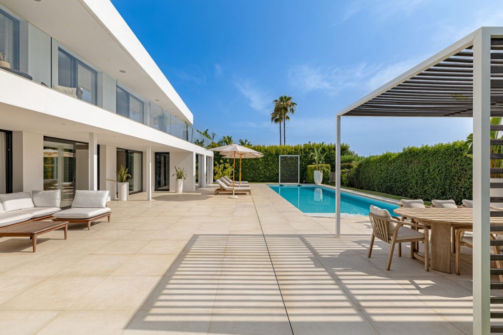 - Introducing this fantastic villa, a striking frontline golf villa that redefines modern Mediterranean living. Nestled in one of Marbella’s most prestigious enclaves, this exceptional residence fuses architectural sophistication with effortless comfort, creating a home that’s both visually stunning and remarkably functional. Set against the backdrop of lush fairways and majestic mountains, Orion 51 offers sweeping views from every corner. Expansive outdoor spaces, including sun-drenched terraces and a private pool, are designed for stylish entertaining and tranquil relaxation. A private driveway ensures seamless access, while the villa’s layout maximizes privacy and light. Inside, the open-plan living area is flooded with natural light, connecting seamlessly to a state-of-the-art kitchen that caters to both gourmet meals and casual gatherings. The primary suite is a serene retreat, complete with its own terrace access and a beautifully appointed en-suite bathroom that radiates refined elegance. For wellness and entertainment, Orion 51 is equipped with a cutting-edge gym, a cozy private cinema, and a rooftop solarium featuring a jacuzzi with panoramic views — the perfect setting to unwind and soak in Marbella’s golden hours. Located just minutes from premier golf courses, upscale dining, boutique shopping, and the iconic Puerto Banús. Enjoy exclusive, direct access with your buggy to the prestigious Los Naranjos Golf Course from your villa.