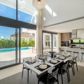 - Contemporary Villa with Luxury Amenities in El Paraiso, Estepona Discover this exceptional modern villa nestled in the prestigious El Paraiso area of Estepona, along the sought-after New Golden Mile. Ideally located just 10 minutes from Puerto Banús and within close proximity to top-tier amenities and an international school, this property effortlessly combines convenience with upscale living. Designed by acclaimed architect Pedro Iraburu Elizade, the villa showcases striking contemporary architecture with clean lines, expansive living spaces, and elegant finishes throughout. With 6 generously sized bedrooms and 6 stylish bathrooms, the home offers abundant space for family living or hosting guests. Step outside to your own private retreat featuring a heated swimming pool, an inviting Jacuzzi, and a chic BBQ area—perfect for alfresco dining or relaxing evenings. Inside, enjoy a private gym, a fully equipped cinema room, and multiple indoor-outdoor living areas designed for comfort and entertainment. Additional highlights include underground parking for three vehicles, a southwest orientation that bathes the home in natural light, and panoramic views that capture the beauty of both sunrise and sunset. This key-ready villa represents a rare opportunity to acquire a move-in-ready residence that blends modern elegance with top-tier amenities in one of the Costa del Sol’s most desirable neighborhoods.