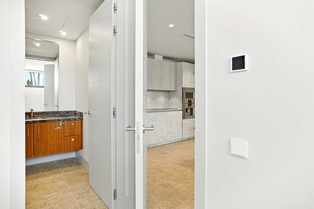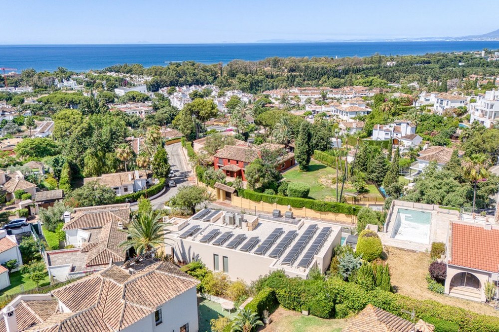 - Exclusive Villa in the Heart of Elviria, East Marbella Located in one of the most desirable areas of Elviria, East Marbella, this stunning contemporary villa offers unparalleled luxury and comfort at every turn. Built with the finest materials and equipped with the latest technologies, this property is the epitome of modern living. Entrance Level: The entrance level consists of a private, self-contained 1-bedroom apartment, 2 guest bedrooms with en-suite bathrooms, and an office space. There's a 4-car garage with an electric car charging point, 2 large storage rooms, and a technical room housing all the villa's machinery. Upper Level: Access to the superior level is via a unique spiral staircase or an elevator with a 4-person capacity. This level opens into a spacious open-plan living, dining, and kitchen area that leads out to a partially covered terrace, heated pool, and outdoor kitchen. The entire exterior terrace is designed as a "floating terrace," allowing rainwater to flow beneath the surface and be collected in a water reservoir for reuse in irrigation. Also on this level is the master bedroom, featuring a walk-in closet, his and hers wardrobes, and a large en-suite bathroom. This floor offers stunning south and southwest views toward Marbella, providing breathtaking scenery from every angle. State-of-the-Art Features Include: Gaggenau Kitchen: Featuring an induction hob and gas cooktops, 2 ovens (one conventional and one steam), and a separate plate warmer. An ideal setup for gourmet cooking and culinary enthusiasts. Polished Concrete Floors: These unique floors extend throughout the villa, including the spiral staircase, adding elegance and modernity to every space. Underfloor Heating: Powered by a water pipe system, ensuring optimum comfort throughout the year. 34 Solar Photovoltaic panels which take care if practically all the electricity needs of the property. Electric Blinds & Mosquito Nets: All windows and sliding patio doors are equipped with electric blinds and integrated mosquito nets, offering both comfort and functionality at the touch of a button. Heated Saltwater Pool: The 14-meter long pool is designed for year-round enjoyment and comes with a quality cover to minimize maintenance. Upgraded Jacuzzi with Hydrospa: An enhanced spa experience for ultimate relaxation. Pellet Stove Fireplace: Installed in the living area, offering a warm and cozy atmosphere in the cooler months. Infrared Sauna: Perfect for improving both physical and mental well-being. Water Softener: Ensures pure, high-quality water throughout the house, protecting all appliances. This villa, with its modern design and luxurious features, offers an exceptional living experience. Situated in one of the most prestigious areas of Marbella, it presents a unique opportunity to enjoy the best of contemporary lifestyle in an enviable location.