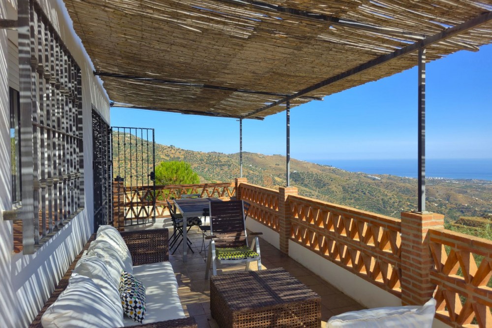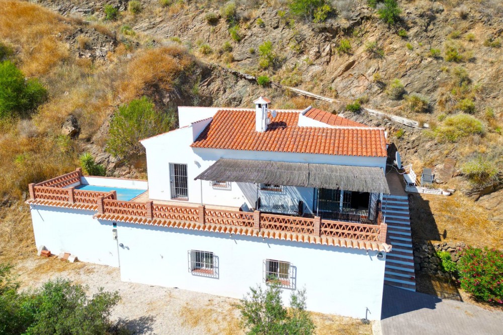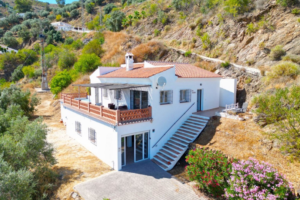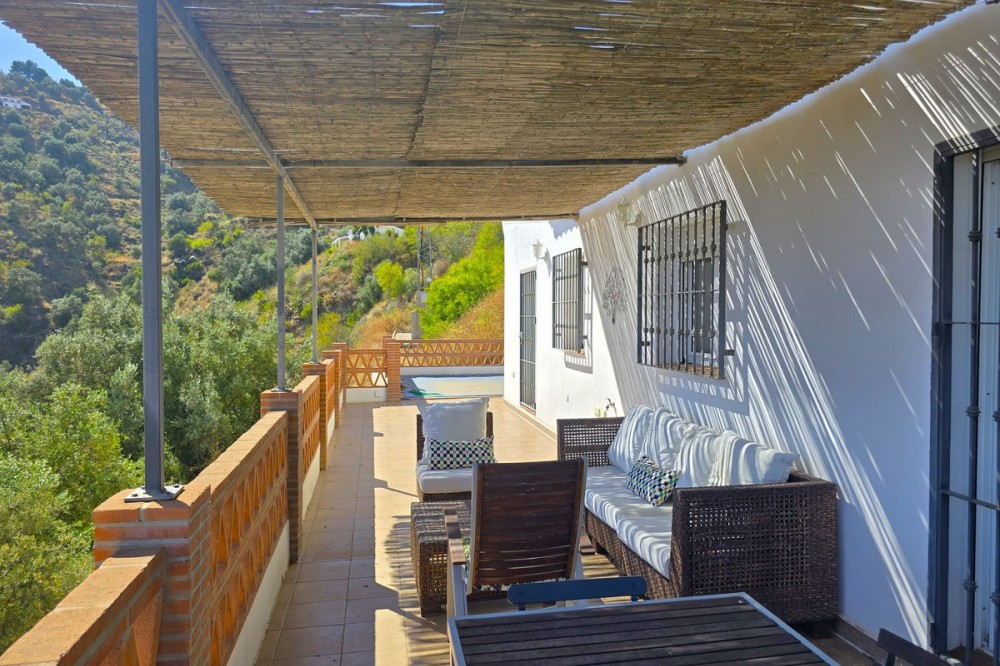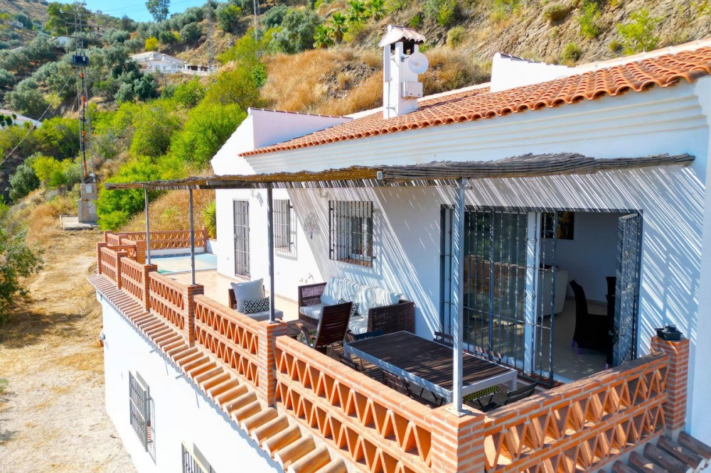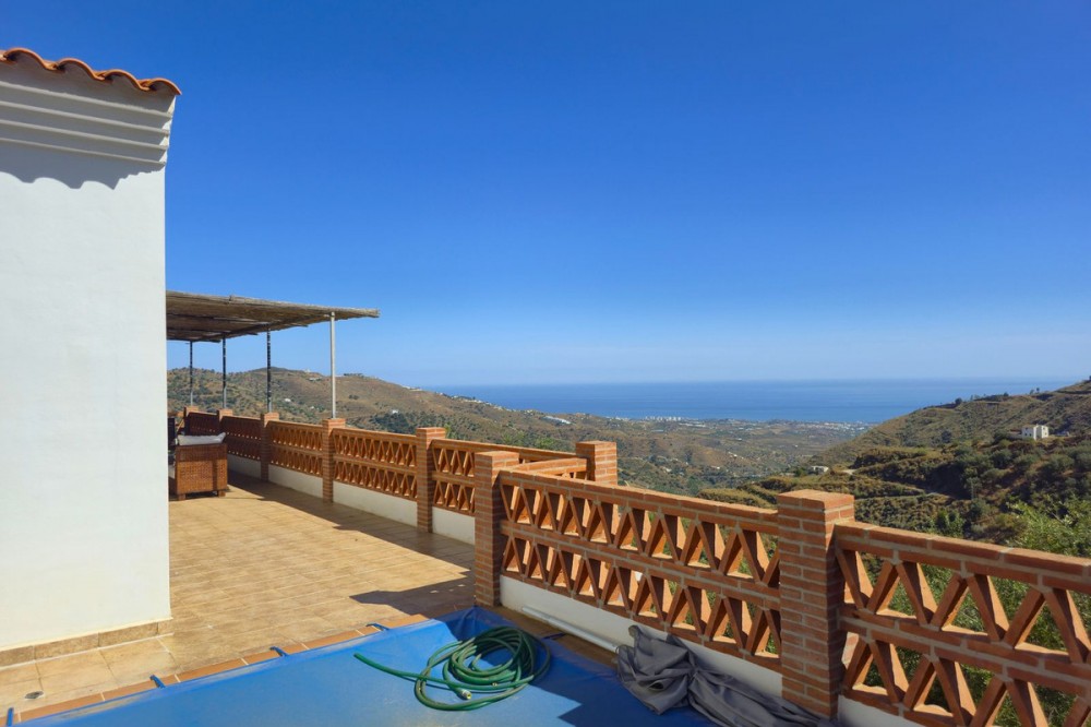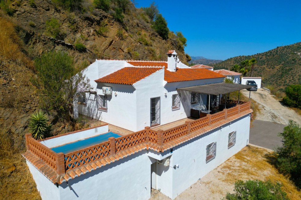 - Property Overview Nestled in the rolling hills of the Axarquía region, this beautifully maintained country home offers peace, privacy, and panoramic sea views—all within easy reach of the coast. Located just 15 minutes from Vélez-Málaga and 20 minutes from the beach at Torre del Mar, this home is ideal for those seeking tranquility without sacrificing convenience. Main Features - Bright and airy living area and open kitchen (fully fitted with oven, microwave, dishwasher) - Living area with air conditioning wood-burning stove - 3 double bedrooms with fitted air conditioning - 2 bathrooms (shower and bath) - Large terrace (42 m²) with south-facing sea views – perfect for dining or relaxing by the private pool (3x4 m) - Spacious 6,000 m² plot with great privacy and natural surroundings - 70 m² open-plan ground floor – ideal for creating a guest apartment, studio, or storage - Paved access – no rough tracks! Utilities & Systems - Supplied via 9,000-liter water tank (refilled by delivery trucks) - No mains water – eco-friendly or off-grid solutions possible - Alarm system for added peace of mind Investment Potential - With its existing layout and expandable ground floor, this property is perfect for: - A family home with rental unit - A holiday retreat with guest accommodation - Remote work or digital nomad living - Buyers looking for off-grid or self-sufficient solutions Nearby Vélez-Málaga: 15 minutes Torre del Mar (beach): 20 minutes Málaga airport: 45 minutes Hiking trails and nature all around Viewings & Contact This is a unique opportunity to own a fully equipped, move-in-ready villa with endless potential in one of Andalusia’s most beautiful regions. Contact us today to arrange a viewing or request a virtual tour.