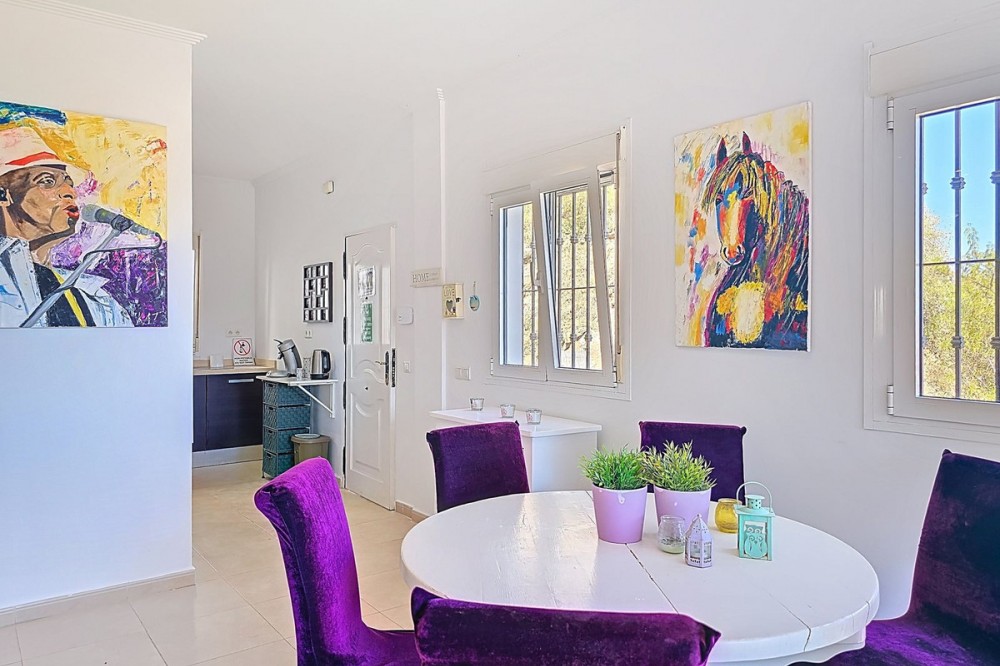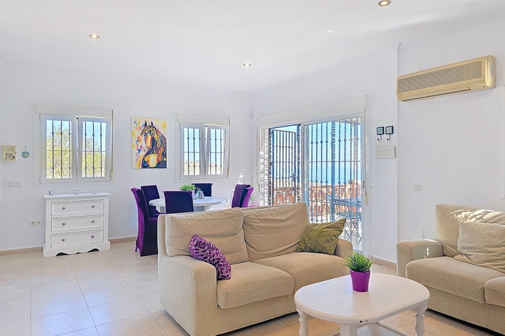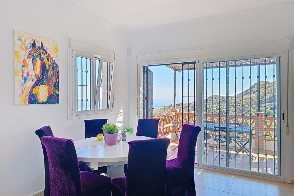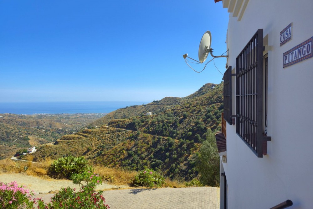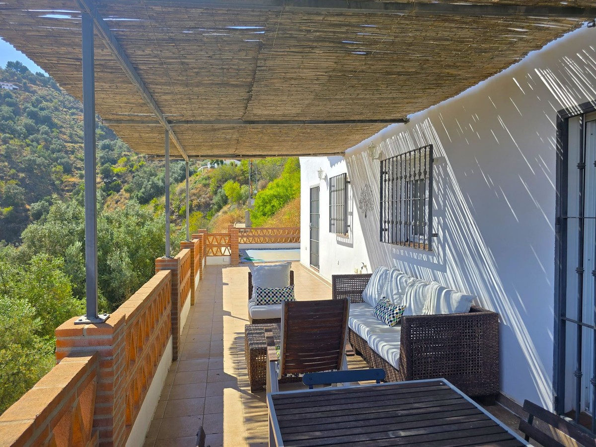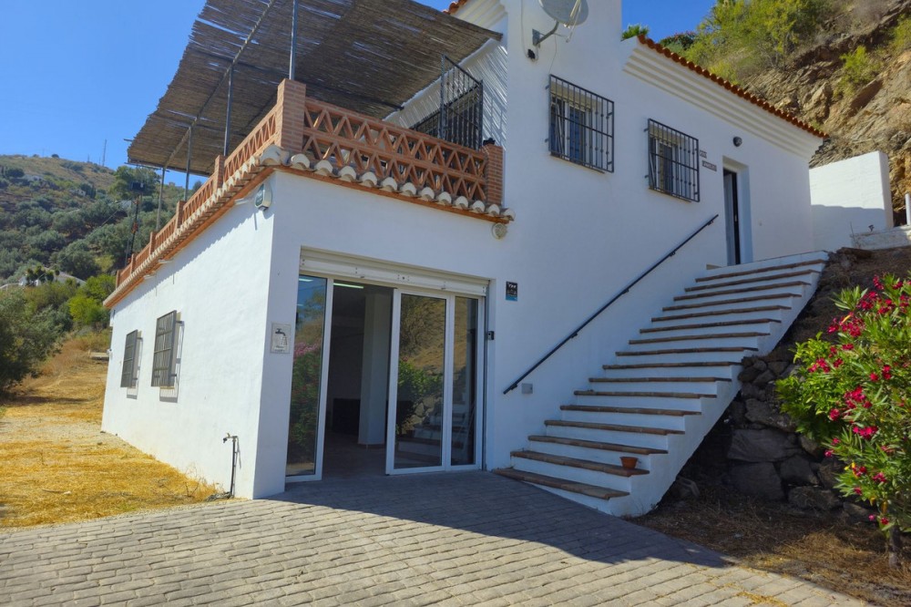 - Property Overview Nestled in the rolling hills of the Axarquía region, this beautifully maintained country home offers peace, privacy, and panoramic sea views—all within easy reach of the coast. Located just 15 minutes from Vélez-Málaga and 20 minutes from the beach at Torre del Mar, this home is ideal for those seeking tranquility without sacrificing convenience. Main Features - Bright and airy living area and open kitchen (fully fitted with oven, microwave, dishwasher) - Living area with air conditioning wood-burning stove - 3 double bedrooms with fitted air conditioning - 2 bathrooms (shower and bath) - Large terrace (42 m²) with south-facing sea views – perfect for dining or relaxing by the private pool (3x4 m) - Spacious 6,000 m² plot with great privacy and natural surroundings - 70 m² open-plan ground floor – ideal for creating a guest apartment, studio, or storage - Paved access – no rough tracks! Utilities & Systems - Supplied via 9,000-liter water tank (refilled by delivery trucks) - No mains water – eco-friendly or off-grid solutions possible - Alarm system for added peace of mind Investment Potential - With its existing layout and expandable ground floor, this property is perfect for: - A family home with rental unit - A holiday retreat with guest accommodation - Remote work or digital nomad living - Buyers looking for off-grid or self-sufficient solutions Nearby Vélez-Málaga: 15 minutes Torre del Mar (beach): 20 minutes Málaga airport: 45 minutes Hiking trails and nature all around Viewings & Contact This is a unique opportunity to own a fully equipped, move-in-ready villa with endless potential in one of Andalusia’s most beautiful regions. Contact us today to arrange a viewing or request a virtual tour.