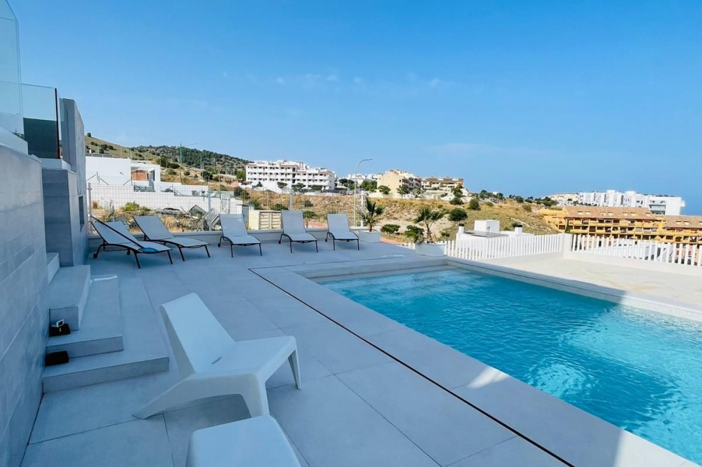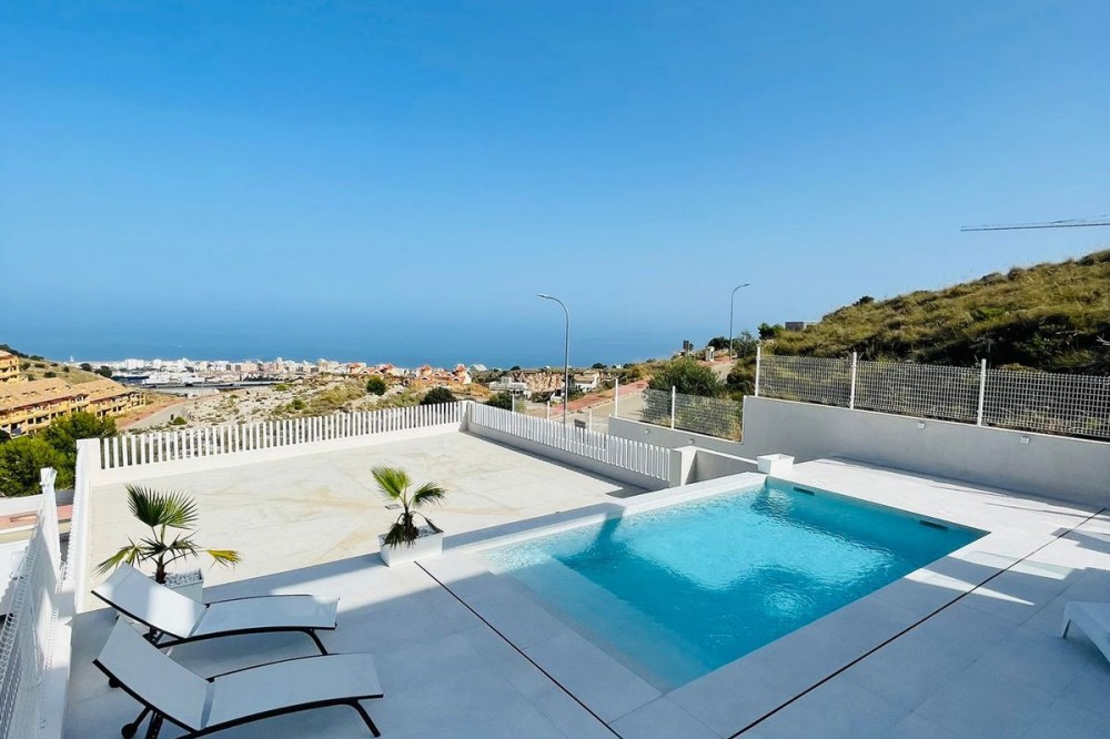 - For sale spectacular detached villa in one of the most privileged areas of Benalmádena. This magnificent property offers unobstructed views that invite relaxation and enjoyment of the surroundings, combined with a private pool ideal for the Mediterranean climate. The house has 4 spacious bedrooms, all with great light, and 5 full bathrooms, designed with high quality materials. The distribution is designed to offer comfort, privacy and functionality for both a family and those looking for a luxury second home. Featured features: •Private pool •Panoramic views •4 bedrooms •5 bathrooms •Fully equipped kitchen •Landscaped outdoor area ideal for meetings or relaxation In addition, the property has ample space for private parking for up to 4 cars, currently in the process of completion. Located in a quiet but well-connected area, this villa offers the perfect balance between privacy, nature and proximity to all essential services, beaches and access to the highway. A unique opportunity to live or invest in one of the most sought after areas of the Costa del Sol.