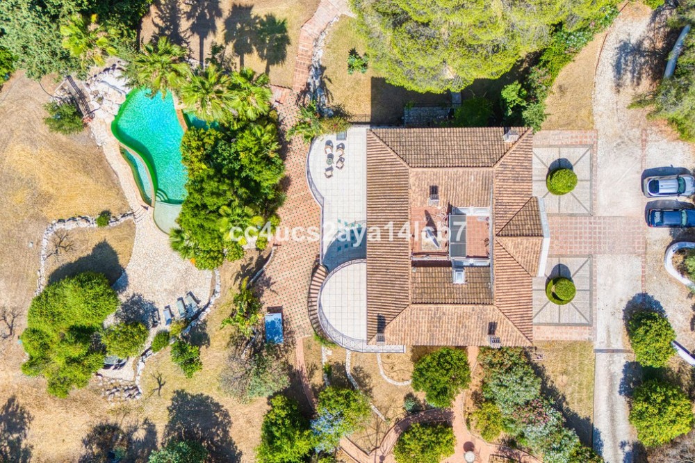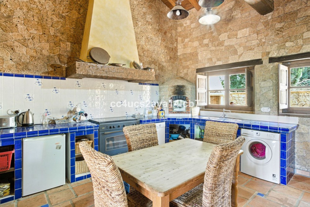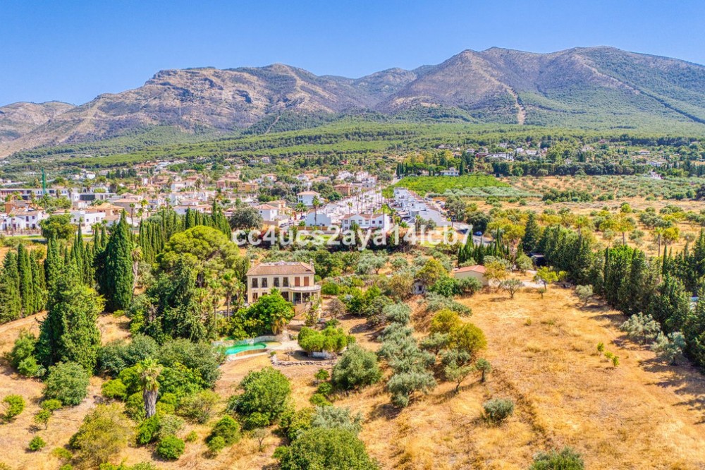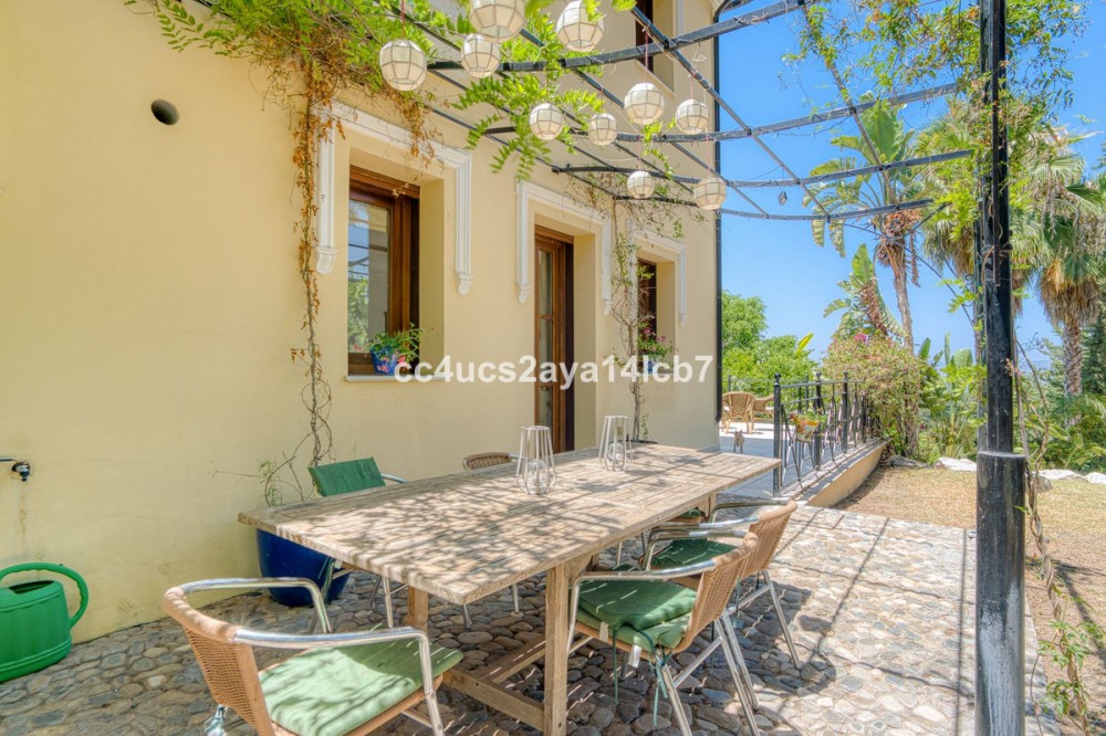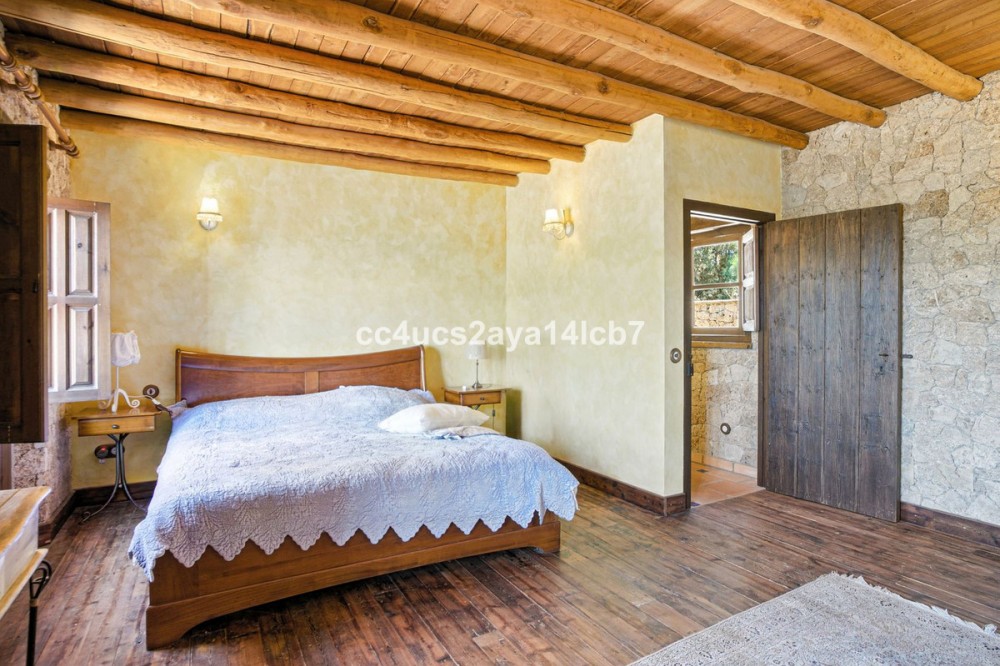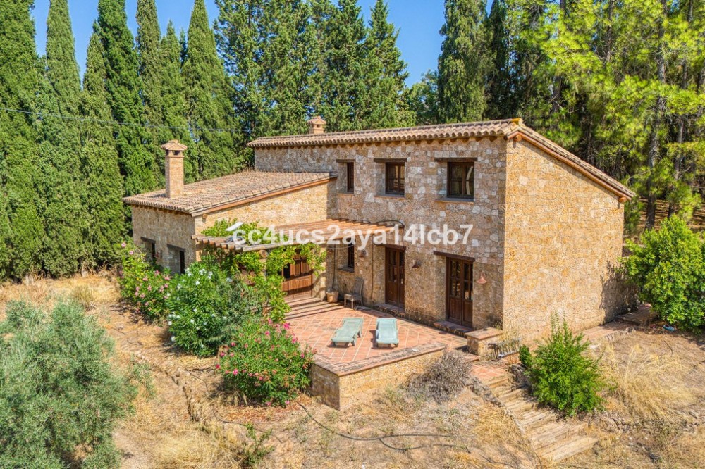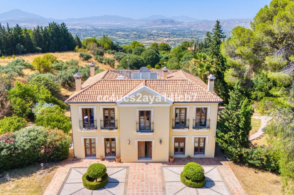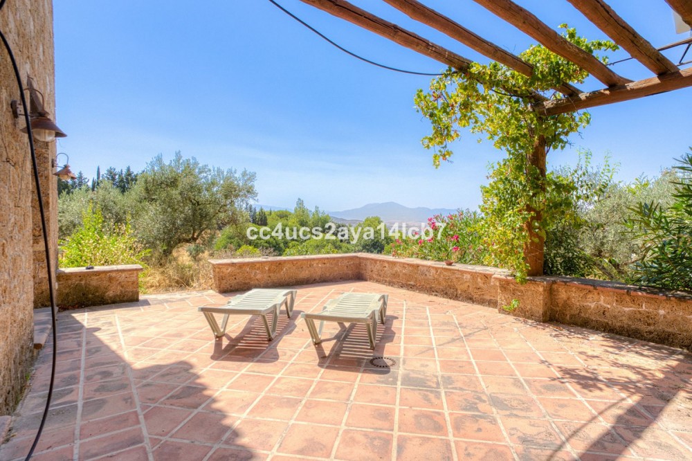 - This stunning country home in Alhaurín el Grande was built in 2005 by the current owners to an exceptionally high and personalised standard. Set on a generous plot of over 35,000m², the property is accessed via its own private driveway and enjoys breathtaking views across the surrounding countryside. The house is currently arranged as a four-bedroom, four-bathroom residence, though there is significant potential to extend or adapt the layout to suit individual needs. Upon entering the home, you are greeted by a grand entrance hall with impressively high ceilings that continue throughout the property, adding a sense of space and elegance. On the ground floor, there is a dedicated study featuring exquisite rosewood panelling reclaimed from an original English Tudor house, which could easily be transformed into an additional bedroom. The home benefits from double-glazed windows throughout and includes a guest toilet on this level. The large lounge provides an inviting living space, with the potential to be expanded further by opening it into the adjacent kitchen and private seating area. The kitchen itself is German-designed and of excellent size, featuring granite worktops, top-of-the-range Gaggenau appliances, an American-style fridge, and a convenient walk-in pantry. Ample storage space is available throughout the ground floor, which also includes a separate office. Upstairs, the first bedroom includes a mezzanine level and an en suite bathroom. The second bedroom features a private terrace with stunning views, also with a mezzanine and en suite. The master bedroom is truly expansive, offering wonderful vistas, a luxurious en suite with both bath and shower, and a vast walk-in wardrobe. This wardrobe area could also be converted into another bedroom with its own separate access if desired. The basement level of the home is exceptionally unique for a Spanish property. It includes a fully equipped bar, pool table, utility room, gym area, and a separate room with shower and toilet, which could serve as an additional bedroom. One of the standout features is the cinema room, all finished with remarkable historical touches including 500-year-old Tudor bricks and flooring salvaged from a traditional cotton mill. Adjacent to the main house is a charming guest cottage or casita, built with authentic Spanish limestone. This beautiful space includes two bedrooms, one bathroom, and a fully fitted kitchen complete with a pizza oven. The flooring is a distinctive feature, sourced from the original Guinness factory. With its peaceful setting, extensive land, and flexible layout, this one-of-a-kind property offers an ideal combination of privacy, charm, and development potential – perfect for those seeking a luxurious countryside lifestyle in Alhaurín el Grande.