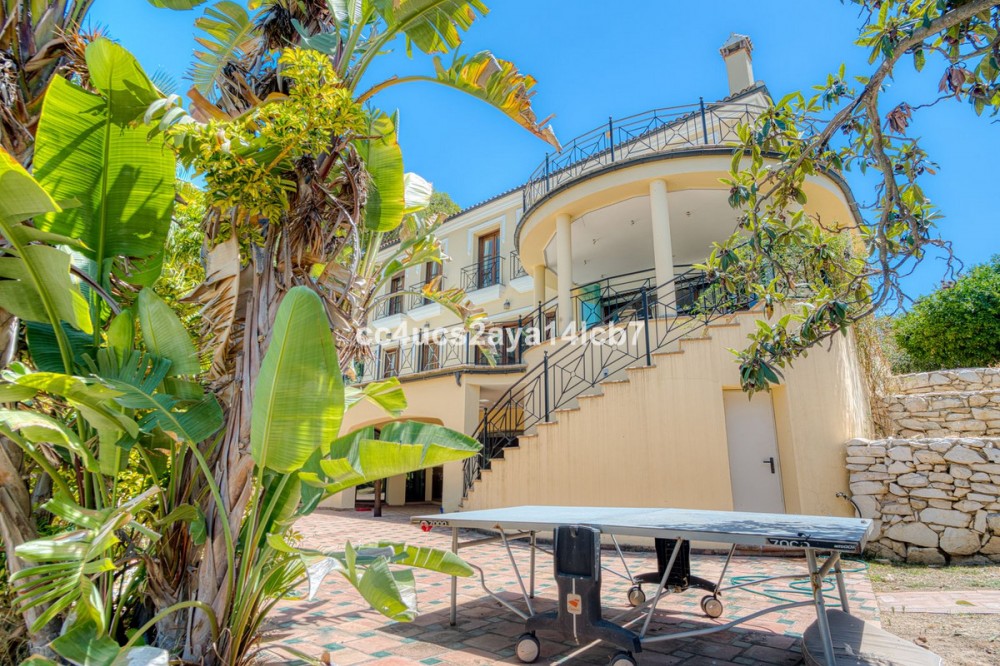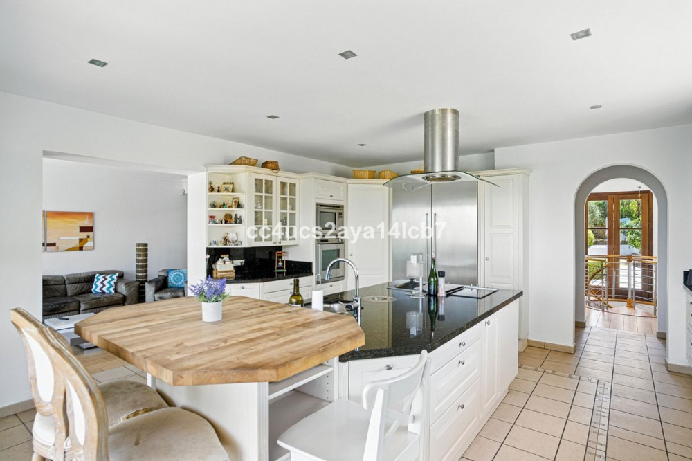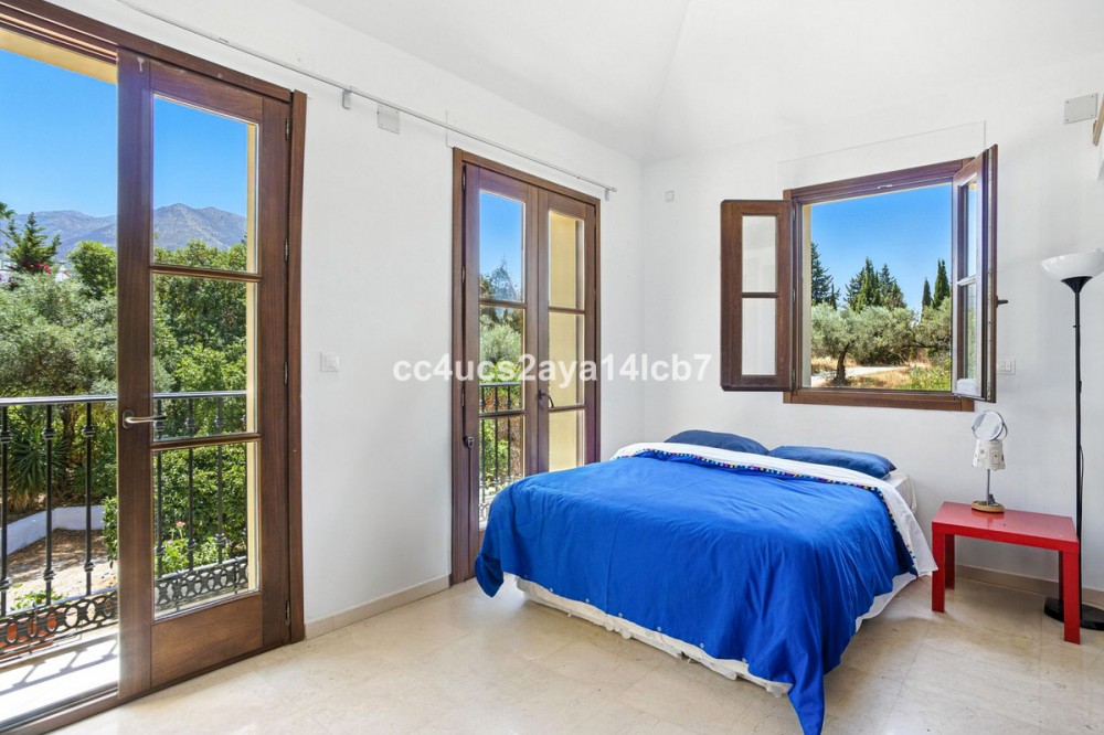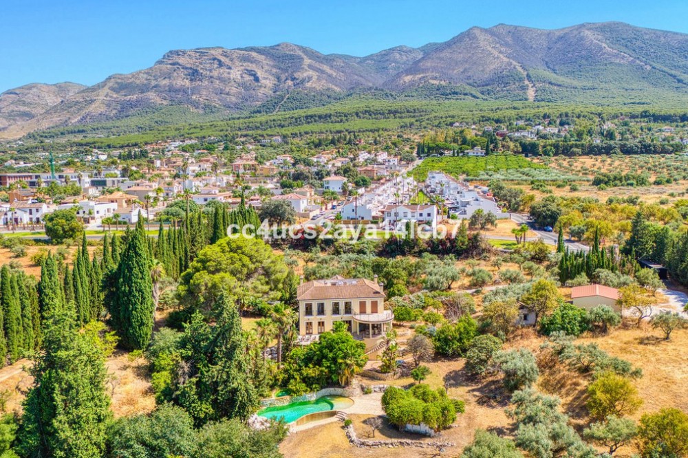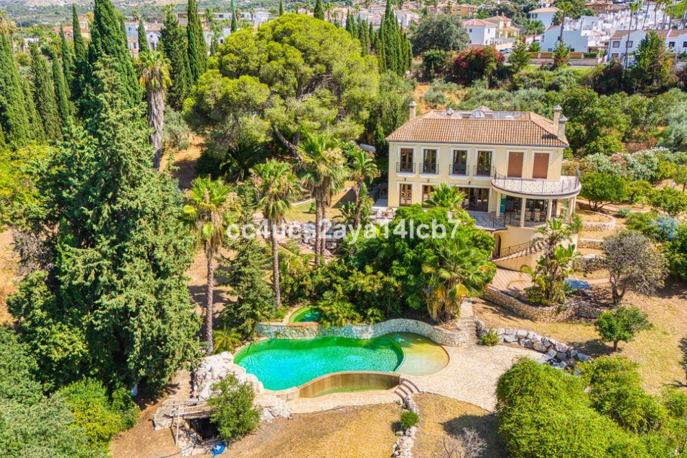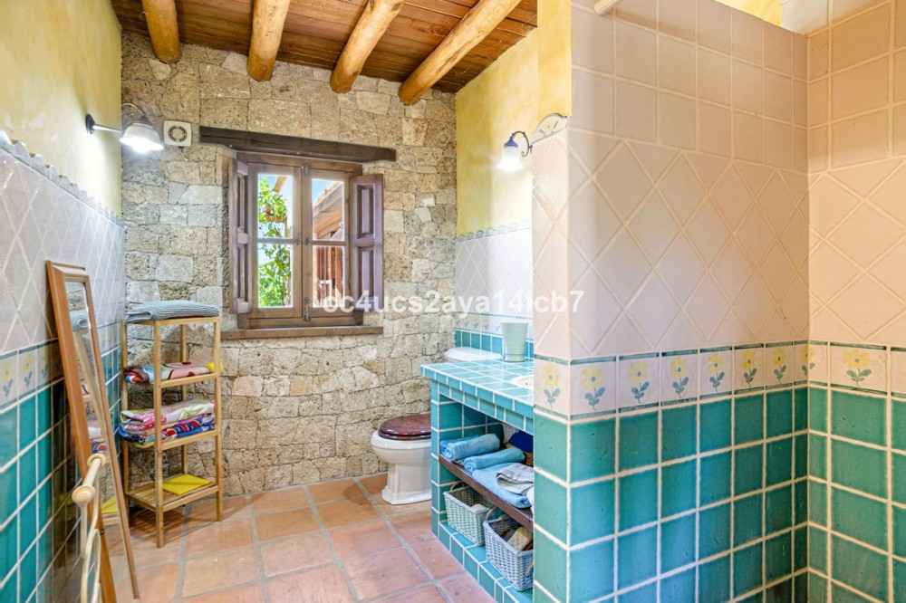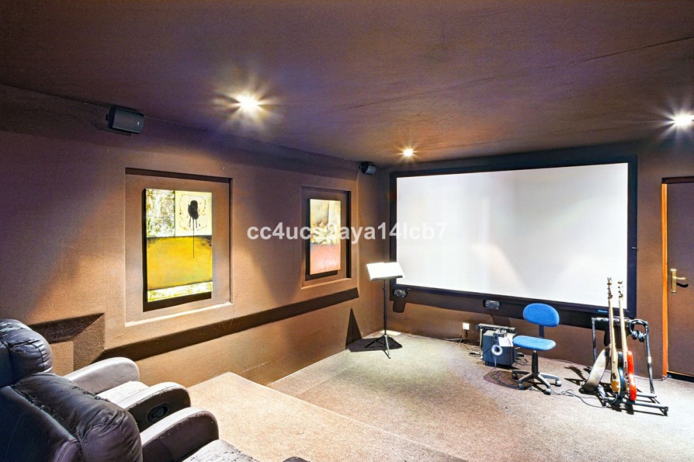 - This stunning country home in Alhaurín el Grande was built in 2005 by the current owners to an exceptionally high and personalised standard. Set on a generous plot of over 35,000m², the property is accessed via its own private driveway and enjoys breathtaking views across the surrounding countryside. The house is currently arranged as a four-bedroom, four-bathroom residence, though there is significant potential to extend or adapt the layout to suit individual needs. Upon entering the home, you are greeted by a grand entrance hall with impressively high ceilings that continue throughout the property, adding a sense of space and elegance. On the ground floor, there is a dedicated study featuring exquisite rosewood panelling reclaimed from an original English Tudor house, which could easily be transformed into an additional bedroom. The home benefits from double-glazed windows throughout and includes a guest toilet on this level. The large lounge provides an inviting living space, with the potential to be expanded further by opening it into the adjacent kitchen and private seating area. The kitchen itself is German-designed and of excellent size, featuring granite worktops, top-of-the-range Gaggenau appliances, an American-style fridge, and a convenient walk-in pantry. Ample storage space is available throughout the ground floor, which also includes a separate office. Upstairs, the first bedroom includes a mezzanine level and an en suite bathroom. The second bedroom features a private terrace with stunning views, also with a mezzanine and en suite. The master bedroom is truly expansive, offering wonderful vistas, a luxurious en suite with both bath and shower, and a vast walk-in wardrobe. This wardrobe area could also be converted into another bedroom with its own separate access if desired. The basement level of the home is exceptionally unique for a Spanish property. It includes a fully equipped bar, pool table, utility room, gym area, and a separate room with shower and toilet, which could serve as an additional bedroom. One of the standout features is the cinema room, all finished with remarkable historical touches including 500-year-old Tudor bricks and flooring salvaged from a traditional cotton mill. Adjacent to the main house is a charming guest cottage or casita, built with authentic Spanish limestone. This beautiful space includes two bedrooms, one bathroom, and a fully fitted kitchen complete with a pizza oven. The flooring is a distinctive feature, sourced from the original Guinness factory. With its peaceful setting, extensive land, and flexible layout, this one-of-a-kind property offers an ideal combination of privacy, charm, and development potential – perfect for those seeking a luxurious countryside lifestyle in Alhaurín el Grande.