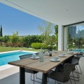 - Picture perfect? Immaculately detailed? Dream home? Yes...all of these... One of the very loveliest villas in the area of Entrerrios where we find a community of luxury homes, in divine countryside, peaceful and private. On a generous and very private plot, this luxury villa sits in its beautiful gardens, which have been lovingly manicured to ensure a Mediterranean oasis, for the enjoyment of those living in the villa. This villa is built over 314 square meters. It has the original configuration of the villas, with one bedroom and ensuite bathroom on the ground floor, and 3 bedrooms each with it's own bathroom on the first floor. The ground floor boasts a stunning open plan living area, Through the impressive wooden front door which is both wide and tall, one enters the living room area, where the immediate impact of space and light create the feeling for this fabulous la Cala Golf villa. Floor to ceiling high quality patio doors flank all of the walls and are designed to slide delightfully into the walls, allowing that the interior open plan living space blends into the perfect alfresco experience by incorporation with the south-facing terrace. This terrace is further improved with the addition of glass curtains, meaning that come rain or shine, the outdoor space of this property is to be enjoyed, with the lovely views of the green and verdant gardens and the countryside beyond. The driveway is accessed via automated gates and within the perimeter is a closed garage, an addition that was carried out by the current owners by making the carport into a more secure space for cars. Perfect if you are travelling away and want to be able to ensure that the whole property is locked up to leave. Dreaming of a sun-drenched peaceful home under the Andalusian skies? This designer villa offers tranquility and luxury all in equal measure. With 4 bedrooms and huge open plan living spaces the opportunity to enjoy as a family and socialise with friends is presented in high style. Located on the perimeter of the world-famous la Cala Golf Resort, it provides easy access to 3 Championship golf courses, a high-end luxury Spa and within a 10 minute drive to the beach. Available now for viewings ! Discover your dream home nestled in the prestigious Ur La Cala Golf area, a haven for those who appreciate the perfect blend of modern luxury and serene golf course living. This exquisite property, now available for sale, offers an unparalleled lifestyle opportunity for a discerning buyer. The development is located just a few minutes’ drive inland from the beachfront of La Cala de Mijas, and sits right above La Cala Golf in the picturesque countryside. This location is peaceful and tranquil and promotes the outdoor lifestyle that Marbella is known for.