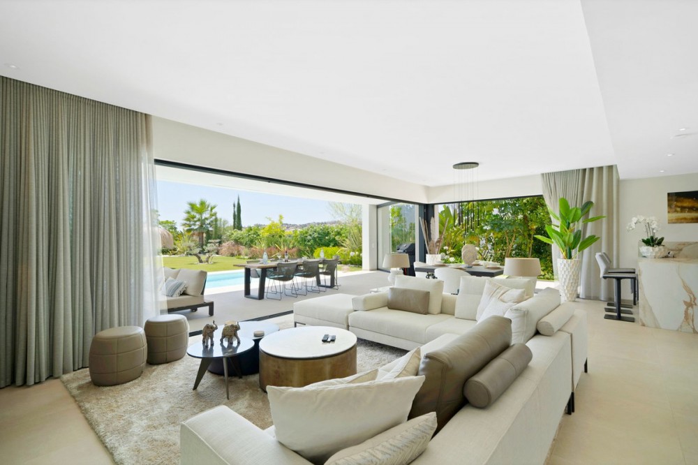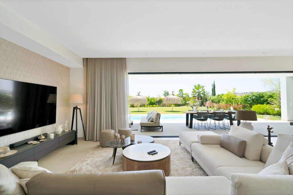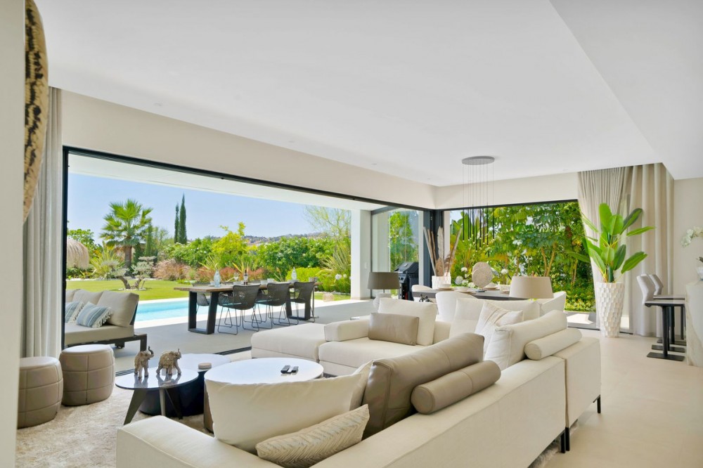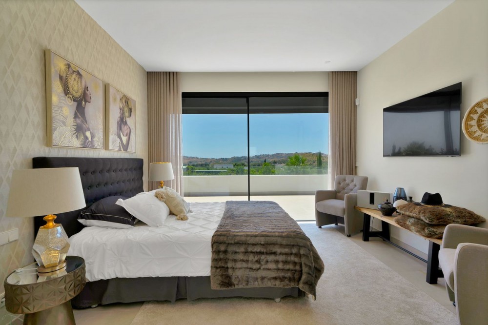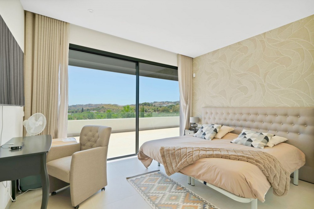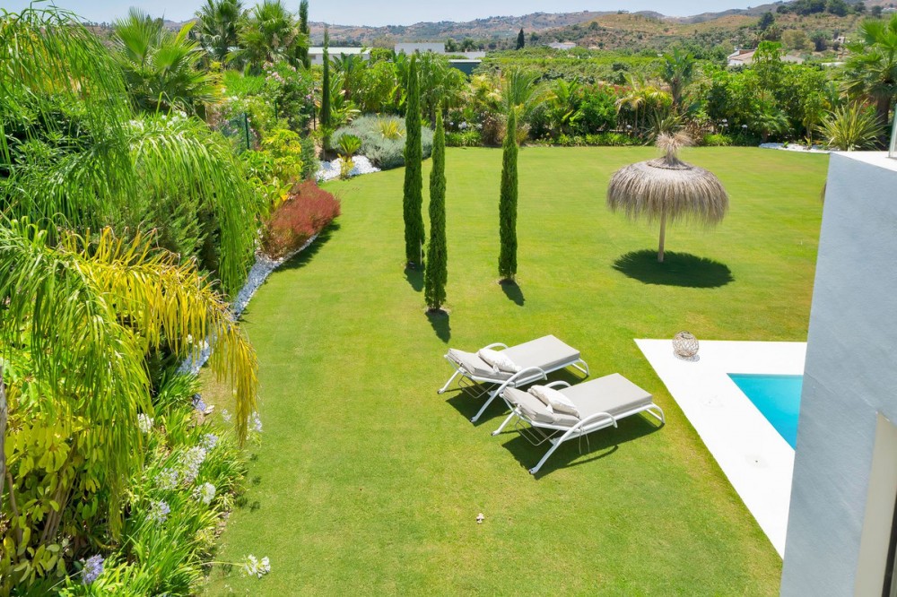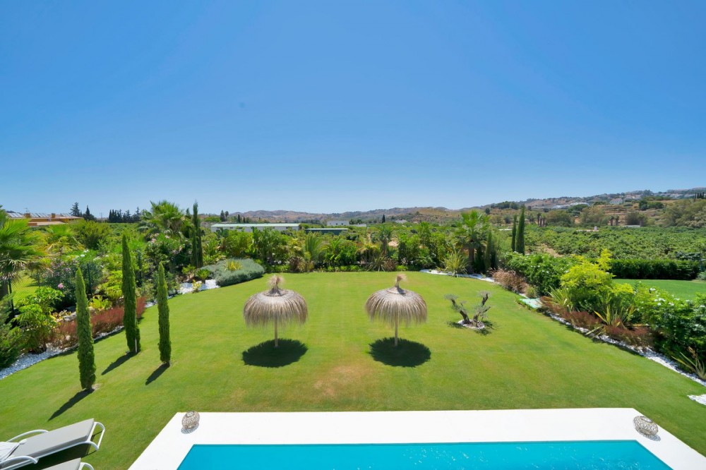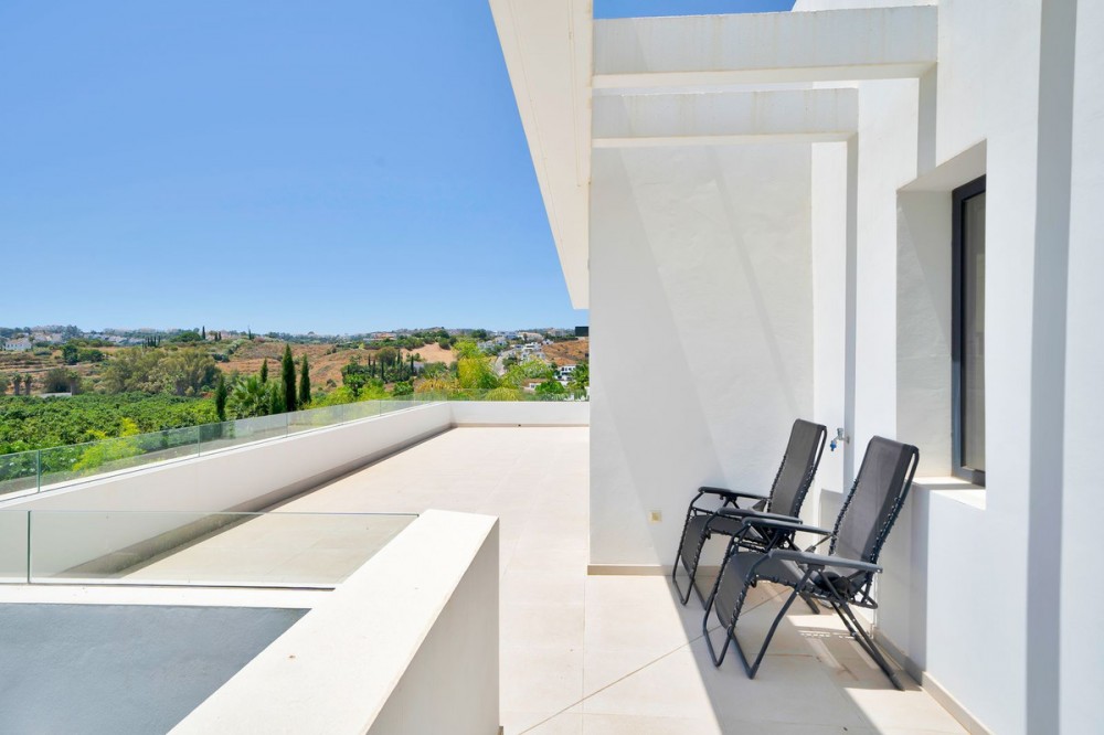 - Picture perfect? Immaculately detailed? Dream home? Yes...all of these... One of the very loveliest villas in the area of Entrerrios where we find a community of luxury homes, in divine countryside, peaceful and private. On a generous and very private plot, this luxury villa sits in its beautiful gardens, which have been lovingly manicured to ensure a Mediterranean oasis, for the enjoyment of those living in the villa. This villa is built over 314 square meters. It has the original configuration of the villas, with one bedroom and ensuite bathroom on the ground floor, and 3 bedrooms each with it's own bathroom on the first floor. The ground floor boasts a stunning open plan living area, Through the impressive wooden front door which is both wide and tall, one enters the living room area, where the immediate impact of space and light create the feeling for this fabulous la Cala Golf villa. Floor to ceiling high quality patio doors flank all of the walls and are designed to slide delightfully into the walls, allowing that the interior open plan living space blends into the perfect alfresco experience by incorporation with the south-facing terrace. This terrace is further improved with the addition of glass curtains, meaning that come rain or shine, the outdoor space of this property is to be enjoyed, with the lovely views of the green and verdant gardens and the countryside beyond. The driveway is accessed via automated gates and within the perimeter is a closed garage, an addition that was carried out by the current owners by making the carport into a more secure space for cars. Perfect if you are travelling away and want to be able to ensure that the whole property is locked up to leave. Dreaming of a sun-drenched peaceful home under the Andalusian skies? This designer villa offers tranquility and luxury all in equal measure. With 4 bedrooms and huge open plan living spaces the opportunity to enjoy as a family and socialise with friends is presented in high style. Located on the perimeter of the world-famous la Cala Golf Resort, it provides easy access to 3 Championship golf courses, a high-end luxury Spa and within a 10 minute drive to the beach. Available now for viewings ! Discover your dream home nestled in the prestigious Ur La Cala Golf area, a haven for those who appreciate the perfect blend of modern luxury and serene golf course living. This exquisite property, now available for sale, offers an unparalleled lifestyle opportunity for a discerning buyer. The development is located just a few minutes’ drive inland from the beachfront of La Cala de Mijas, and sits right above La Cala Golf in the picturesque countryside. This location is peaceful and tranquil and promotes the outdoor lifestyle that Marbella is known for.