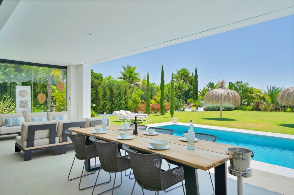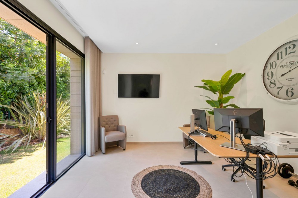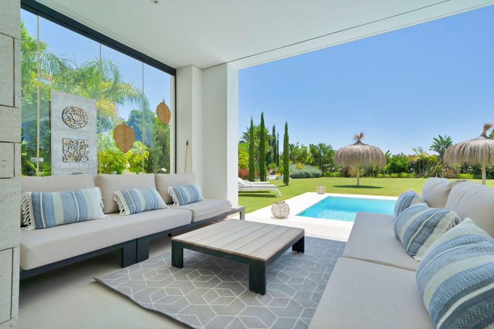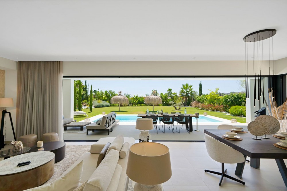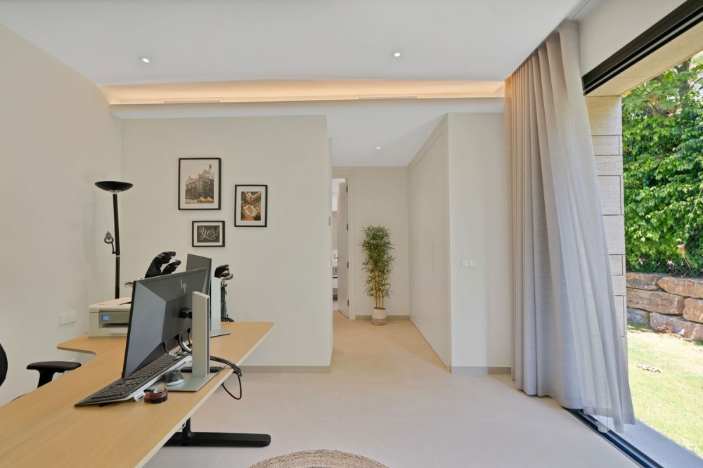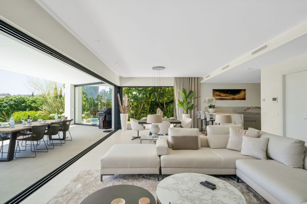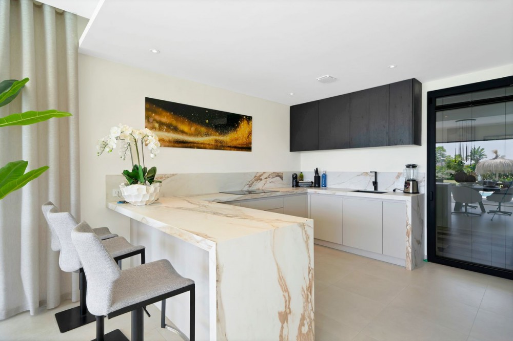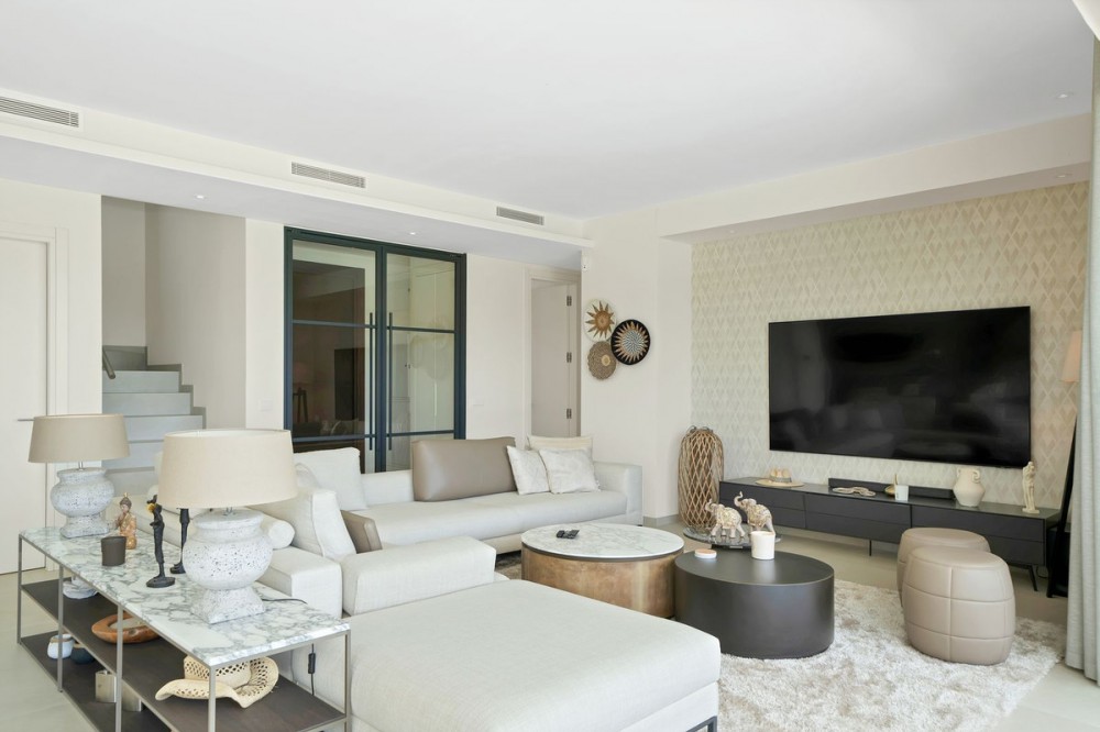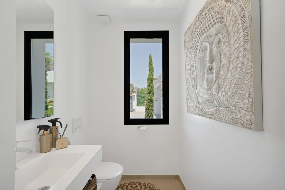- Picture perfect? Immaculately detailed? Dream home? Yes...all of these... One of the very loveliest villas in the area of Entrerrios where we find a community of luxury homes, in divine countryside, peaceful and private. On a generous and very private plot, this luxury villa sits in its beautiful gardens, which have been lovingly manicured to ensure a Mediterranean oasis, for the enjoyment of those living in the villa. This villa is built over 314 square meters. It has the original configuration of the villas, with one bedroom and ensuite bathroom on the ground floor, and 3 bedrooms each with it's own bathroom on the first floor. The ground floor boasts a stunning open plan living area, Through the impressive wooden front door which is both wide and tall, one enters the living room area, where the immediate impact of space and light create the feeling for this fabulous la Cala Golf villa. Floor to ceiling high quality patio doors flank all of the walls and are designed to slide delightfully into the walls, allowing that the interior open plan living space blends into the perfect alfresco experience by incorporation with the south-facing terrace. This terrace is further improved with the addition of glass curtains, meaning that come rain or shine, the outdoor space of this property is to be enjoyed, with the lovely views of the green and verdant gardens and the countryside beyond. The driveway is accessed via automated gates and within the perimeter is a closed garage, an addition that was carried out by the current owners by making the carport into a more secure space for cars. Perfect if you are travelling away and want to be able to ensure that the whole property is locked up to leave. Dreaming of a sun-drenched peaceful home under the Andalusian skies? This designer villa offers tranquility and luxury all in equal measure. With 4 bedrooms and huge open plan living spaces the opportunity to enjoy as a family and socialise with friends is presented in high style. Located on the perimeter of the world-famous la Cala Golf Resort, it provides easy access to 3 Championship golf courses, a high-end luxury Spa and within a 10 minute drive to the beach. Available now for viewings ! Discover your dream home nestled in the prestigious Ur La Cala Golf area, a haven for those who appreciate the perfect blend of modern luxury and serene golf course living. This exquisite property, now available for sale, offers an unparalleled lifestyle opportunity for a discerning buyer. The development is located just a few minutes’ drive inland from the beachfront of La Cala de Mijas, and sits right above La Cala Golf in the picturesque countryside. This location is peaceful and tranquil and promotes the outdoor lifestyle that Marbella is known for.