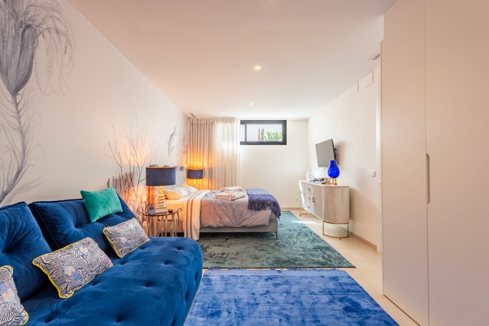 - Spectacular 7-Bedroom Designer Villa in La Finca de La Cala Welcome to one of the most exquisite villas in La Finca de La Cala — a truly unique, fully furnished 7-bedroom residence that blends cutting-edge design with luxurious comfort. This stunning property features 5 en-suite bathrooms, plus 2 stylish guest toilets for added convenience. Inside, you’ll find generous living spaces including a lounge room, a sleek private bar, fully equipped gym, and functional laundry rooms — all meticulously curated with top-of-the-line furnishings and designer décor. Step outside to enjoy your own outdoor kitchen and entertainment space, perfect for dining al fresco and hosting guests year-round in the Costa del Sol sunshine. Every detail in this villa reflects the highest standards of craftsmanship and taste, making it move-in ready from day one. Located in the prestigious gated community of La Finca de La Cala, surrounded by tranquil nature and close to La Cala Golf, this is a rare opportunity to own a signature property that stands out for its quality, style, and comfort.