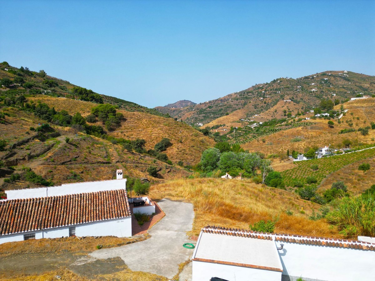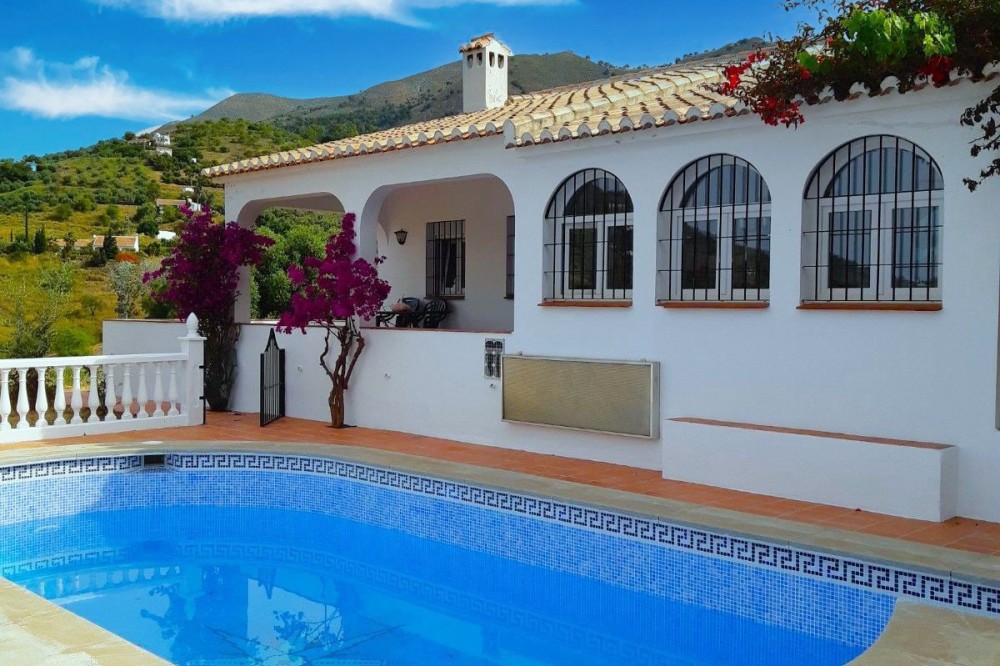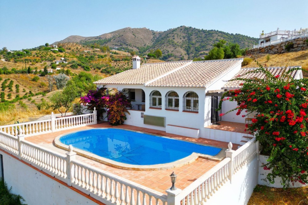• For Sale: Beautiful Villa with separate guesthouse, Between Cómpeta and Torrox, Andalusia Discover a peaceful Andalusian retreat nestled between the whitewashed villages of Cómpeta and Torrox. Set on a private plot of 8,000 square metres, this spacious villa offers sweeping views of the mountains and countryside — the perfect setting for a relaxed, comfortable lifestyle in southern Spain. The main house has a built area of 287 square metres and a usable area of 215 square metres. Inside, you'll find five generously sized bedrooms, two full bathrooms, a large, light-filled living room with a wood-burning stove, and a fully equipped kitchen that flows into a welcoming dining area. The dining room overlooks the 8 x 4 metre private swimming pool — a beautiful focal point for relaxing or entertaining. Multiple terraces surround the home, offering spaces to enjoy the sun throughout the day or find shade during the warm afternoons. Whether for outdoor meals, reading, or simply taking in the quiet, each terrace offers its own unique view and atmosphere. The property also includes an independent guesthouse of approximately 65 square metres with one double bedroom and one bathroom — ideal for hosting guests or extended family. In addition, a separate storage room provides flexible space that could easily be converted into an additional bedroom, kitchen, or office. A private garage and ample parking complete the offering, making this villa ready to move into and enjoy. Located just 15 minutes by car from the coast, and with easy access to local amenities in both Cómpeta and Torrox, this property offers both seclusion and convenience. This is a rare opportunity to purchase a spacious, well-maintained villa in one of the most desirable regions of the Axarquía — a home where you can enjoy natural beauty, privacy, and year-round comfort. For more information or to arrange a viewing, please get in touch.