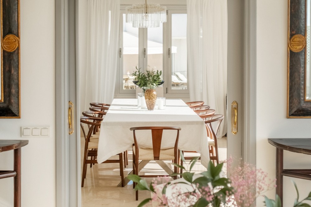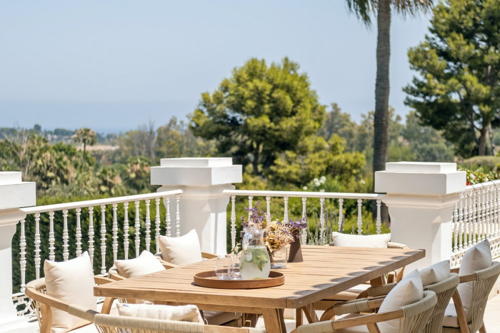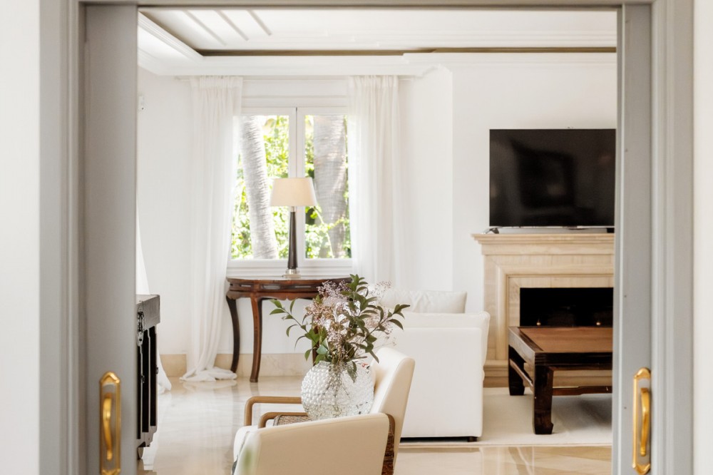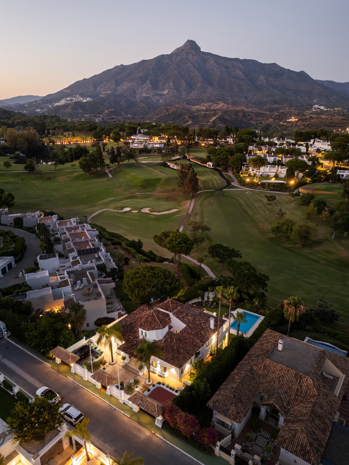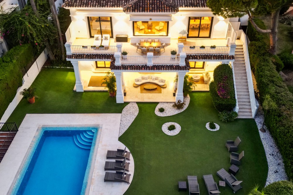 - Stunning frontline golf villa with panoramic mountain views to La Concha as well as overlooking the beautiful Aloha Golf course. The Villa is situated on a quiet cul-de-sac, just a short distance to the famous Puerto Banús marina and Aloha Gardens. The property is extremely convenient in terms of the floor plan distribution. All the main social areas such as kitchen, living room, dining room are well connected with direct accesses outside to the beautiful outdoor space that gives you a generous amount of natural sunshine throughout the home. All bedrooms are extremely good size with en suite bathrooms. All the bedrooms on the lower part of the house also have direct accesses to the gardens and pool area. This is an incredible opportunity to acquire an elegant high standard Andalusian villa in the most prime location of Nueva Andalucia with walking distance to all the amenities. This home is an ideal permanent or holiday home, don't miss this one of a kind