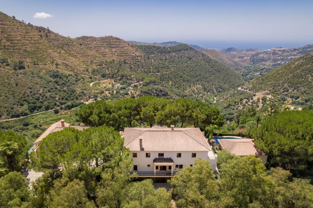 • This estate is much more than a property: it’s a statement of style, refined taste, and forward-thinking vision. A place where understated luxury blends seamlessly with the serenity of the Andalusian countryside, all while remaining within easy reach of Marbella’s sophistication and vibrant lifestyle. Ideal for those who value privacy, space, and an exceptional quality of life, surrounded by nature, comfort, and timeless beauty.Set in the privileged area of Los Cerrillares (Ojén), in an elevated position that ensures absolute privacy and sweeping open views, this Mediterranean-inspired estate with classical architecture is a one-of-a-kind retreat, embraced by majestic natural surroundings and the soothing sound of silence. From nearly every room, you can admire panoramic views of the Mediterranean Sea and the Andalusian mountains, creating an atmosphere of peace and grandeur throughout the property.Spanning over 58.000 m² of land and distributed across two plots, the estate comprises a grand main villa, a secondary villa, a separate office building, a guest apartment, a gym, several auxiliary areas, and its own private helipad, elevating the concept of residential living to an exceptional level of exclusivity rarely found on the Costa del Sol.But the estate\'s true uniqueness lies in its land and productive potential: the extensive grounds include thriving olive and orange groves, offering the opportunity to cultivate your own harvest or even establish a private vineyard, a rare privilege that merges lifestyle with legacy.Adding even more value to this extraordinary offering, the property also features a fully operational distillery and olive oil factory, complete with all the necessary machinery, infrastructure, and installations. This presents a remarkable opportunity for those interested in boutique production of traditional Andalusian products such as aguardiente and extra virgin olive oil, directly from your own estate, an authentic and potentially lucrative venture that perfectly complements the lifestyle of refined rural luxury.Main Villa: Timeless Elegance A masterpiece of classical architecture, the main villa has been designed with noble materials and exquisite attention to detail. Natural stone, solid wood doors, handcrafted finishes, and modern technology coexist in perfect harmony. The home features underfloor heating throughout, an integrated sound system, ambient lighting with dimmers, and a water softener.It offers five spacious and light-filled en-suite bedrooms, including a luxurious master suite with two dressing rooms and two private bathrooms. The interior layout is completed with formal reception rooms, a dining room, an elegant library, home cinema, games room with private bar, wine cellar, pantry, laundry room, and a closed garage with space for several vehicles.Outside, a spectacular wrap-around terrace encircles the home, offering breathtaking views at every turn. The meticulously landscaped gardens feature a large swimming pool surrounded by mature vegetation, centuries-old olive trees, and fruit trees, creating an ideal setting for relaxation and outdoor entertaining.Complementary SpacesThe estate includes a fully equipped office building, ideal for working in privacy and comfort, as well as an independent guest apartment with two bedrooms, kitchen, living-dining room, and a private terrace. Additional facilities include a gym and various storage areas.Secondary Villa: Rustic Charm and PrivacySet on a separate plot of over 5,000 m², this 188 m² villa offers a peaceful retreat with a personality all its own. Featuring high ceilings, a fireplace, main living room, sitting area, separate kitchen, two bedrooms, two bathrooms, its own private pool and terrace, it’s ideal as guest accommodation, a separate residence, or staff housing.An Unmatched LifestyleThis estate is not just a residence, it is a way of life. A place where every sunrise over the sea and every sunset behind the mountains reminds you of the privilege of living in such an extraordinary setting. A space designed to unwind, create, connect, and fully enjoy life, surrounded by natural beauty, absolute comfort, and an enduring sense of elegance.For those who understand that true luxury is not about ostentation, but about harmony, privacy, and authenticity, this property is simply one of a kind.The abbreviated information document is available to you. Expenses: Taxes (ITP or VAT+AJD) + Notarial and registration expenses.ALA