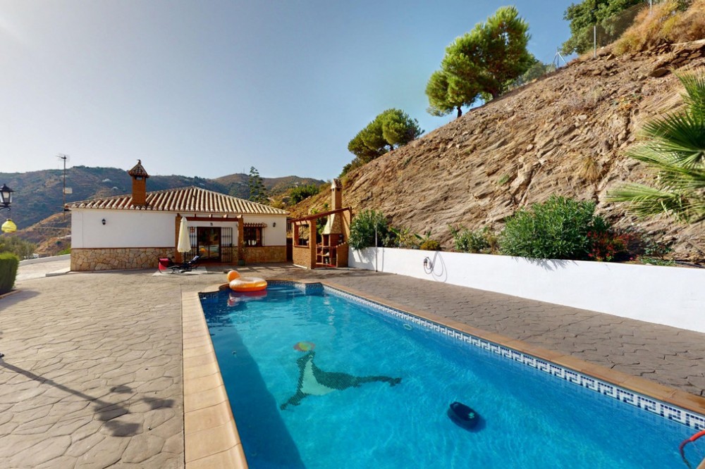 - Nestled in the beautiful hills of Arenas, this charming property offers breathtaking views of both the mountains and the Mediterranean Sea. Its the perfect retreat for those seeking peace, nature, and the Andalusian lifestyle. The house features three comfortable bedrooms and a well-kept bathroom. The kitchen is fully equipped, offering everything you need to prepare delicious meals while enjoying the stunning surroundings. A spacious terrace invites you to enjoy outdoor living, sunbathing, and dining with a view. The private pool offers refreshing relief during hot summer days. Air conditioning ensures a pleasant indoor climate year-round. Set on a large plot of land with mature olive trees, this property offers plenty of space, privacy, and rustic charm. The combination of sea views, tranquillity and nature makes this home a unique hideaway. We are pleased to be able to present this dream property to you soon, either personally or via virtual viewing. Because this world is unique - just like our Axarquía. In Andalusia. On the Costa del Sol. Here, on the sunny side of life...