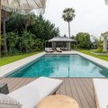 - This Villa is a captivating Mediterranean residence ideally situated in the sought-after enclave of Atalaya, just 400 metres from the prestigious Atalaya Golf Club. Drawing inspiration from classic Andalusian architecture while embracing contemporary elegance, this home is a harmonious blend of style and comfort. The villa is set within beautifully landscaped grounds that envelop the property, creating a private oasis of calm. Mature trees and vibrant greenery enhance seclusion, while a sparkling private pool offers the perfect spot to relax under the Spanish sun. Generous outdoor areas make it ideal for entertaining in style. Inside, the atmosphere is warm and inviting, with modern finishes softened by natural wood accents. The open-plan kitchen and dining area flow seamlessly, with the kitchen fitted with high-quality Siemens appliances for those who love to cook. The living space opens directly onto a charming chill-out terrace, perfect for unwinding with friends or enjoying a quiet evening. Every corner of the home has been designed with comfort and hospitality in mind. Interior & exterior furniture by KOA Interior. The villa boasts two master suites, each designed as a private retreat with expansive windows that fill the rooms with natural light and frame serene garden views. Both master bathrooms offer a luxurious spa-like experience, ensuring comfort and indulgence for owners and guests alike. A sweeping private driveway leads to a secure underground garage with generous space for multiple vehicles. From here, you can access an expansive basement level, uniquely designed with natural light filtering through — a rare feature in homes of this style. This lower level is a true blank canvas, offering endless possibilities to create a home cinema, wellness area, gym, entertainment suite, wine cellar, or private art studio, allowing the future owner to place their own stamp on the property. Also offers an exceptional combination of exclusivity, elegance, and proximity to some of the best golf, dining, and leisure options on the Costa del Sol. This is modern Mediterranean living at its finest.