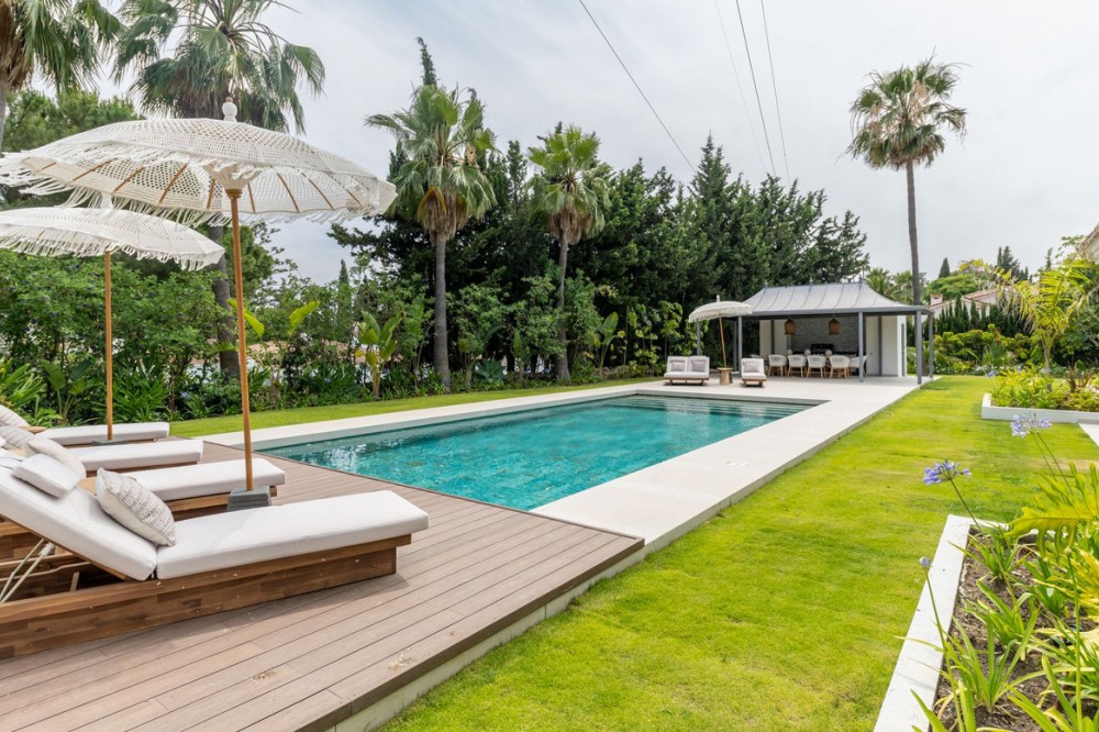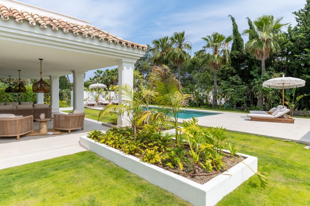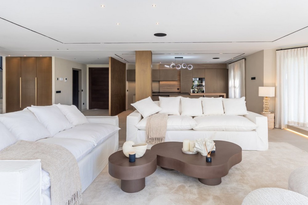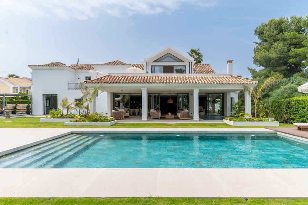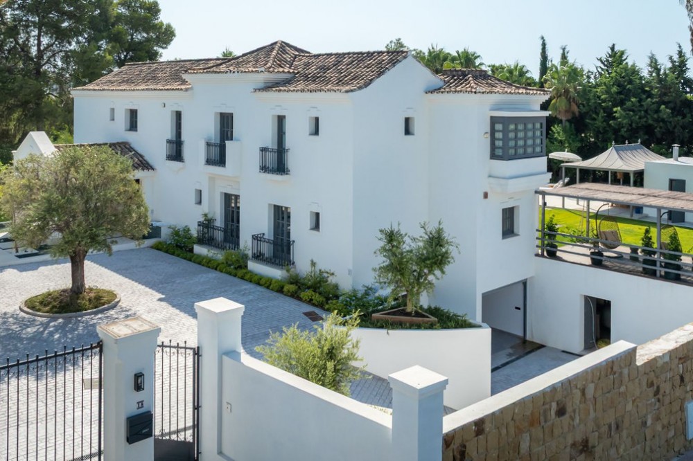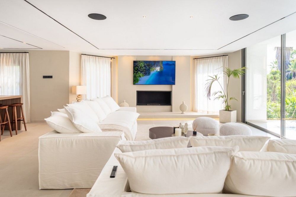 - This Villa is a captivating Mediterranean residence ideally situated in the sought-after enclave of Atalaya, just 400 metres from the prestigious Atalaya Golf Club. Drawing inspiration from classic Andalusian architecture while embracing contemporary elegance, this home is a harmonious blend of style and comfort. The villa is set within beautifully landscaped grounds that envelop the property, creating a private oasis of calm. Mature trees and vibrant greenery enhance seclusion, while a sparkling private pool offers the perfect spot to relax under the Spanish sun. Generous outdoor areas make it ideal for entertaining in style. Inside, the atmosphere is warm and inviting, with modern finishes softened by natural wood accents. The open-plan kitchen and dining area flow seamlessly, with the kitchen fitted with high-quality Siemens appliances for those who love to cook. The living space opens directly onto a charming chill-out terrace, perfect for unwinding with friends or enjoying a quiet evening. Every corner of the home has been designed with comfort and hospitality in mind. Interior & exterior furniture by KOA Interior. The villa boasts two master suites, each designed as a private retreat with expansive windows that fill the rooms with natural light and frame serene garden views. Both master bathrooms offer a luxurious spa-like experience, ensuring comfort and indulgence for owners and guests alike. A sweeping private driveway leads to a secure underground garage with generous space for multiple vehicles. From here, you can access an expansive basement level, uniquely designed with natural light filtering through — a rare feature in homes of this style. This lower level is a true blank canvas, offering endless possibilities to create a home cinema, wellness area, gym, entertainment suite, wine cellar, or private art studio, allowing the future owner to place their own stamp on the property. Also offers an exceptional combination of exclusivity, elegance, and proximity to some of the best golf, dining, and leisure options on the Costa del Sol. This is modern Mediterranean living at its finest.