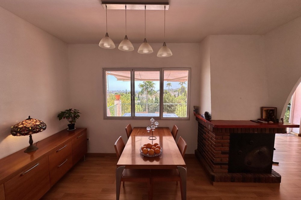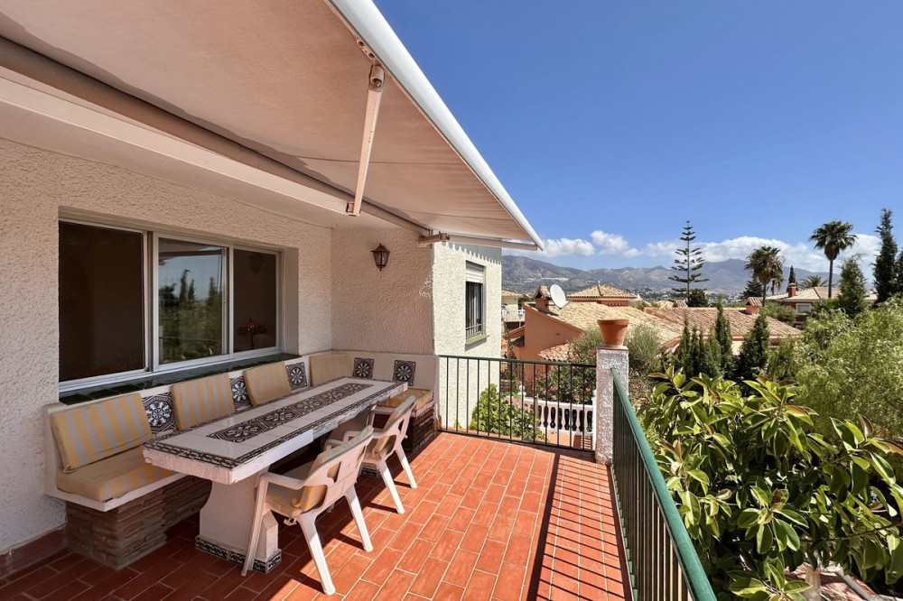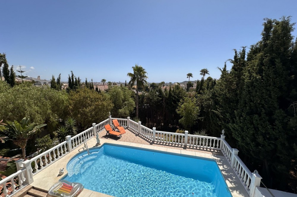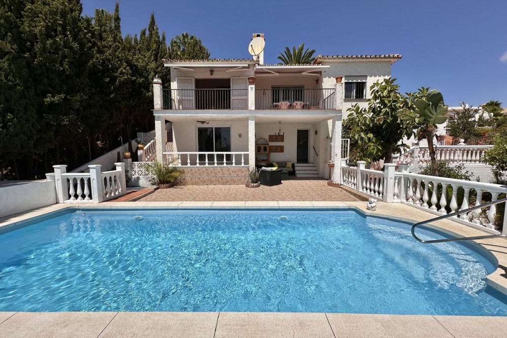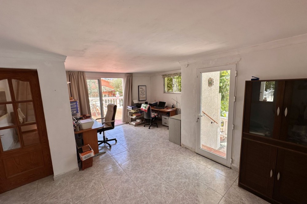 - Stunning 4-Bedroom 3-bathroom Villa for Sale in Cerros del Águila This spacious and versatile 4-bedroom, 3-bathroom villa is located in the peaceful and sought-after area of Cerros del Águila. Whether you're searching for a perfect family home or a lucrative investment opportunity, this property has it all. Property Features: 4 Bedrooms | 3 Bathrooms Two en-suite bathrooms One shared bathroom between two bedrooms Street-Level Entrance Private open parking space for two vehicles. Main Floor: Upon entry, you'll find two generously sized bedrooms, one shared bathroom, a spacious living area combined with a dining room, and access to a 21m² terrace. The terrace is partially covered—perfect for enjoying breakfast with stunning views of the pool and surrounding mountains. Lower Level: Features the master bedroom with en-suite bathroom and views over the pool, plus an additional en-suite bedroom. A lounge area, currently used as an office, sits between the two bedrooms and opens directly onto the pool area, a covered terrace, and a sun-drenched uncovered terrace that leads to a large plot filled with a variety of fruit trees. Additional Highlights: Possibility to convert the property into two separate homes thanks to dual entrances Potential to install a second kitchen on the lower level Ideal layout for families or rental income Peaceful mountain and garden views Just a 10-minute walk to the largest park in Andalucía While the villa is already stunning, it does benefit from some renovation—offering a chance to personalize and add value. Don’t miss out on this unique opportunity. Secure your viewing today!