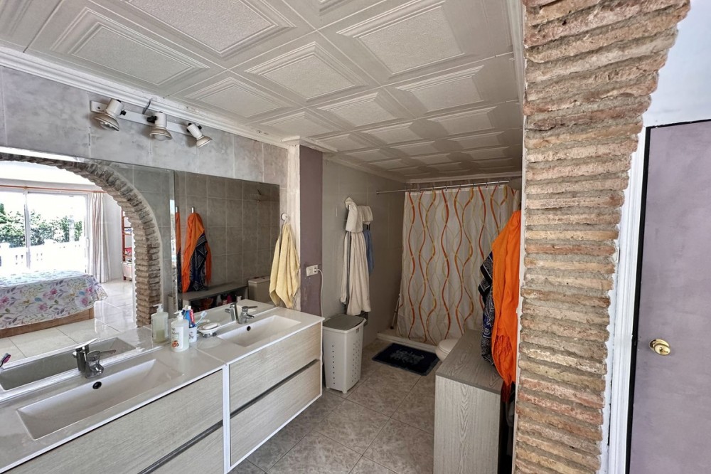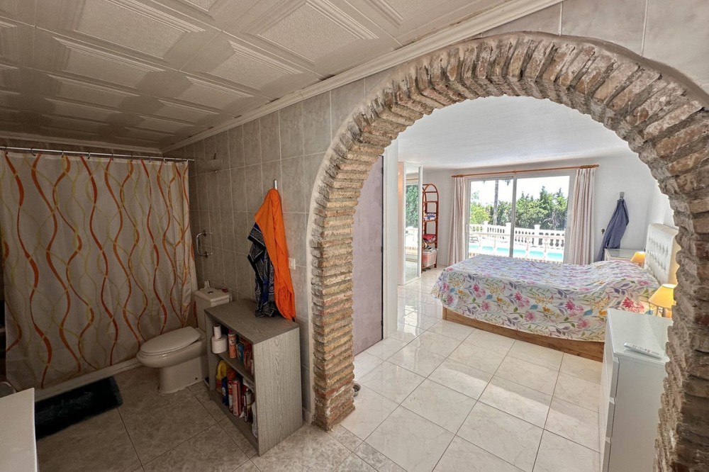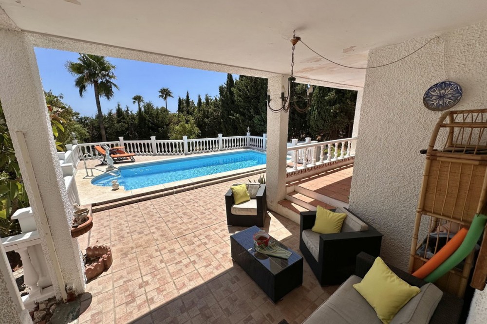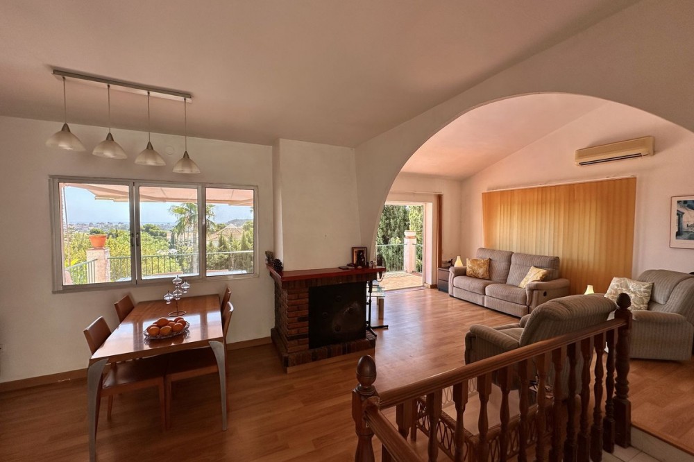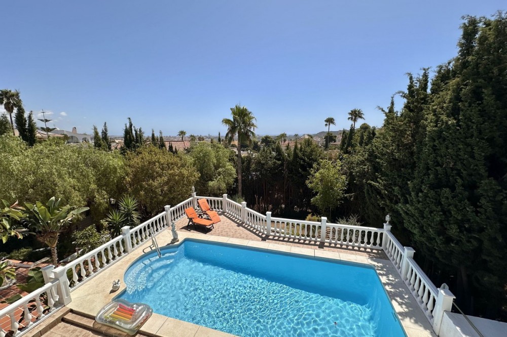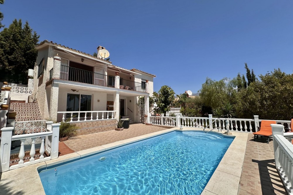 - Stunning 4-Bedroom 3-bathroom Villa for Sale in Cerros del Águila This spacious and versatile 4-bedroom, 3-bathroom villa is located in the peaceful and sought-after area of Cerros del Águila. Whether you're searching for a perfect family home or a lucrative investment opportunity, this property has it all. Property Features: 4 Bedrooms | 3 Bathrooms Two en-suite bathrooms One shared bathroom between two bedrooms Street-Level Entrance Private open parking space for two vehicles. Main Floor: Upon entry, you'll find two generously sized bedrooms, one shared bathroom, a spacious living area combined with a dining room, and access to a 21m² terrace. The terrace is partially covered—perfect for enjoying breakfast with stunning views of the pool and surrounding mountains. Lower Level: Features the master bedroom with en-suite bathroom and views over the pool, plus an additional en-suite bedroom. A lounge area, currently used as an office, sits between the two bedrooms and opens directly onto the pool area, a covered terrace, and a sun-drenched uncovered terrace that leads to a large plot filled with a variety of fruit trees. Additional Highlights: Possibility to convert the property into two separate homes thanks to dual entrances Potential to install a second kitchen on the lower level Ideal layout for families or rental income Peaceful mountain and garden views Just a 10-minute walk to the largest park in Andalucía While the villa is already stunning, it does benefit from some renovation—offering a chance to personalize and add value. Don’t miss out on this unique opportunity. Secure your viewing today!