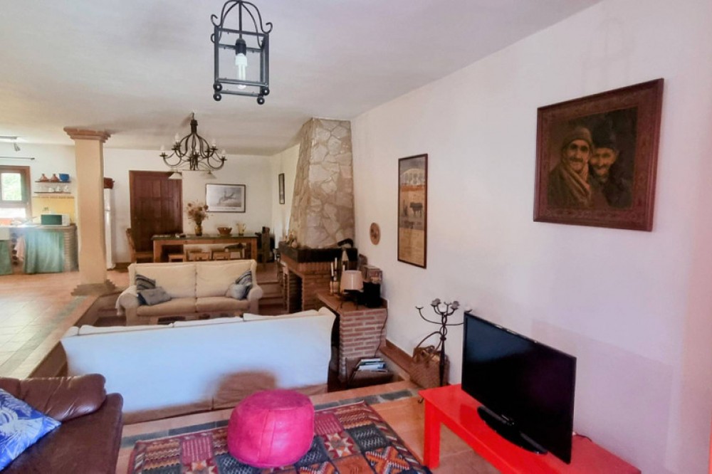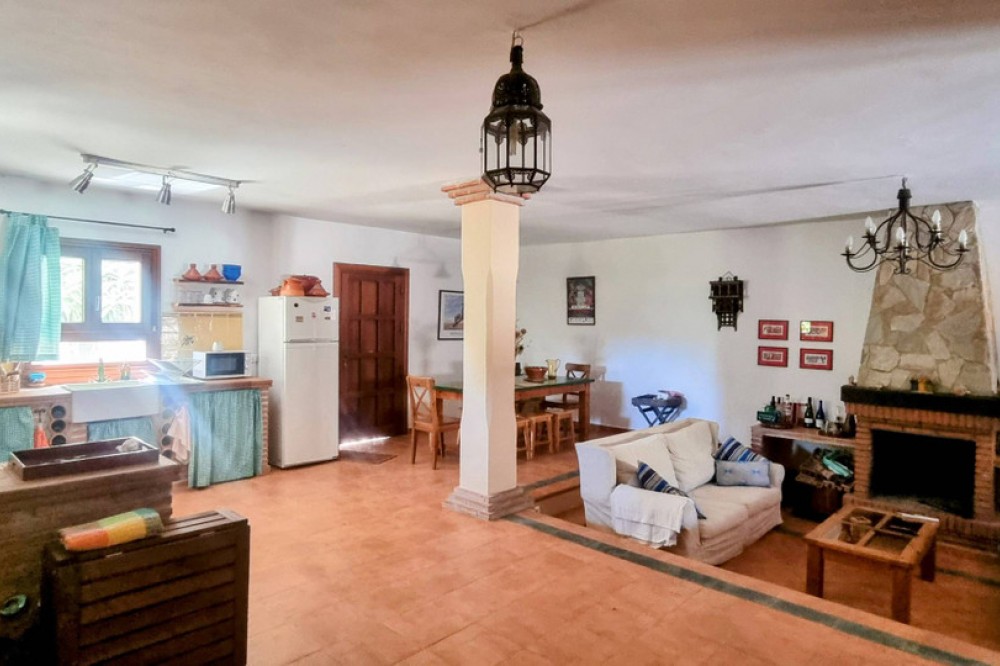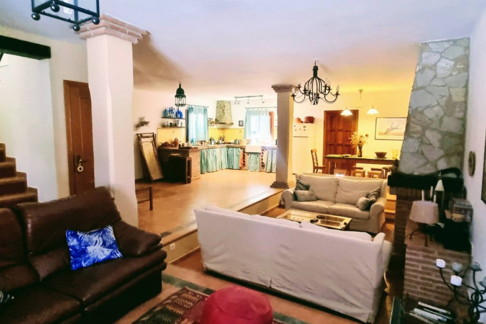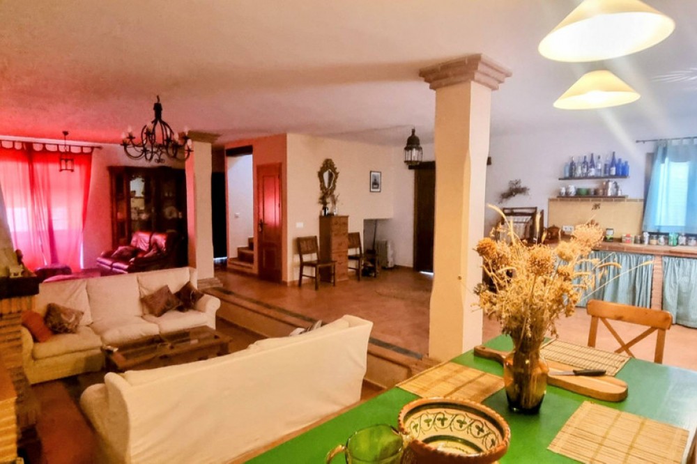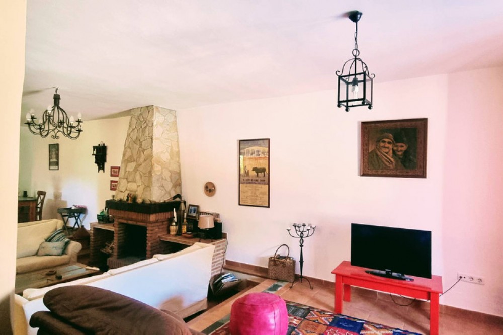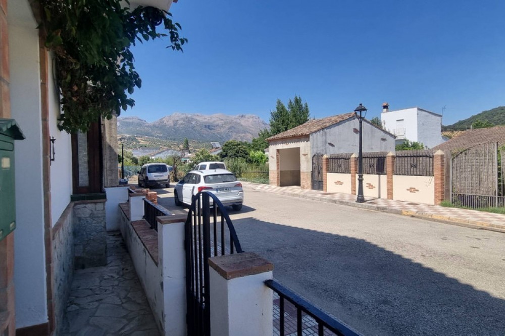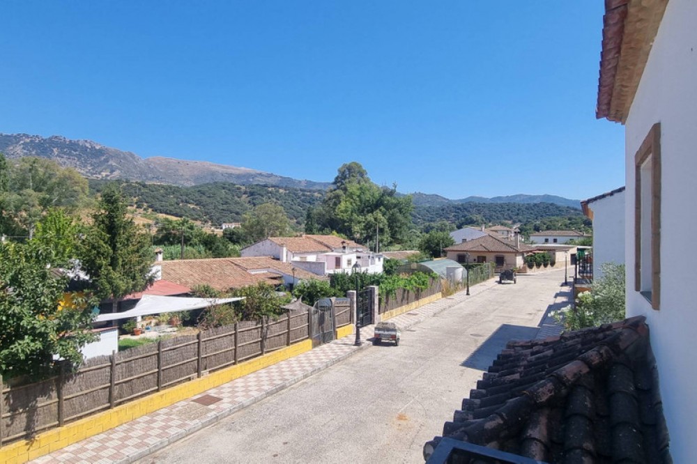 - Picturesque semi-detached village home with a garden and panoramic views—refined, sunlit, and perfectly placed. Built as a modern new home just 20 years ago, this charming two-storey villa marries spacious open-plan living with the warm character of an Andalucian country house. Located within the municipality in Cortes de la Frontera, in the riverside hamlet of Cañada del Real Tesoro (Estación de Cortes), the property sits on a tranquil cul-de-sac, two streets back from the River Guardario. As you approach, a stylish little iron gate opens to a pretty front porch and the welcoming front door. Inside, a bright, airy hallway leads you into a generous open-plan living area. Here, a clever sunken lounge sits at the heart of the space, with a cozy fireplace anchoring the room. Behind the lounge, the expansive open-plan kitchen delivers a true Andalucian farmhouse feel, with a dining zone flowing seamlessly from the kitchen. This flexible living space is ideal for family life, entertaining, and everyday living.A guest WC is thoughtfully located off the living area for convenience. On the ground level, two exterior doors extend the living outside. One set of double wooden doors opens onto a vine-clad terrace that runs the length of the house, giving access to a generous 100m2 garden planted with olive trees and fruit trees. Stunning views from the garden to the countryside . The second wooden door sits beside the kitchen and opens to a small courtyard, from which there is a dedicated storeroom housing the laundry and general tools/bikes, plus an external drying area and a covered wood store. A wide staircase leads to the first floor. The master suite is a sanctuary in itself, boasting an en-suite bathroom and a Juliet balcony with sweeping, panoramic views of the Serrania de Ronda countryside. Two more substantial double bedrooms share a large family bathroom. At the end of the hall, an open-plan, flexible room is currently used as a fourth bedroom or a home office, offering superb adaptability for your lifestyle. All rooms have wonderful views The house and garden are fully enclosed by pristine white walls, ensuring privacy and a clean, stylish backdrop. At the far end of the garden, a gate provides easy access for a small car. The garden is flat and easily capable of accommodating a pool—a 7m x 4m pool would fit comfortably, and, as an urban plot, planning permission would be straightforward. Sustainability and low running costs are a genuine feature here. Two years ago, the current owners invested in sophisticated solar PV panels and batteries, at a cost of €18,000. The property now runs entirely on its own electricity supply, delivering very low running costs and ample power to heat a pool if you choose to add one in the future. Property Highlights Include Own electricity supply (solar panels) Double Glazed windows throughout the house Solid wood exterior door Excellent internet connection Walking distance to shops and a bar/restaurant Close to Schools Train station in the village River access nearby and numerous hiking routes from the village Private enclosed garden Excellent condition This is a beautifully balanced home that combines modern comfort with village charm, all in a location that and feels wonderfully connected to nature yet convenient for daily life. Arrange a viewing today and discover the appeal of Cortes de la Frontera’s riverside hamlet living.