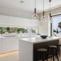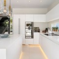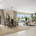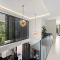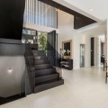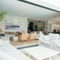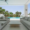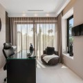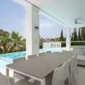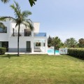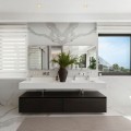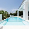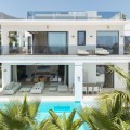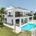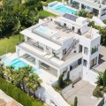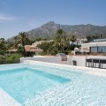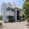 - A stunning modern luxury Villa in Nagueles, Marbella Golden Mile offering easy access to Marbella centre and just 10 minutes’ drive from Puerto Banus. The property is built to the highest specifications with great attention to detail and using top quality materials and installations throughout. The villa is distributed over three levels all connected with an elevator including basement area, plus a spacious solarium roof terrace. The basement level includes private garage with turntable mechanism, entertainment area with TV lounge, a full-size bar, lounge; good sized staff/guest bedroom with en-suite bathroom, laundry room, guest WC and technical room. The entrance level comprises of entrance hall, guest WC, one bedroom suite, spacious lounge, an office, dining area and open plan kitchen which opens out onto the large terrace leading to the private pool. The master bedroom is located on the first floor and includes a large en-suite bathroom and dressing room. This floor also includes 2 additional bedroom suites. The rooftop terrace of 98m² offers panoramic sea and mountain views and is ideal for outdoor entertaining and also includes a chill-out area, bathroom and storage.