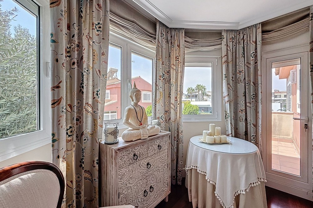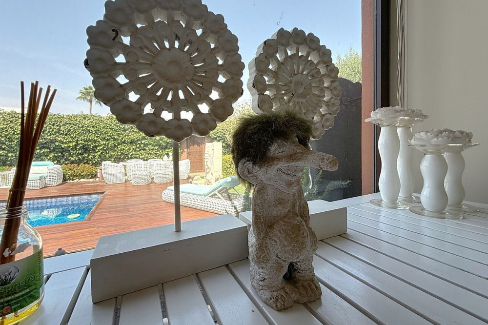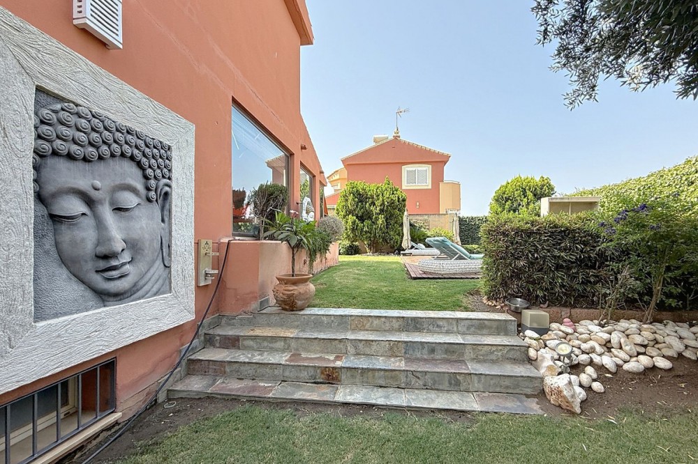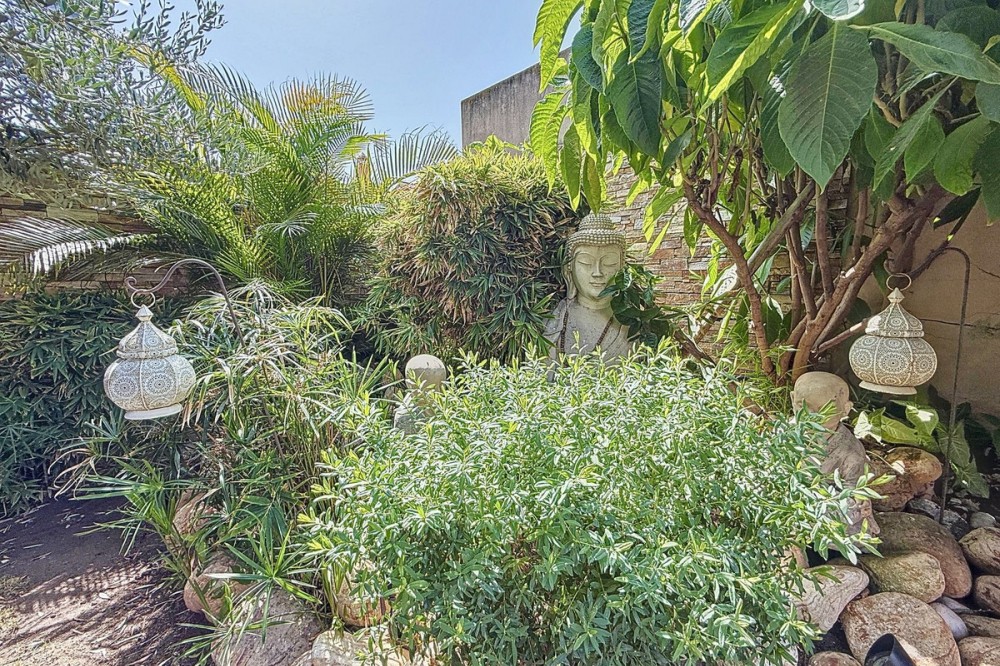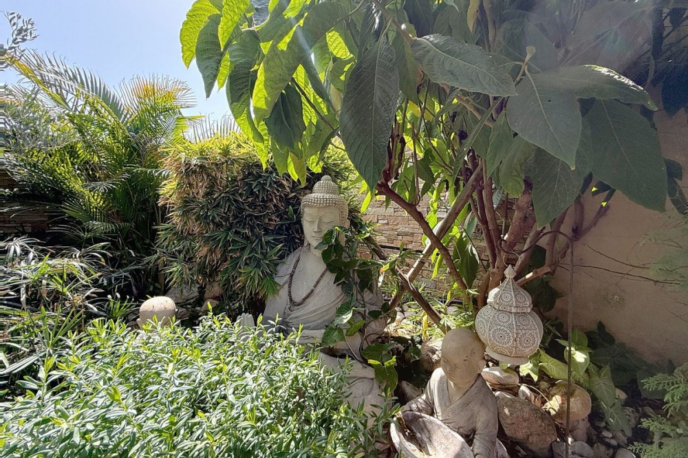 • Torre del Mar – Casa con Alma This house is truly unique – different from anything else you will find in Torre del Mar. An individual villa of 260 m² set on a 505 m² plot, located in one of the town’s most exclusive residential areas, just ten minutes walking from the sea, the promenade and all daily amenities. From the moment you step through the private gate, a sense of serenity surrounds you. The gardens are a world of their own: an ancient olive tree as guardian, Buddha accents creating a spiritual calm, shaded terraces and intimate lounge corners that invite pure relaxation. At the heart lies a 6x4 m pool with jacuzzi, embraced by natural greenery and the soothing shade of mature trees – a rare oasis in this privileged location. The villa welcomes you with a bright entrance hall and a separate guest toilet, before unfolding into elegant living spaces bathed in natural light. The lounge and dining area, with its inviting fireplace and graceful arched windows has views onto the beautiful gardens. The modern kitchen, finished with ceramic wood-look flooring, combines contemporary style with practical ease of maintenance. Upstairs, the night area offers three spacious bedrooms, including a tranquil master suite with en-suite bathroom. A second guest room with its own full bathroom, and a third bedroom currently used as an office, ensure comfort for family and visitors. An adjoining room – now used as dressing – can easily be converted into a fourth bedroom or private retreat. On the lower level, the villa reveals a vast garage with capacity for 3–4 cars, offering space not only for vehicles but also for storage or the creation of additional guest accommodation. Here you also find the independent water deposit system: the property is directly connected to the municipal network, but benefits from its own deposito to ensure a constant, reliable flow. The entire garden is equipped with an automatic electrical irrigation system with timer, making maintenance effortless. Key Features • 260 m² built on 505 m² private plot • 3–4 bedrooms, 3 bathrooms • Elegant living spaces with fireplace & arched windows • Modern kitchen with ceramic wood-look flooring • Soulful landscaped gardens with ancient olive tree & Buddha accents • Pool (6x4 m) with jacuzzi & shaded terraces • Vast garage for 3–4 cars with independent water deposit system • Automatic irrigation system with timer • Fully renovated, move-in ready • Exclusive residential area, walking distance to sea & amenities Lifestyle & Location Torre del Mar is one of the most vibrant towns on the Costa del Sol, known for its long sandy beaches, lively promenade, beach clubs, and weekly market. Málaga Airport is only 35 minutes away, making it ideal for international buyers. Surrounded by new developments, this villa stands out with its unique soul and enduring value. This is not just a property – it is a sanctuary, a family home, a spiritual retreat, and an investment opportunity in one of Andalusia’s most desirable coastal locations.