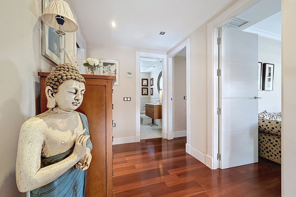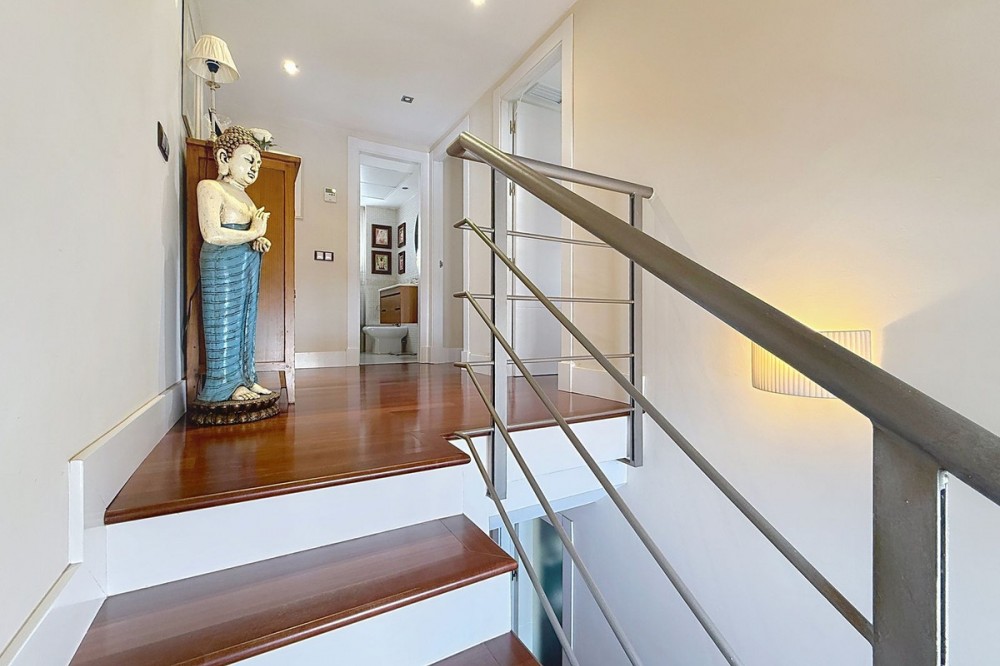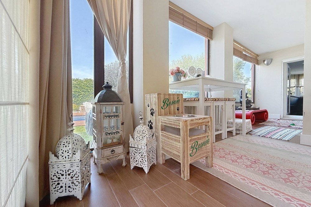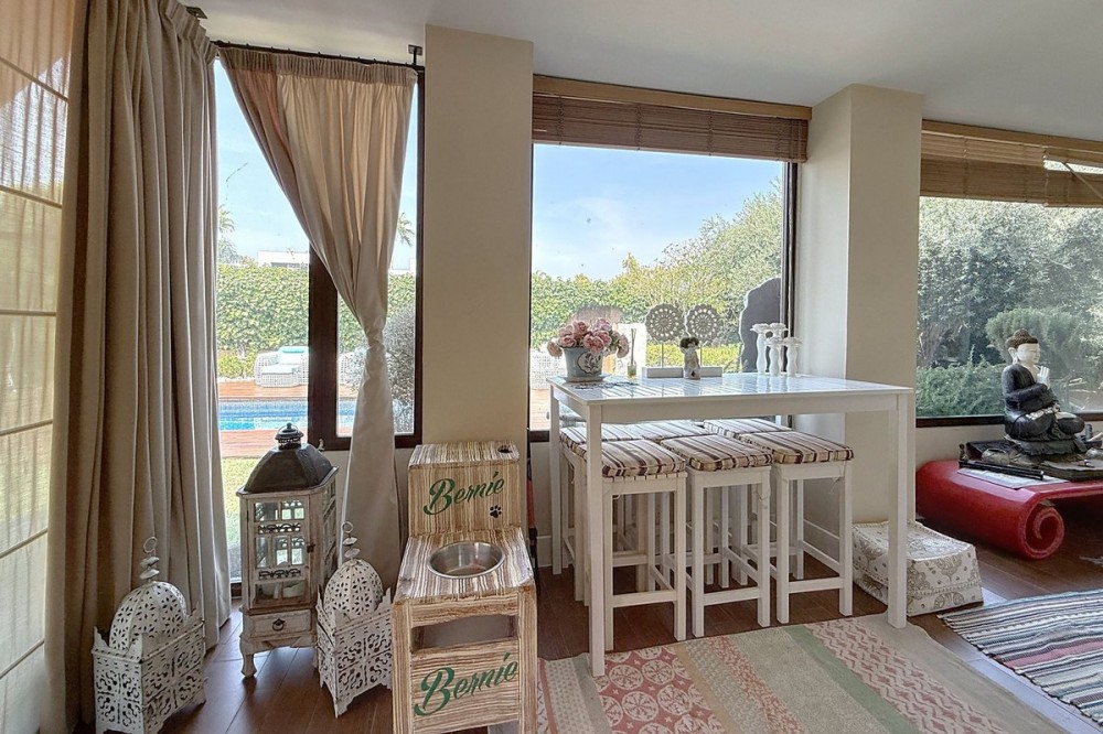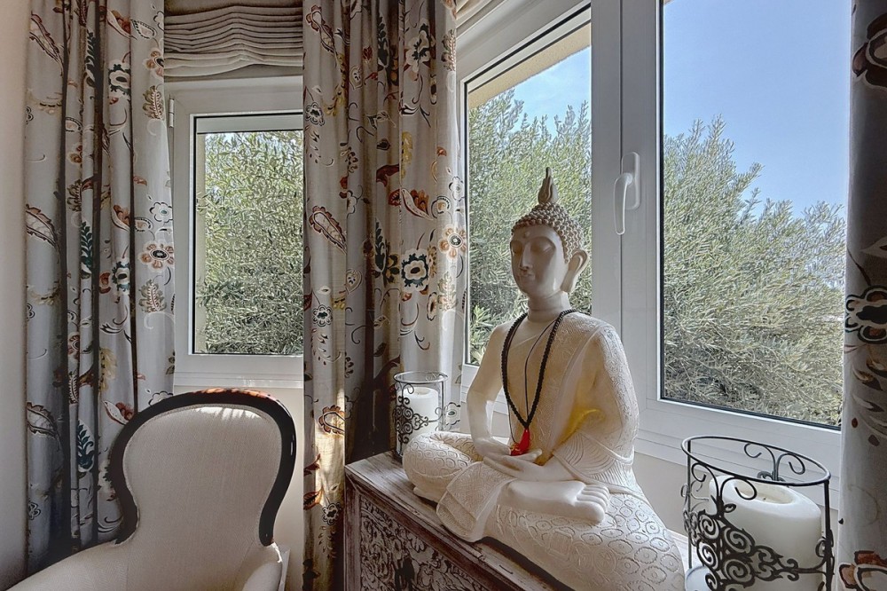 • Torre del Mar – Casa con Alma This house is truly unique – different from anything else you will find in Torre del Mar. An individual villa of 260 m² set on a 505 m² plot, located in one of the town’s most exclusive residential areas, just ten minutes walking from the sea, the promenade and all daily amenities. From the moment you step through the private gate, a sense of serenity surrounds you. The gardens are a world of their own: an ancient olive tree as guardian, Buddha accents creating a spiritual calm, shaded terraces and intimate lounge corners that invite pure relaxation. At the heart lies a 6x4 m pool with jacuzzi, embraced by natural greenery and the soothing shade of mature trees – a rare oasis in this privileged location. The villa welcomes you with a bright entrance hall and a separate guest toilet, before unfolding into elegant living spaces bathed in natural light. The lounge and dining area, with its inviting fireplace and graceful arched windows has views onto the beautiful gardens. The modern kitchen, finished with ceramic wood-look flooring, combines contemporary style with practical ease of maintenance. Upstairs, the night area offers three spacious bedrooms, including a tranquil master suite with en-suite bathroom. A second guest room with its own full bathroom, and a third bedroom currently used as an office, ensure comfort for family and visitors. An adjoining room – now used as dressing – can easily be converted into a fourth bedroom or private retreat. On the lower level, the villa reveals a vast garage with capacity for 3–4 cars, offering space not only for vehicles but also for storage or the creation of additional guest accommodation. Here you also find the independent water deposit system: the property is directly connected to the municipal network, but benefits from its own deposito to ensure a constant, reliable flow. The entire garden is equipped with an automatic electrical irrigation system with timer, making maintenance effortless. Key Features • 260 m² built on 505 m² private plot • 3–4 bedrooms, 3 bathrooms • Elegant living spaces with fireplace & arched windows • Modern kitchen with ceramic wood-look flooring • Soulful landscaped gardens with ancient olive tree & Buddha accents • Pool (6x4 m) with jacuzzi & shaded terraces • Vast garage for 3–4 cars with independent water deposit system • Automatic irrigation system with timer • Fully renovated, move-in ready • Exclusive residential area, walking distance to sea & amenities Lifestyle & Location Torre del Mar is one of the most vibrant towns on the Costa del Sol, known for its long sandy beaches, lively promenade, beach clubs, and weekly market. Málaga Airport is only 35 minutes away, making it ideal for international buyers. Surrounded by new developments, this villa stands out with its unique soul and enduring value. This is not just a property – it is a sanctuary, a family home, a spiritual retreat, and an investment opportunity in one of Andalusia’s most desirable coastal locations.