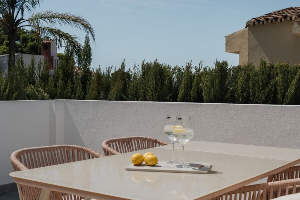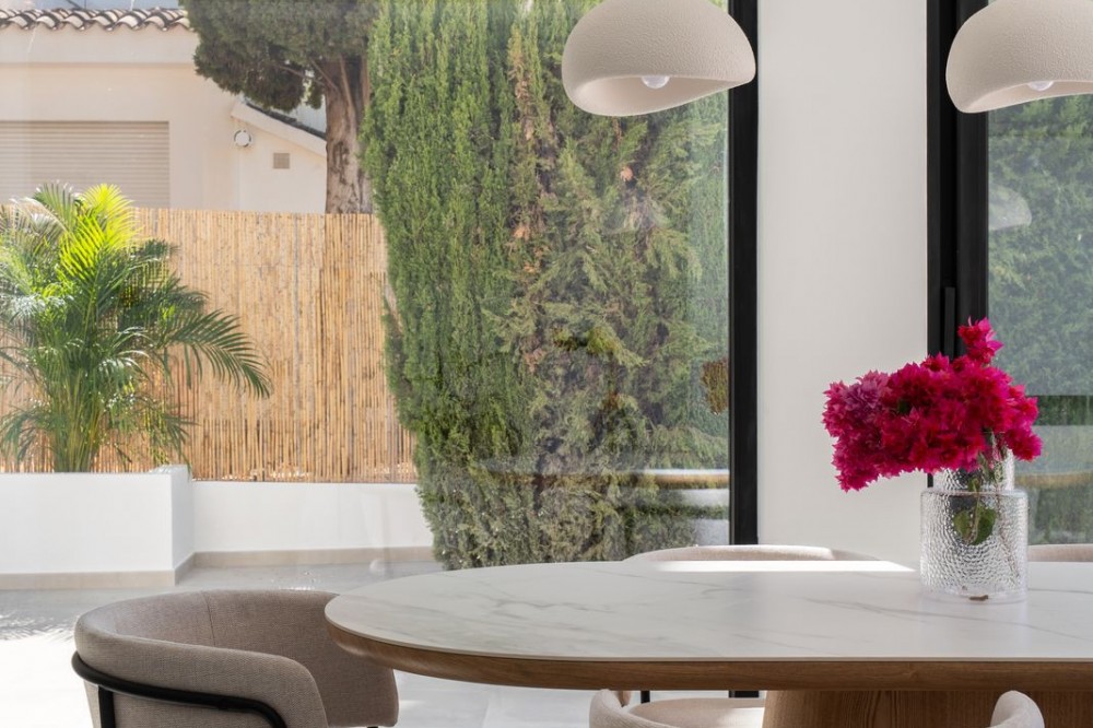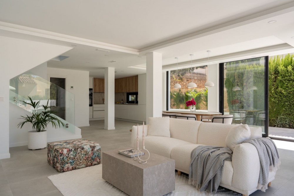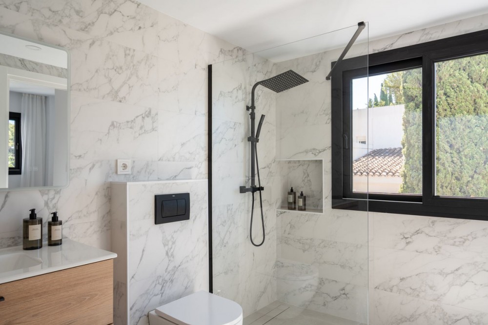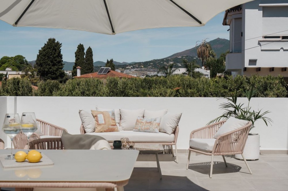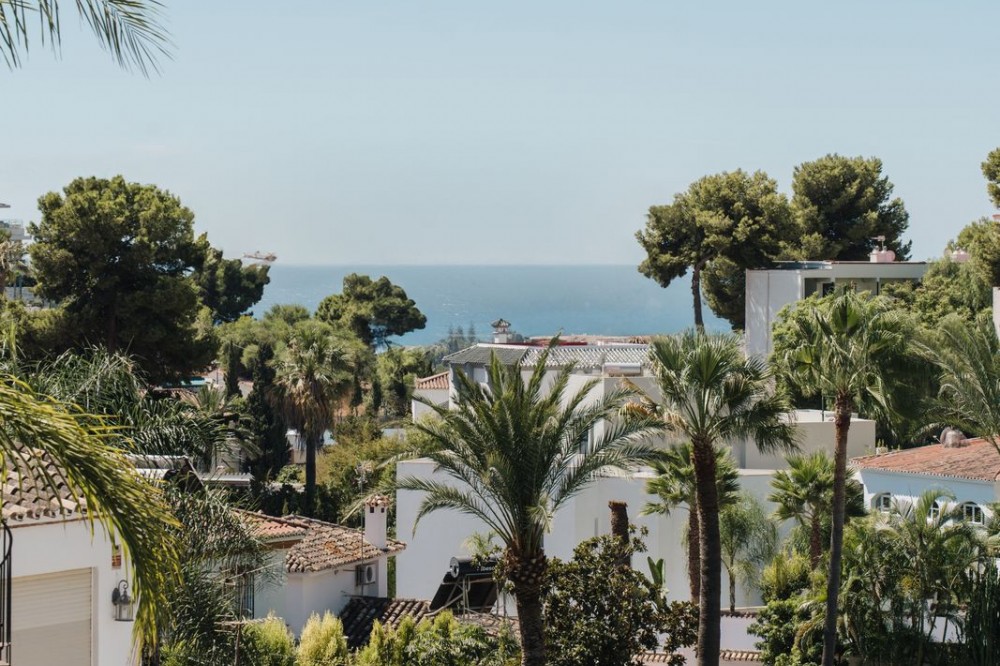 - This beautifully renovated villa offers the perfect blend of modern style, comfort, and an unbeatable location in the heart of Nueva Andalucía. Spanning over two floors, the home features three spacious bedrooms, each with its own en-suite bathroom. Two of the bedrooms enjoy beautiful and partial sea views, while a stylish guest toilet adds extra convenience. With its southwest orientation, the villa is bathed in natural light throughout the day, creating a warm and inviting atmosphere both indoors and out. From the partially elevated position, you can enjoy serene and partial views of the sea while still being just a short stroll from a wide selection of restaurants, cafés, and supermarkets. Set within an exclusive urbanisation of only five villas, the property offers the privacy of a detached home combined with the comfort of a shared swimming pool – perfect for relaxation and enjoying Marbella’s sunny lifestyle. This is a rare opportunity to own a modern turnkey villa in one of the most sought-after areas on the Costa del Sol. I have keys for easy viewings!