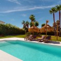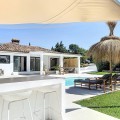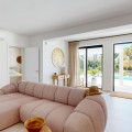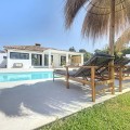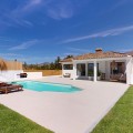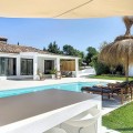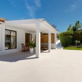 - This magnificent villa represents a unique opportunity to acquire a tastefully renovated residence in one of the most sought-after areas of Estepona. Situated in the spacious and peaceful Don Pedro urbanization, the property is just five minutes from the beach, the marina, and the charming old town. Thanks to its elevated position, the villa enjoys beautiful open views of both the sea and the mountains, while offering total privacy in a serene and residential setting. Fully renovated in 2025, the property stands out for its refined style and meticulous attention to detail. The main house is laid out on a single floor and has been designed to provide comfort, elegance, and functionality. The interior spaces are warm and welcoming, featuring luxurious decoration that blends artisanal touches with modern finishes. The main residence includes a spacious living room with a traditional Andalusian fireplace, a handcrafted open-plan kitchen with solid wood cabinets and brand-new top-quality appliances, two bedrooms with en-suite bathrooms, and a guest toilet. Both the living room and kitchen open onto a large sunny terrace and a fully renovated private pool, surrounded by lush gardens with an automatic irrigation system and new outdoor lighting. An interior corridor connects the main house to an independent apartment, ideal for hosting guests or using as a second residence on the same plot. This apartment features an open-plan living-dining area with kitchen, one bedroom with an en-suite bathroom, and its own private access, ensuring full privacy. Beyond its thoughtful design, the villa also boasts fully upgraded systems installed in 2025, including a new air conditioning system, a modern hot water installation, new automatic garden irrigation, upgraded outdoor lighting, and a direct connection to the public sewage system (no septic tank). The property sits on a generous 1,757 m² plot, which includes an additional buildable plot, offering the possibility to construct a second home—making it a highly attractive option either as a family residence or as an investment with development potential. Outdoors, two electric gates provide access to a spacious parking area with room for more than five vehicles. A large partially covered patio completes this Mediterranean paradise, offering an ideal setting to enjoy the sun, peace, and outdoor living all year round. This villa is a unique property in its category, combining luxury, privacy, and versatility of spaces, ideal as a family residence or as an investment with high potential.