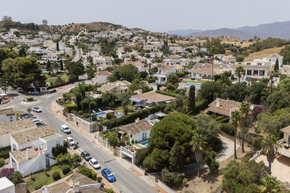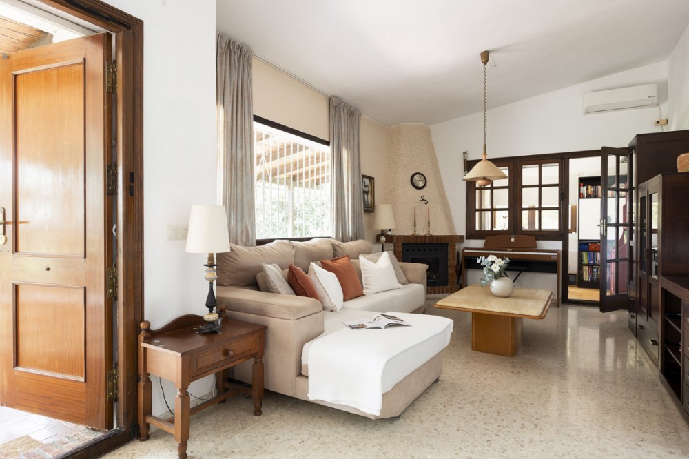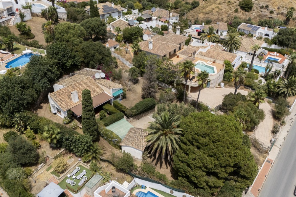 - This delightful one-level villa with 3 bedrooms and 2 bathrooms is ideally located in the popular residential area of Cerros del Aguila, just a short drive from Fuengirola city, beaches, shops, schools, and restaurants. Offering both convenience and tranquility, it’s a perfect choice for families or anyone seeking a relaxed Andalusian lifestyle. Set on a sunny plot, the property boasts a large private garden — ideal for outdoor living, entertaining, or even creating your own fruit and vegetable garden. The spacious kitchen connects to a bright dining room, while the cozy living room features a log fireplace for cooler winter evenings. The master bedroom includes an en-suite shower room, complemented by a second bathroom for guests. Additional features include a separate garage with storage space plus a carport for a second car or visitors. Within the community, residents enjoy access to lush communal gardens, a swimming pool, a restaurant, and a tennis court. The villa is charming and move-in ready in its current traditional Andalusian style, but it also offers excellent potential as a renovation project — perfect if you dream of expanding into a larger home with your own private pool. Whether you’re looking for a peaceful retreat, a family home, or an investment opportunity, this villa ticks all the boxes.