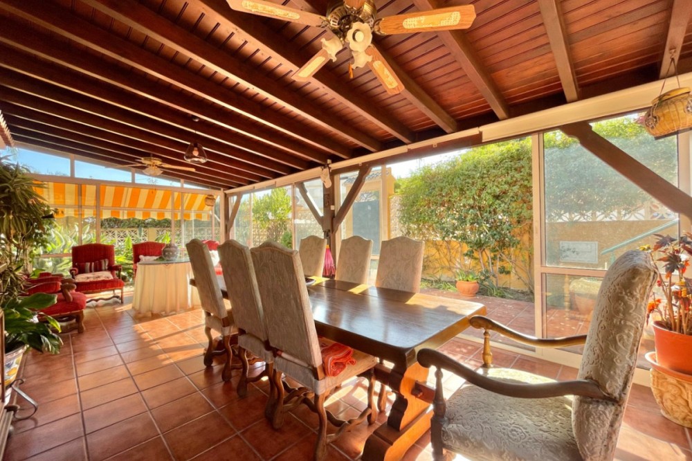- Detached chalet 500 m from the sea in La Cala del Moral In a quiet residential area and just a few minutes' walk from the beach, this charming one-story chalet is situated on a 660 m² plot. The property offers 115 m² distributed over three spacious bedrooms with fitted wardrobes, three full bathrooms (one external, next to the pool), a bright living room with a fireplace and access to the garden, and a separate kitchen with access to a private patio. Outside, you will enjoy a private pool surrounded by landscaped areas, a garage with space for several vehicles, a storage room, and a southwest orientation that ensures sunlight all day long. It features marble floors, aluminum windows, solid wood doors, and a solar panel system. Additionally, there is the possibility to build a second floor. A comfortable home, well located, and with everything necessary for living or enjoying as a vacation residence. If you are interested, please do not hesitate to contact us for more information. We are available for online visits and via WhatsApp. We speak Spanish, English, Swedish, Dutch, French, German, and Italian.