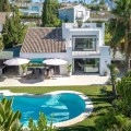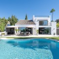 - Stylish Scandinavian Villa in Nueva Andalucía Discover, a beautifully renovated Scandinavian-style villa just 300 meters from Los Naranjos Golf Club. Facing southwest, this elegant 4-bedroom, 4-bathroom home offers sun all day, golf valley views, and total privacy in a mature, low-maintenance garden. Inside, enjoy a bright open-plan layout with high ceilings, floor-to-ceiling windows, a cozy fireplace, and luxurious wood floors. The sleek nogal kitchen features Miele appliances and marble countertops—perfect for the modern chef. The master suite upstairs includes a walk-in wardrobe, private terrace, and a spacious ensuite with bath and shower. The rooftop terrace offers panoramic views and sea glimpses. Additional features include: Covered outdoor kitchen & dining Desalination system Pool (chlorine or saltwater-ready) Carport for 3–4 cars Ideal as a family home or holiday retreat in the heart of Marbella’s Golf Valley.
