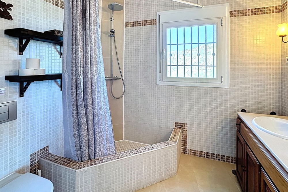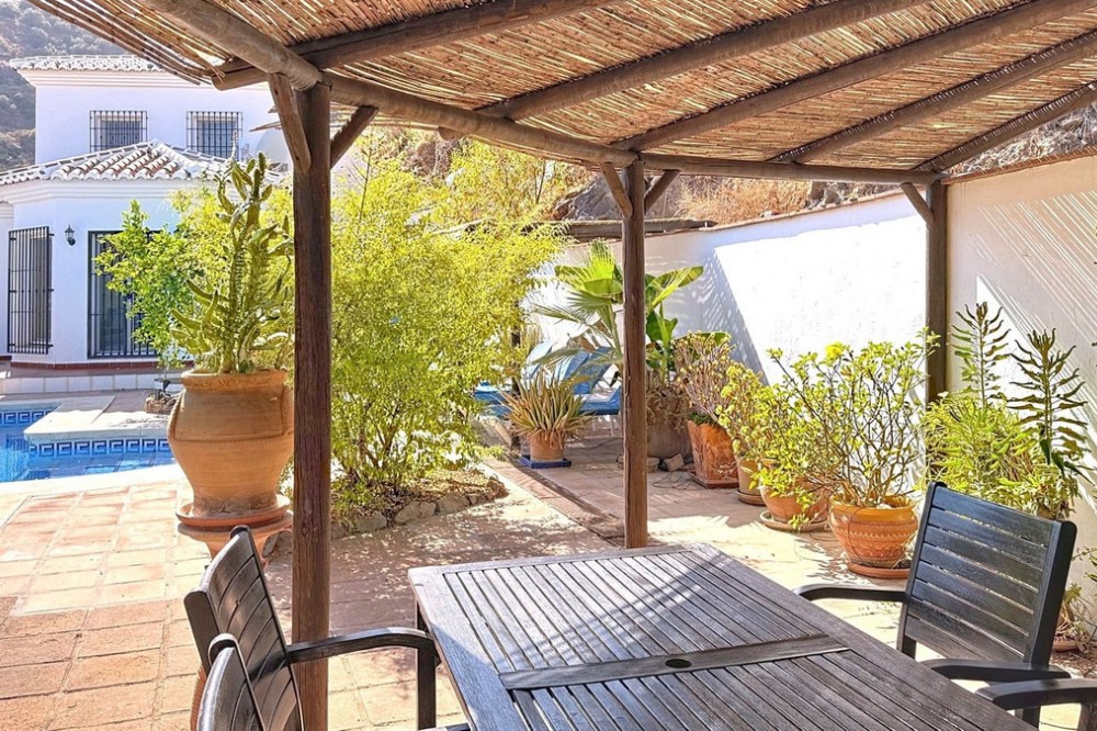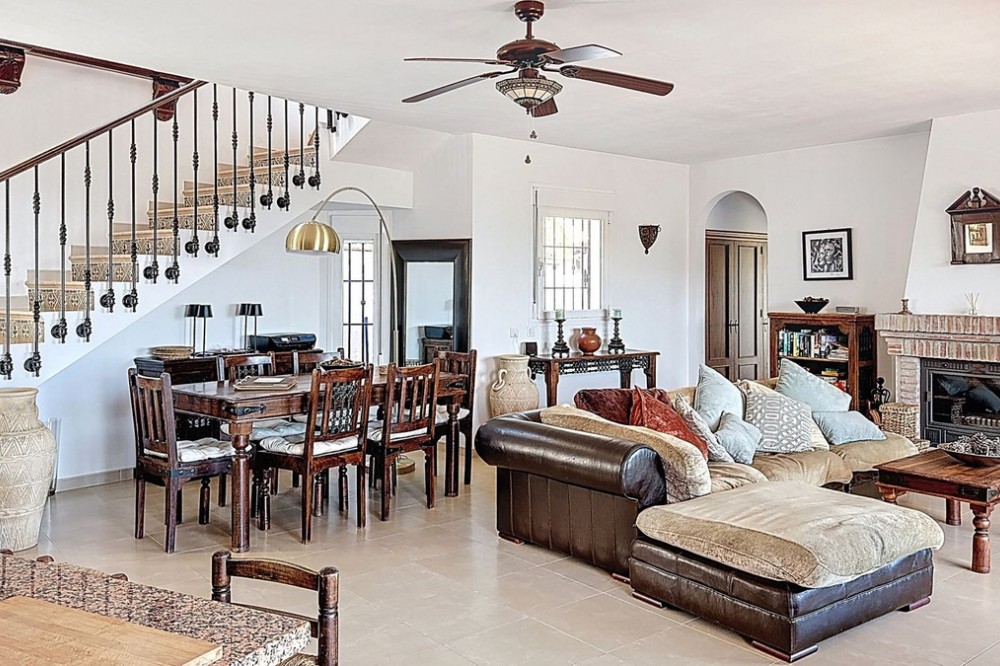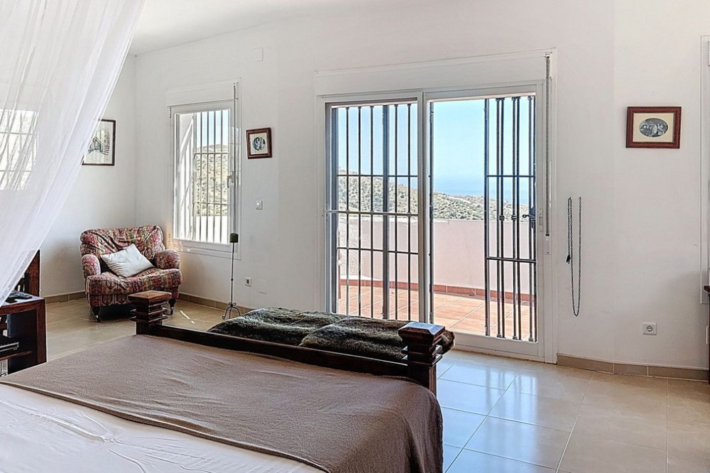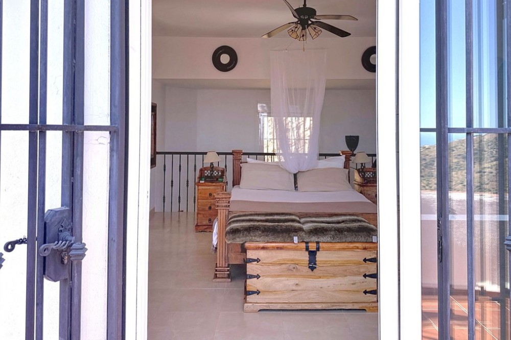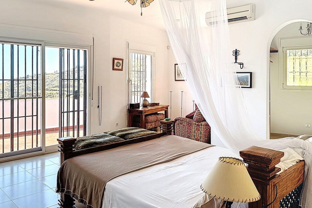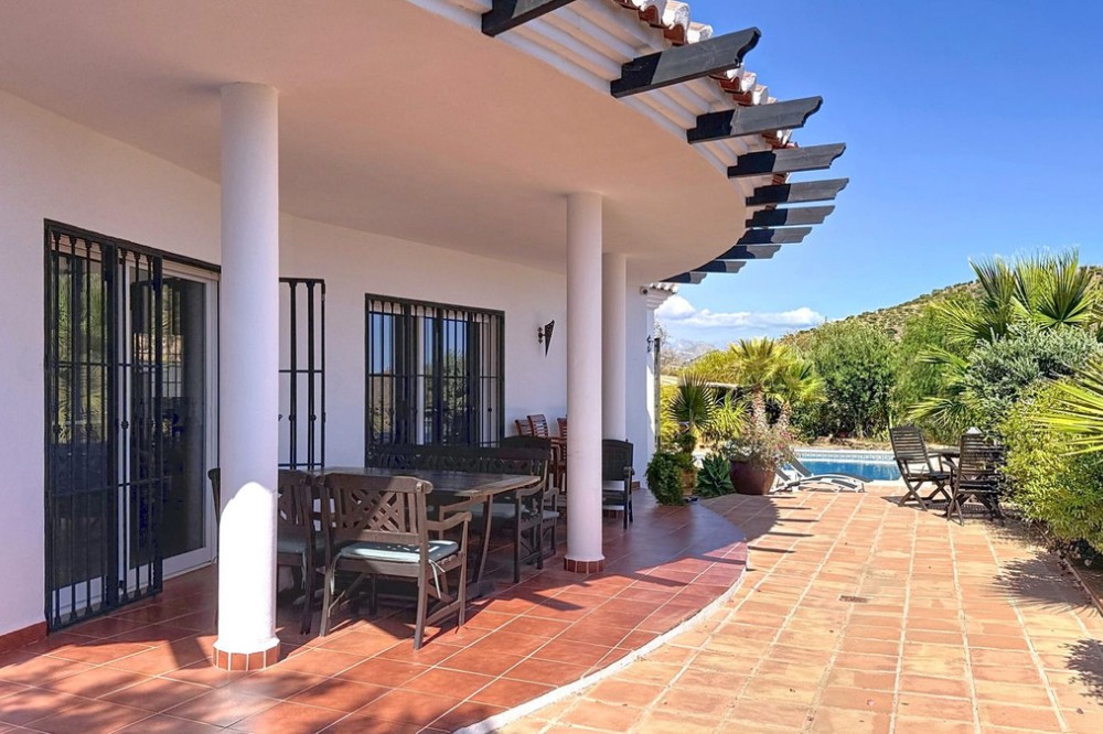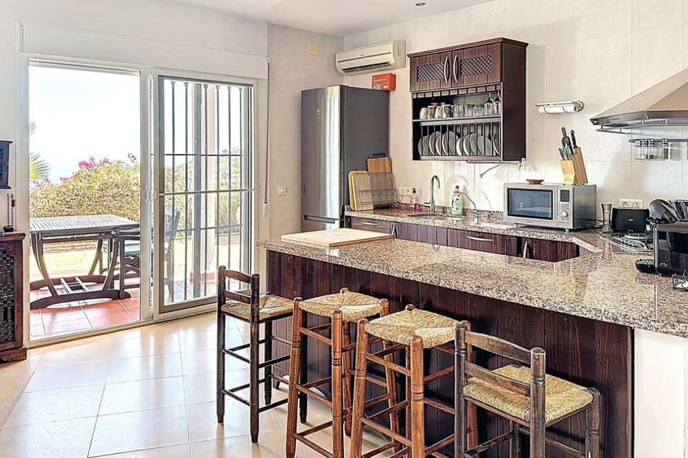 - Are you dreaming of a life under the Spanish sun, surrounded by peace, space and ultimate comfort? This bright and elegant villa, located between Vélez-Málaga and the charming village of Arenas, offers exactly that. With panoramic views over the lush valley and the shimmering Mediterranean Sea, you can enjoy the very best of Andalusia every single day. Large sliding doors in the living room, dining room and modern open-plan kitchen flood the interior with natural light and open directly onto the covered terrace, where outdoor living blends seamlessly with indoor comfort. The inviting living room with its fireplace creates a cosy atmosphere on cooler evenings, while air conditioning ensures a pleasant climate throughout the year. The villa features three spacious bedrooms and three stylish bathrooms, two of which are en suite. The master bedroom is a true highlight, boasting a generous walk-in closet and a private balcony where you can peacefully take in the sea views. Outside, the enjoyment continues effortlessly. The large private swimming pool measuring 10x5 metres provides refreshment and relaxation with unobstructed sea views. The covered terrace is perfect for long summer days and atmospheric evenings, while the private sauna adds a touch of luxury to your daily life. Additional amenities such as a storage room, solar panels, an electric gate and a security system make this property both safe and sustainable. The location is ideal: the beaches of Torre del Mar, the shops of Vélez-Málaga and various facilities are just a short drive away. Málaga airport and popular destinations such as Nerja can be reached in under an hour. Whether you are dreaming of a second home, considering a permanent move, or looking for a valuable investment, this villa combines luxury, comfort and an exceptional location. Easily accessible via a paved road. There is a rental license in place with a strong rental history. A unique opportunity to secure your place under the Spanish sun.